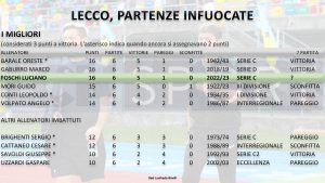 Per quanto riguarda i bei numeri non è finita qui: sempre considerata la sola era Foschi, i 16 punti conquistati dal Lecco hanno pochi equali in Serie C. Pochissimi, anzi, solo l’inafferrabile Catanzaro del difensore liernese Riccardo Gatti allenato da mister Vivarini: 18 punti su 18 messi in tasca e, ovviamente, il primo posto in classifica come conseguenza quasi inevitabile per una squadra che ha numeri al top per quanto riguarda tutti i campionati professionistici italiani. Lecco-Trento, insomma, è gara da vincere anche per mettere via qualche obiettivo secondario che non fa mai male.