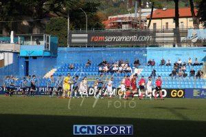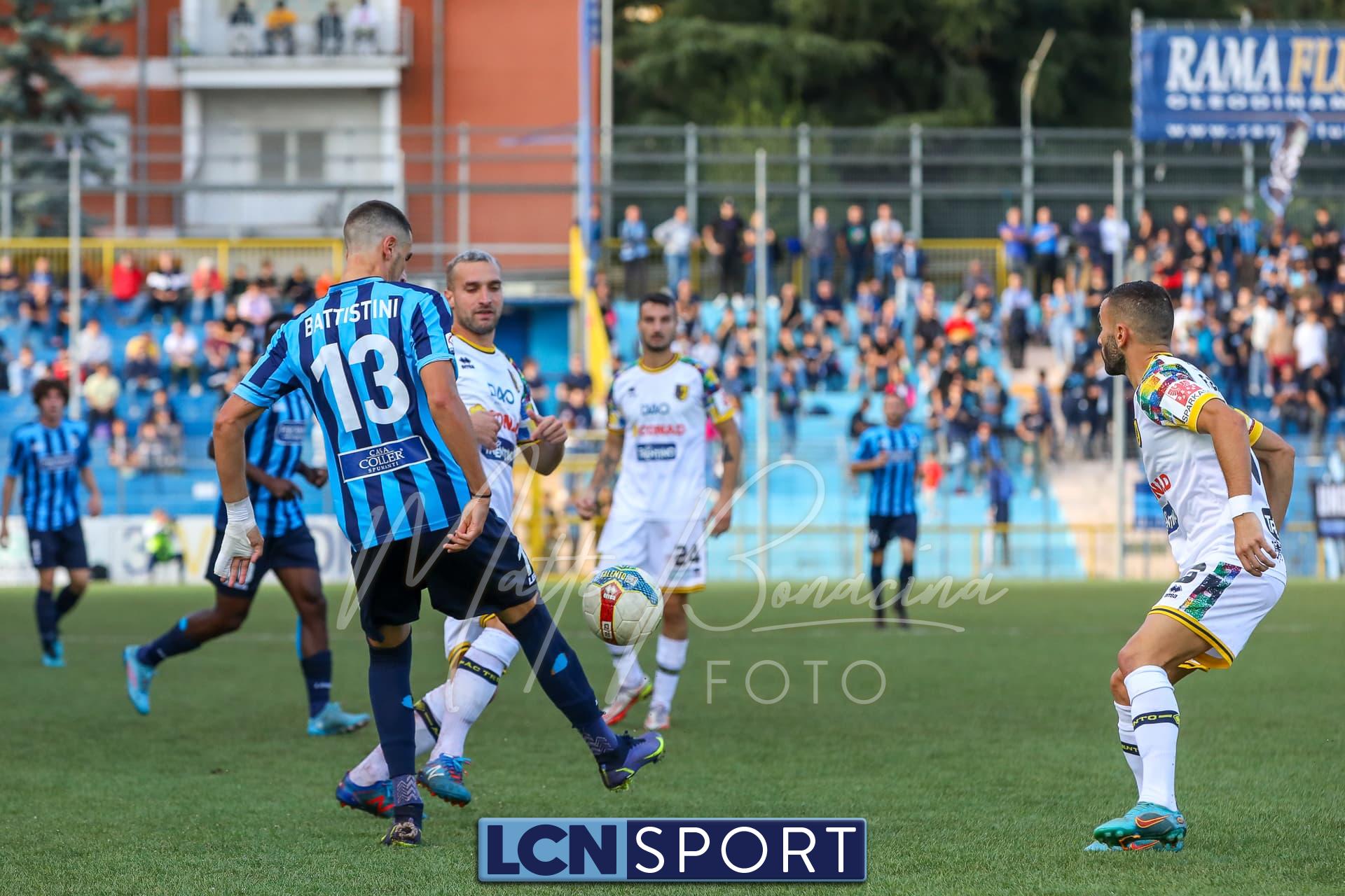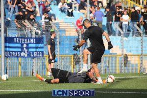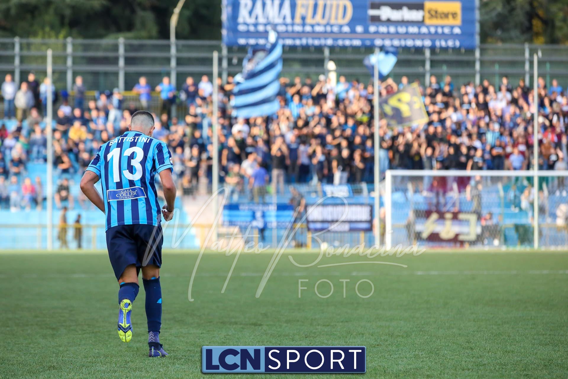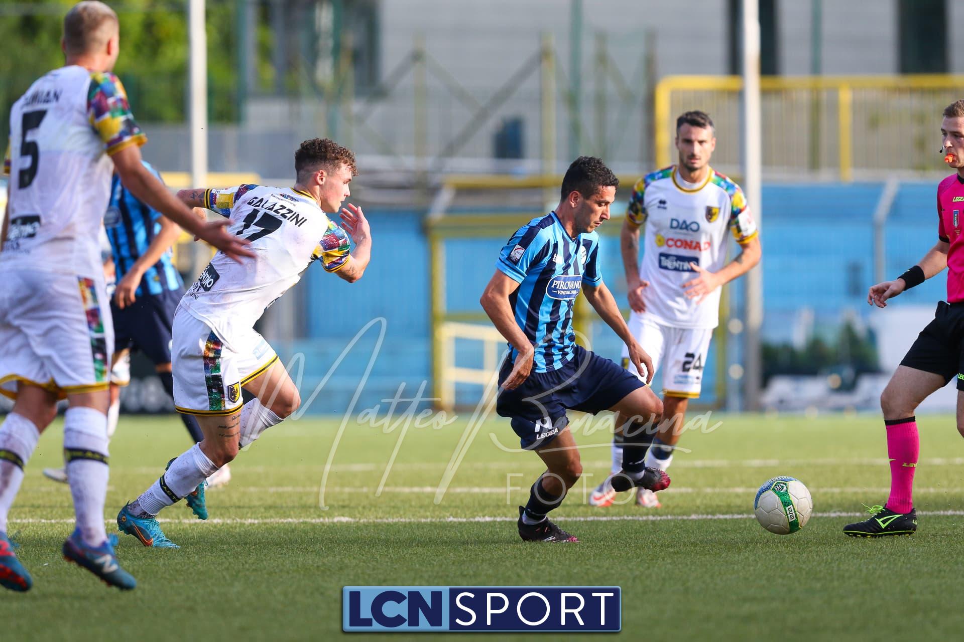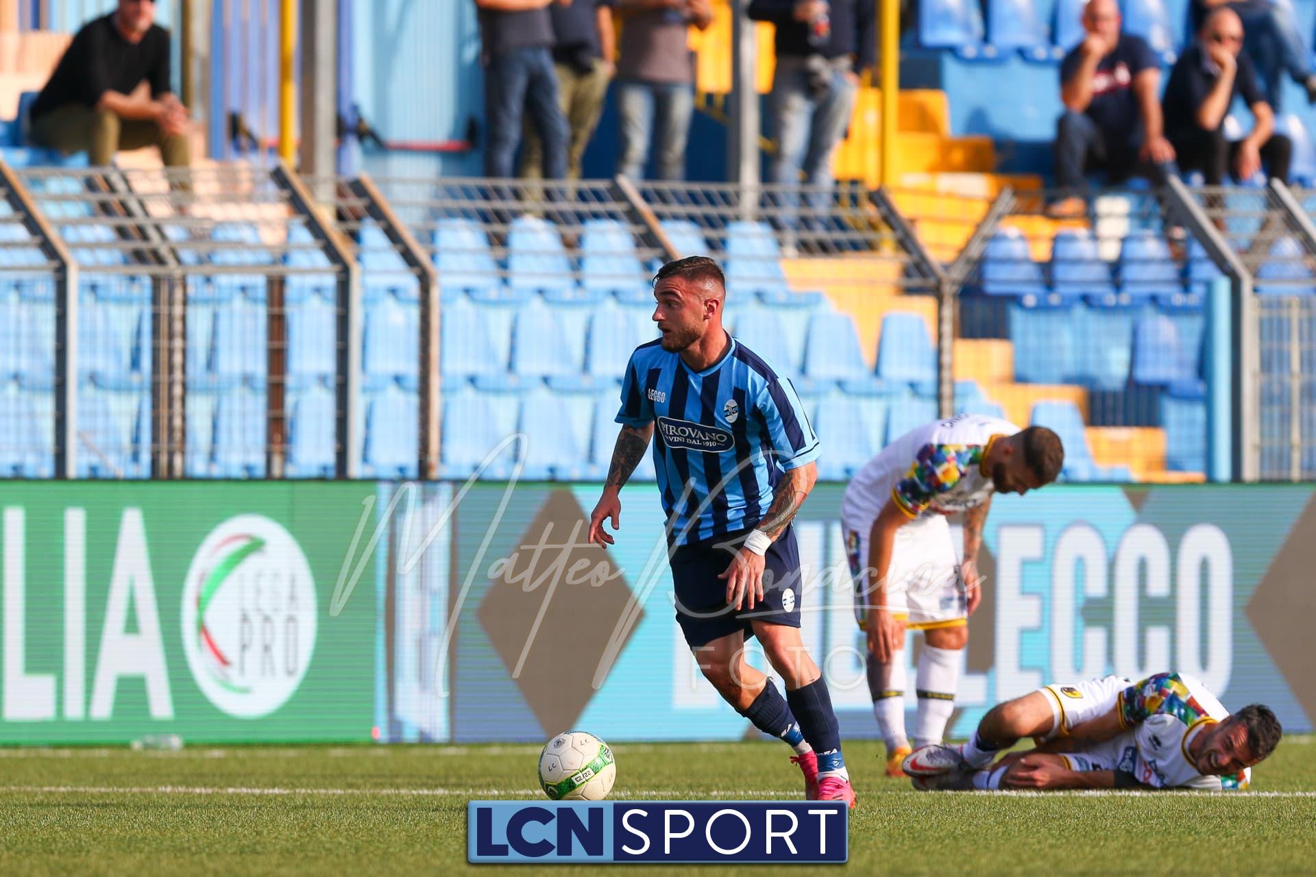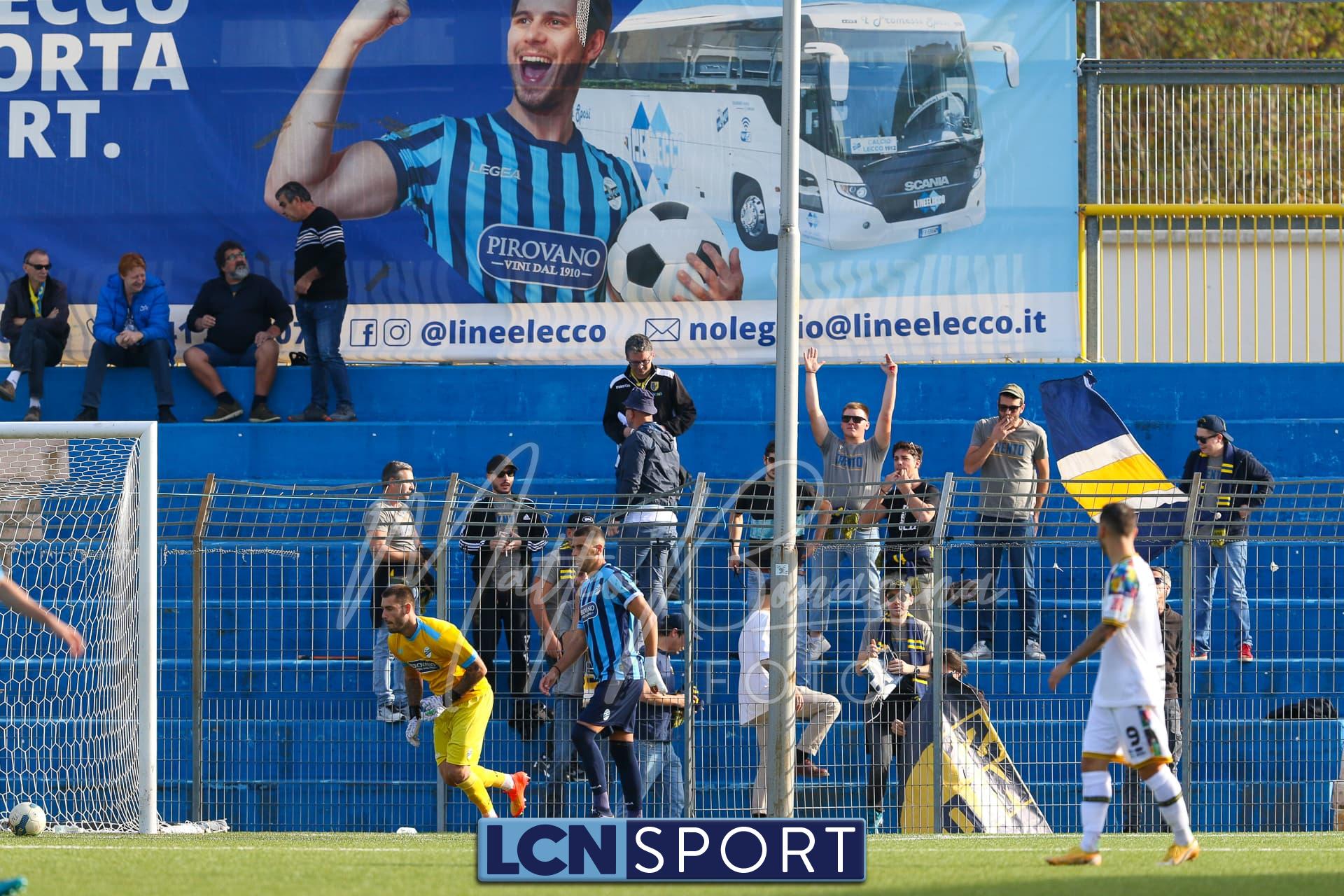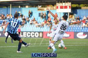 ll Lecco si mangia subito il pareggio: Buso entra da sinistra e chiude troppo col mancino in diagonale, fuori di un nulla. Alla mezz’ora cross di Zambataro da destra, Pinzauti prova la spizzata ma non riesce a dare angolo. Al 43′, dal nulla, a ritmi bassissimi, arriva il raddoppio ospite: palla a destra e Saporetti, da solo, si invola per poi accentrarsi e calciare con il sinistro sul palo lungo superando Melgrati. Sul finire di tempo Giudici dai 35 metri, su punizione, va direttamente in porta ma Marchegiani è attento.
