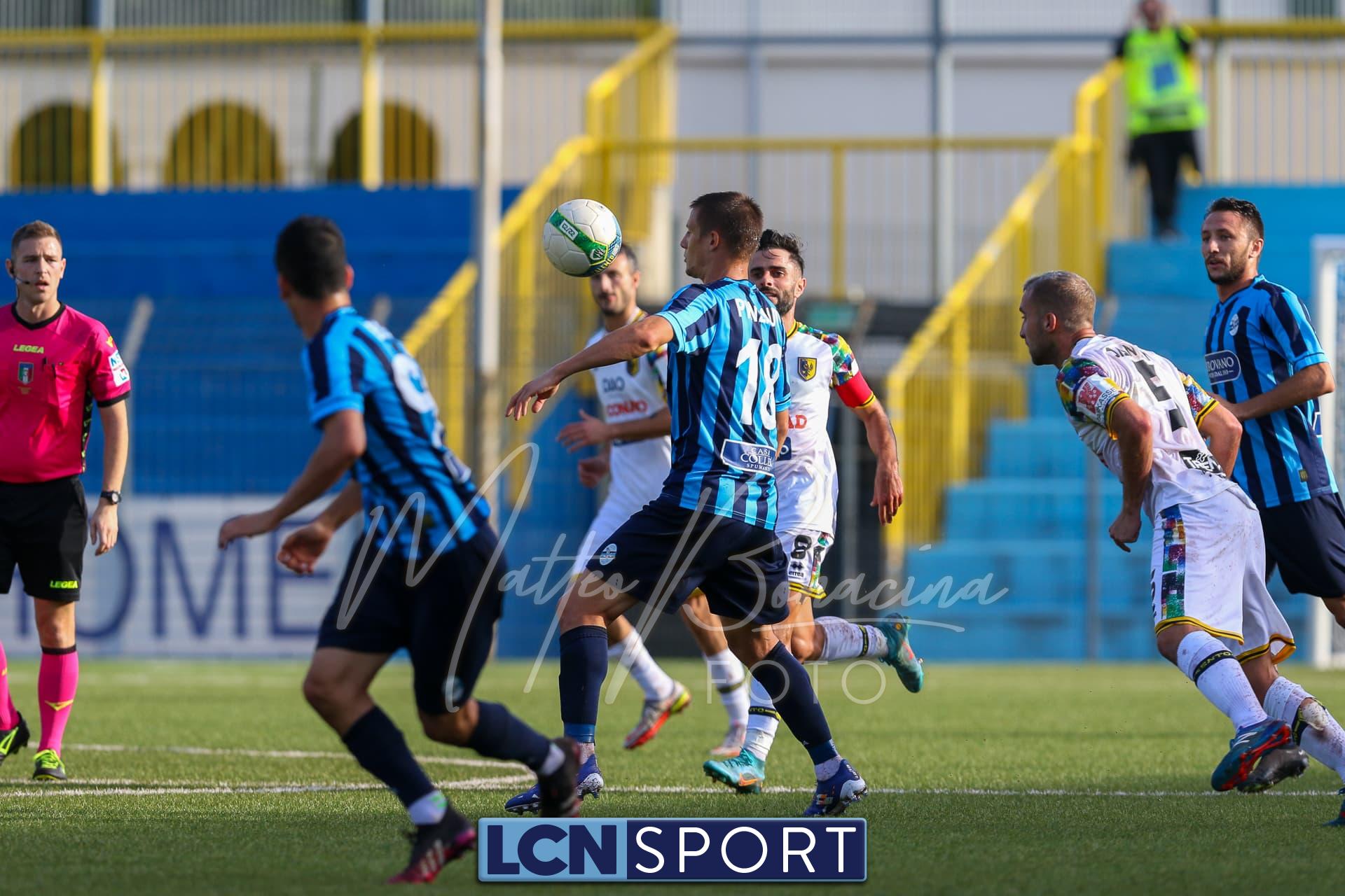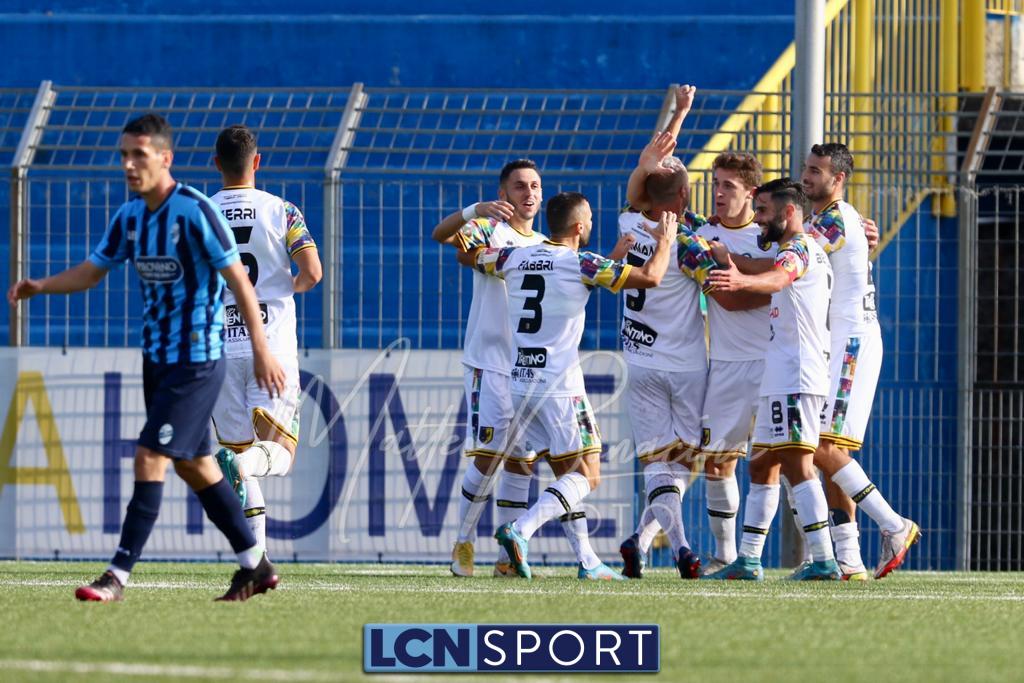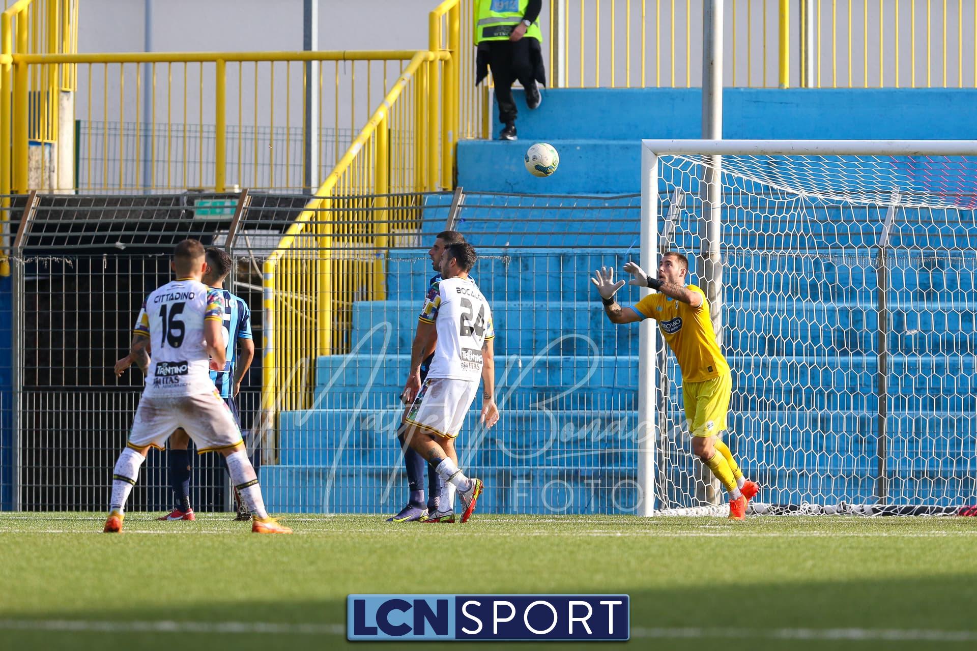 Il vantaggio è nell’aria: al 7′ palla lunga su Saporetti che si gira e mette in mezzo, Celjak ha una deviazione sfortunata, Ballarini arriva da dietro e quasi di punta calcia in porta battendo Melgrati.