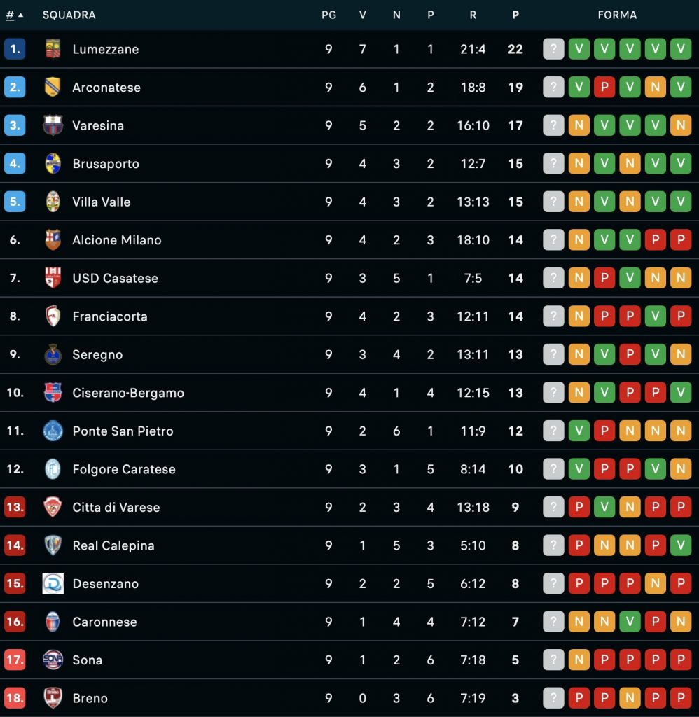 Buon punto esterno per la Casatese di mister Joey Commisso. La compagine biancorossa ha strappato un positivo pareggio dal campo dell’Alcione di Milano nel corso della nona giornata di campionato, confermando la propria posizione nella zona medio alta della classifica. 1-1 il risultato finale, maturato grazie alla reti di Bagatti nel corso del primo tempo – incornata su azione da calcio d’angolo -, con risposta firmata da bomber Mattia Isella a pochi minuti dalla fine della gara: bravo, l’attaccante brianzolo, a trasformare glacialmente il calcio di rigore concesso per un atterramento commesso ai suoi danni in piena area. Risultato giusto, quello uscito dal match milanese, che ha visto le due compagini equivalersi come ribadito anche dalla classifica del girone B di Serie D. Domenica 6 la Casatese ospiterà la Virtus Ciserano-Bergamo, reduce dai quattro punti conquistati nel corso delle ultime due gare.
