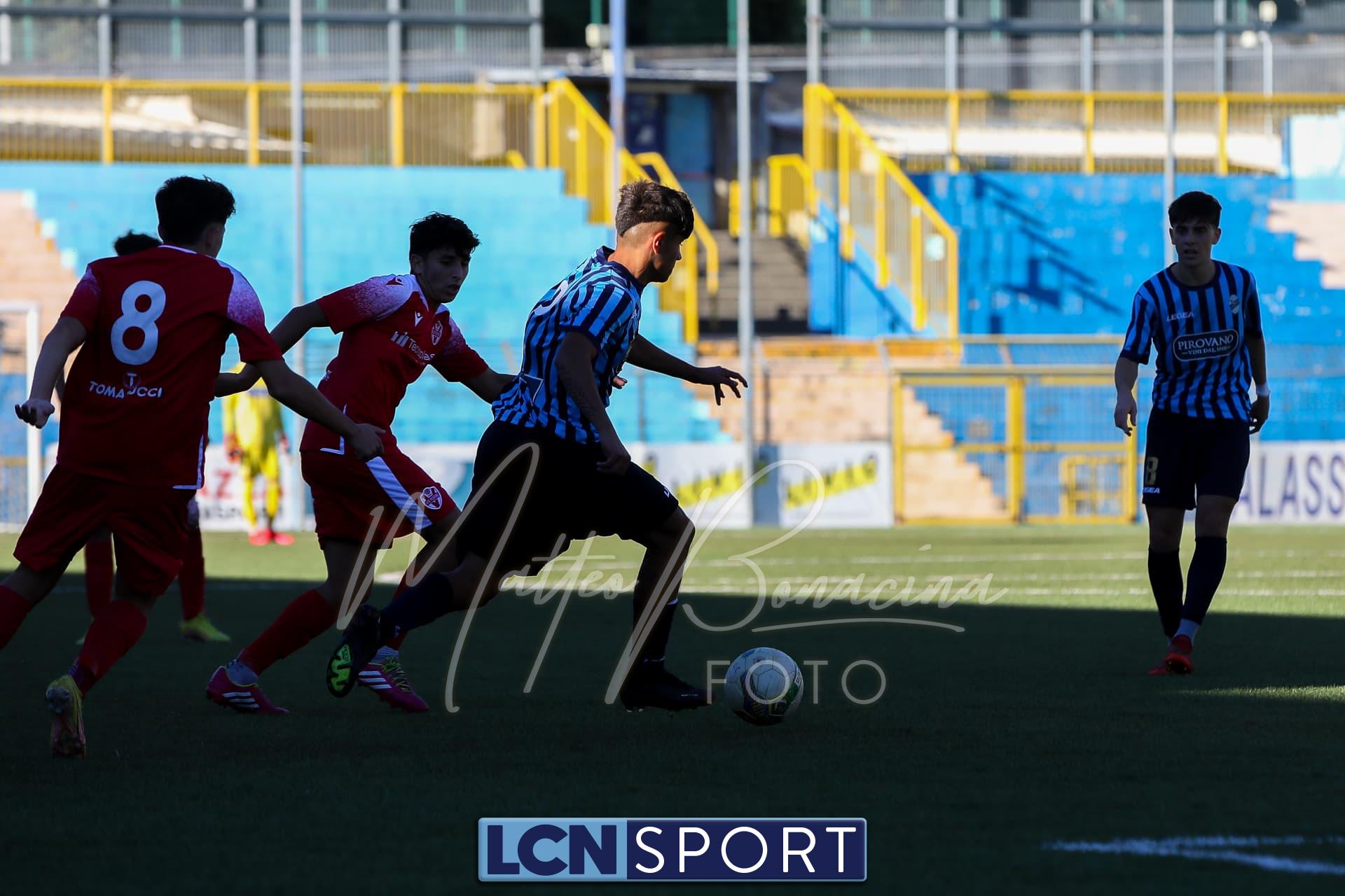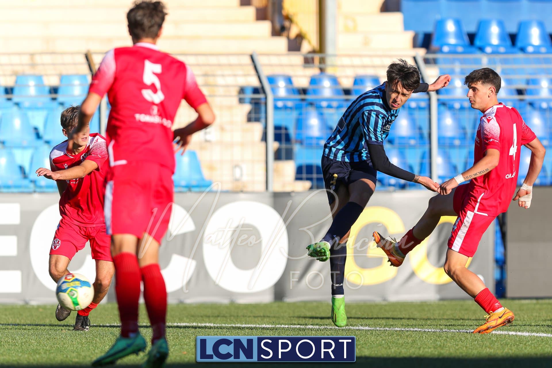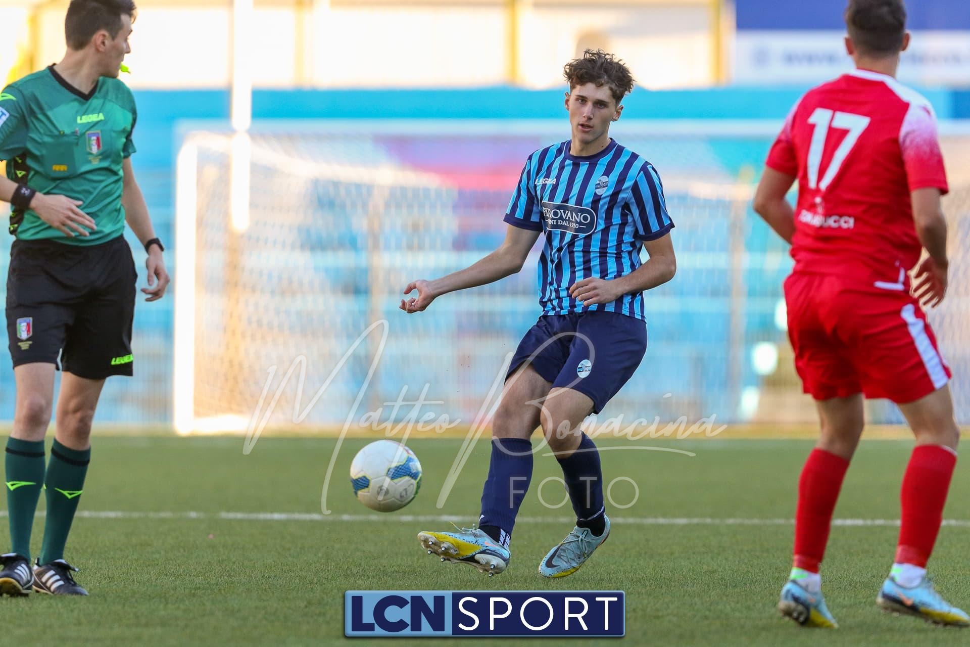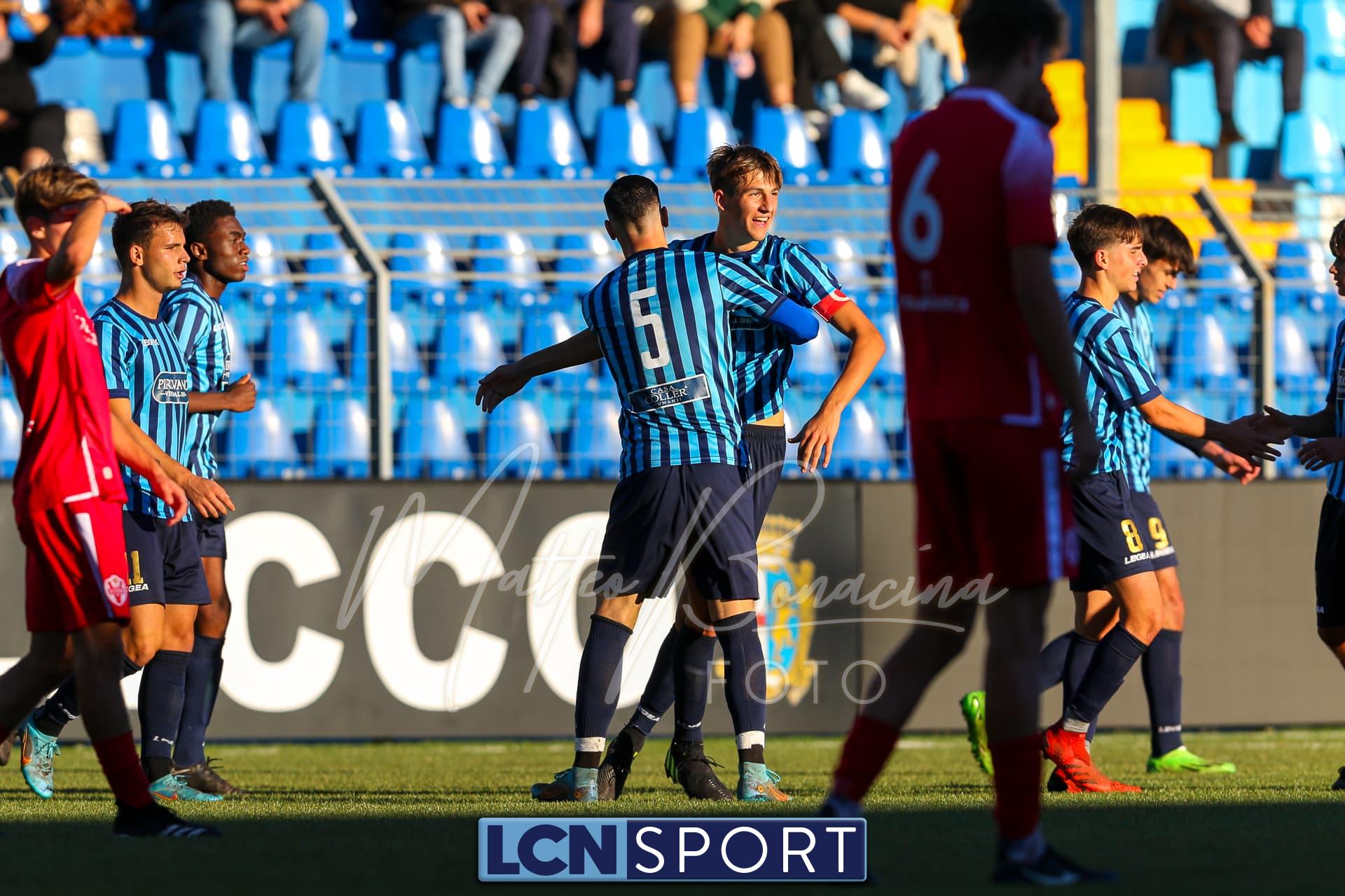 Sorpasso servito dalla Primavera 3 della Calcio Lecco 1912. I blucelesti allenati da mister Roberto Mastrolonardo tengono fede alla miglior classifica, battono la Vis Pesaro e si mettono davanti al Modena, battuto (2-0) a Vercelli. Ora l’attesa è tutta per domenica, quando Carrarese e Renate si sfideranno in Toscana: i brianzoli possono mettersi alla pari delle Aquile conquistando i tre punti. Nel frattempo sarà una notte speciale per i ragazzi vestiti con i colori del lago e del cielo, bravi a vincere la resistenza dei marchigiani, che si sono fatti valere e hanno dimostrato anche assaporato l’opportunità di strappare un punto. Dopo un primo tempo avaro di occasioni, è stato Camillo Ranfi, fosforo del centrocampo di casa, a sbloccare la gara a inizio ripresa: stop al limite, esterno perfetto che batte Fratti per il vantaggio. Gli ospiti non hanno mollato l’osso e poco dopo (9′) hanno creato una clamorosa occasione con Fiorani, bravo nel servire Bastianelli dalla linea di fondo, ma il compagno di squadra non ha raccolto l’invito, spedendo alle stelle tutto solo davanti a Malvindi. Scossa che arriva al Lecco: al 16′ capitan Lorenzo Bosia svetta sopra il parigrado pesarese e batte nuovamente Fratti con una bella inzuccata. A questo punto le Aquile abbassano il baricentro e gestiscono senza particolari patemi, con Malvindi che deve sbrogliare solamente una palla insidiosa piovuta nello specchio direttamente da calcio d’angolo sul finale di gara, spinta verso la porta anche dal vento che ha spirato incessantemente per tutto il match.