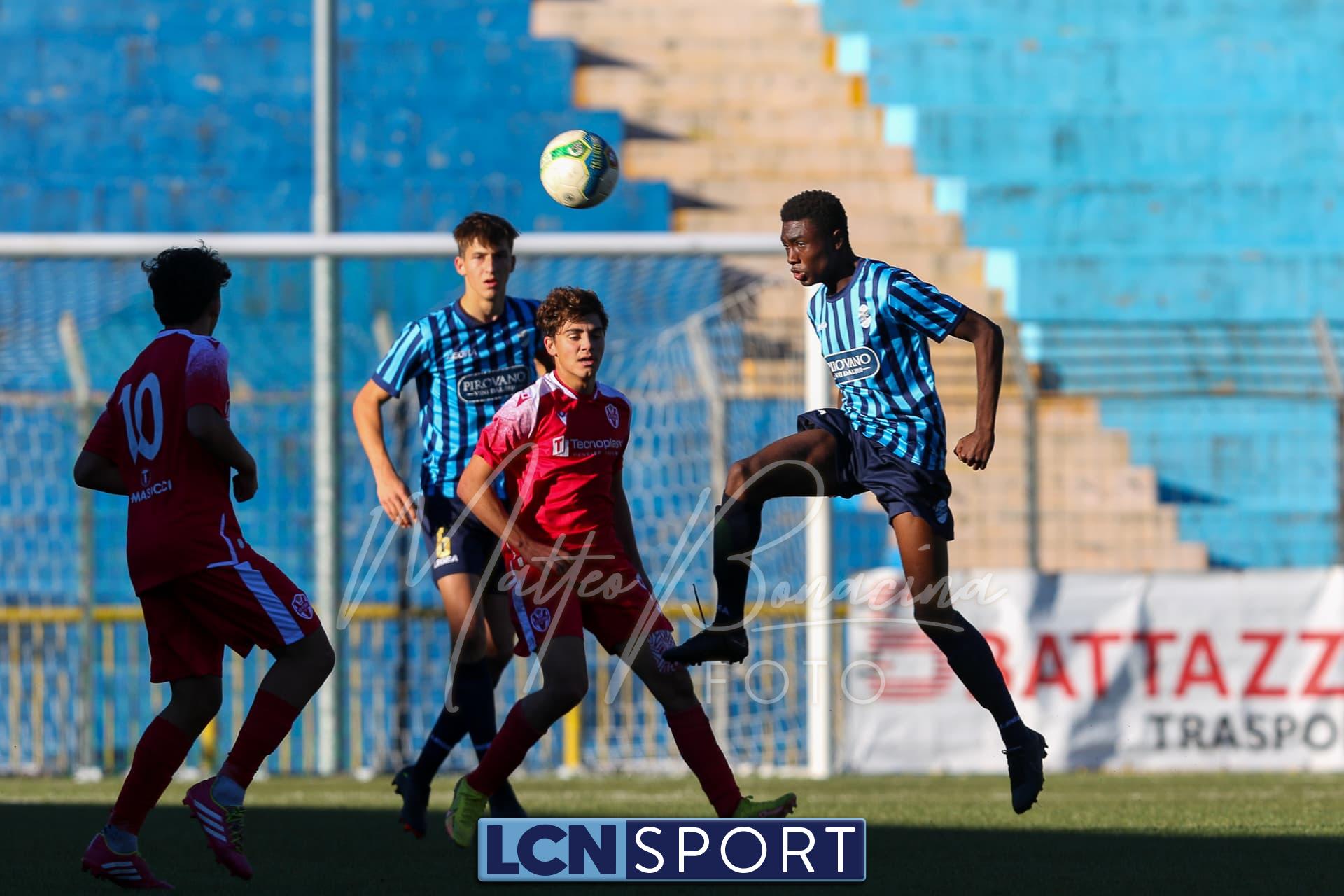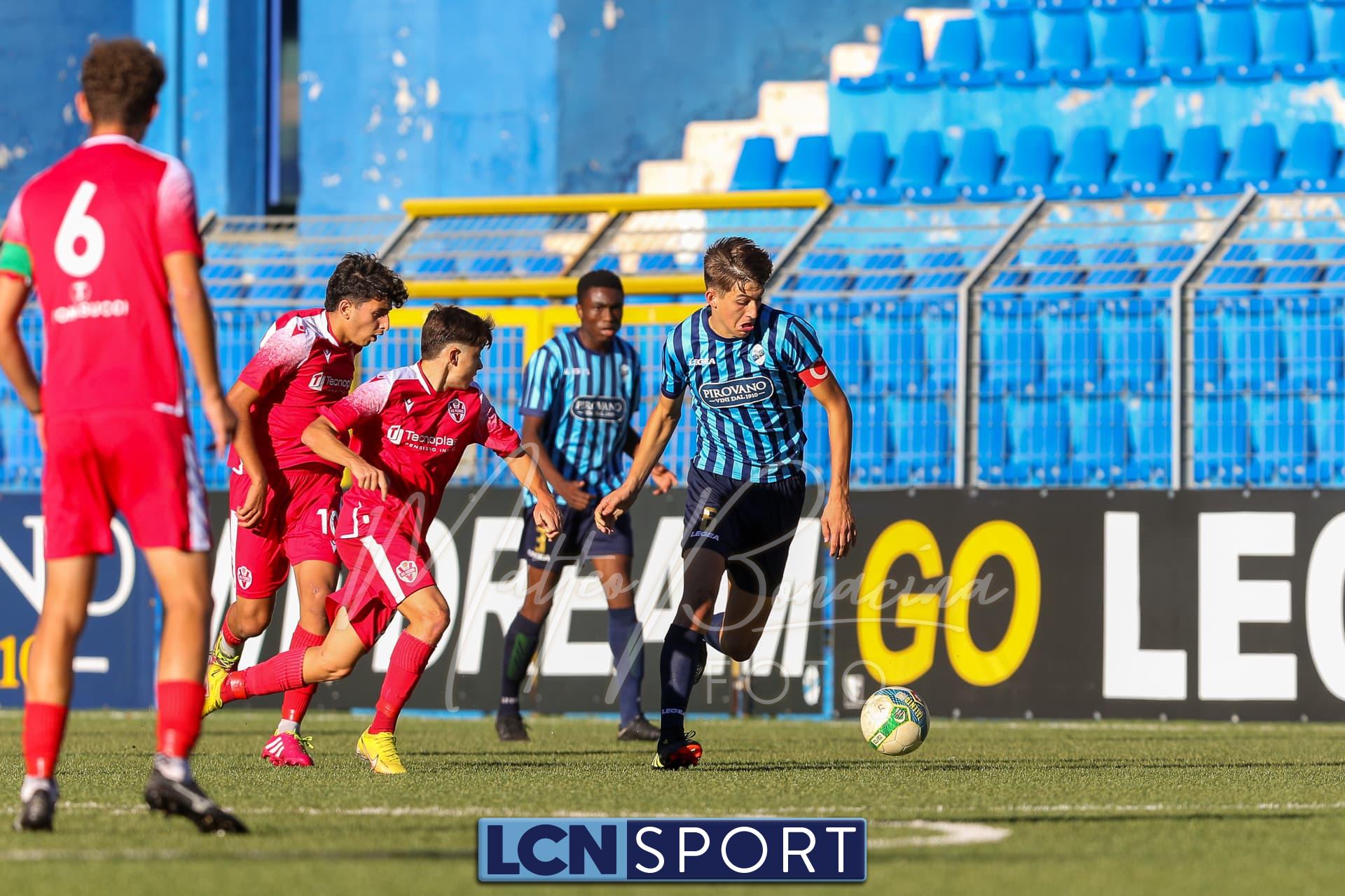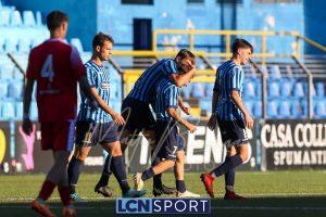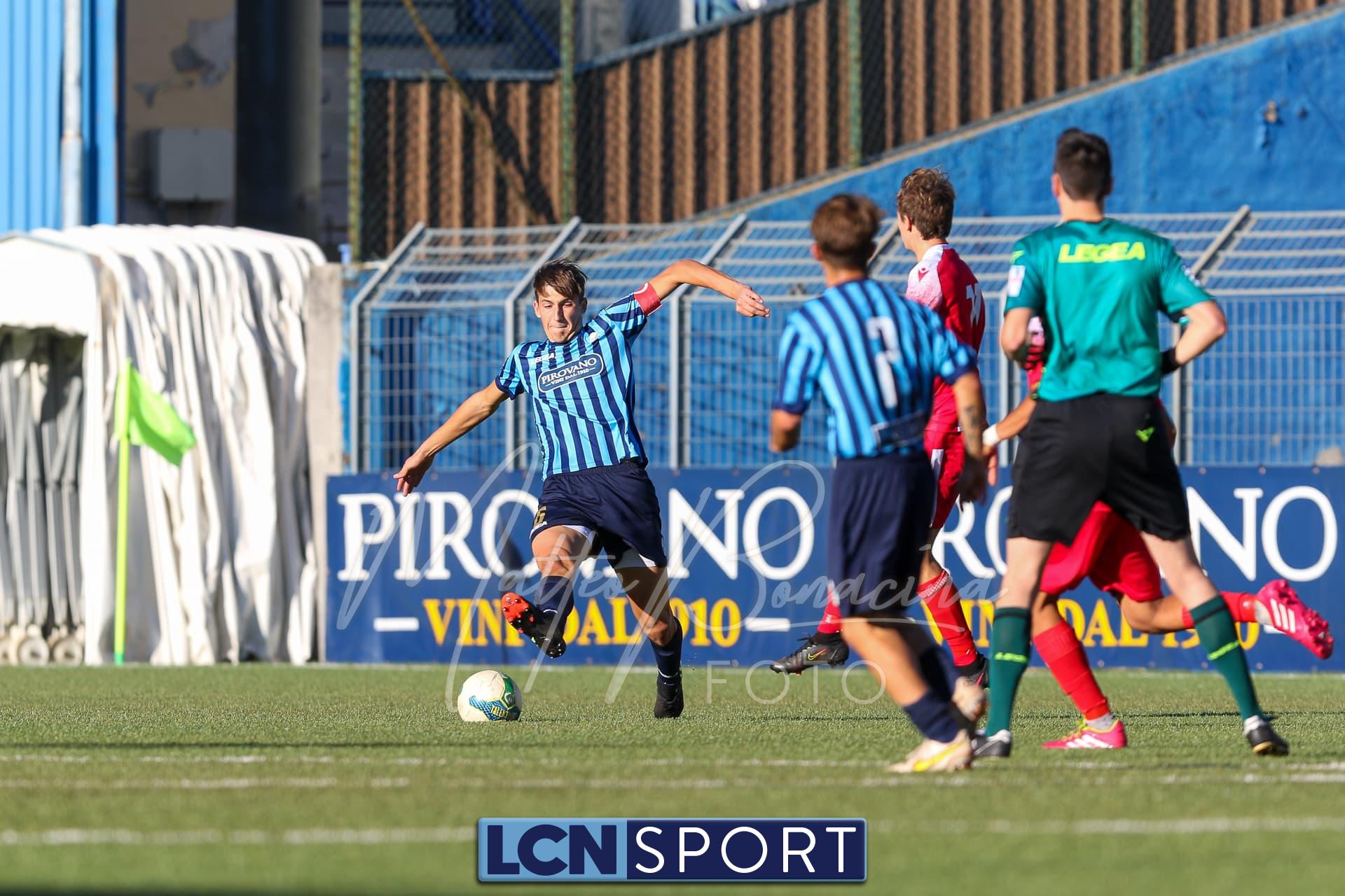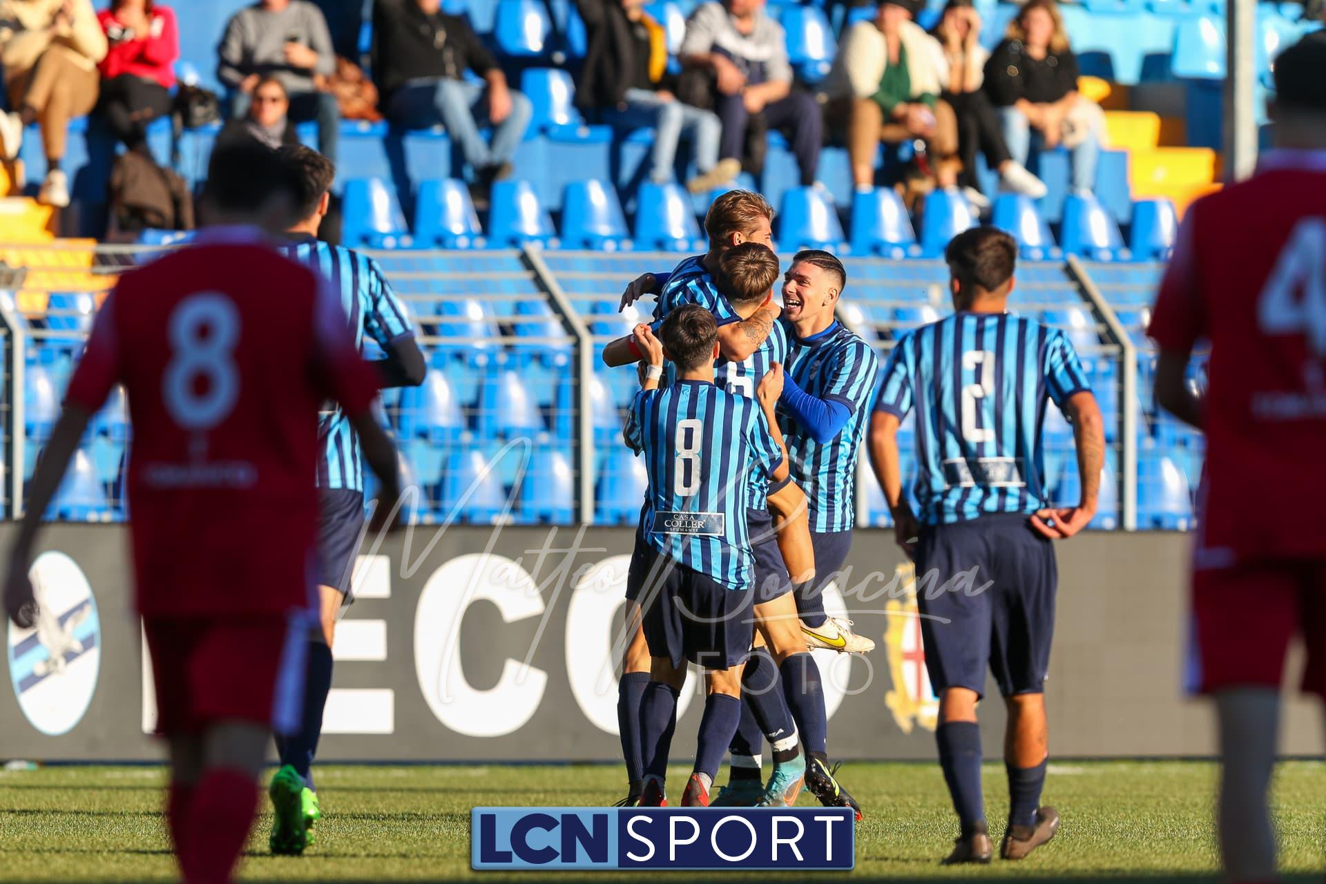 Sorpasso servito dalla Primavera 3 della Calcio Lecco 1912. I blucelesti allenati da mister Roberto Mastrolonardo tengono fede alla miglior classifica, battono la Vis Pesaro e si mettono davanti al Modena, battuto (2-0) a Vercelli. Ora l’attesa è tutta per domenica, quando Carrarese e Renate si sfideranno in Toscana: i brianzoli possono mettersi alla pari delle Aquile conquistando i tre punti. Nel frattempo sarà una notte speciale per i ragazzi vestiti con i colori del lago e del cielo, bravi a vincere la resistenza dei marchigiani, che si sono fatti valere e hanno dimostrato anche assaporato l’opportunità di strappare un punto. Dopo un primo tempo avaro di occasioni, è stato Camillo Ranfi, fosforo del centrocampo di casa, a sbloccare la gara a inizio ripresa: stop al limite, esterno perfetto che batte Fratti per il vantaggio. Gli ospiti non hanno mollato l’osso e poco dopo (9′) hanno creato una clamorosa occasione con Fiorani, bravo nel servire Bastianelli dalla linea di fondo, ma il compagno di squadra non ha raccolto l’invito, spedendo alle stelle tutto solo davanti a Malvindi. Scossa che arriva al Lecco: al 16′ capitan Lorenzo Bosia svetta sopra il parigrado pesarese e batte nuovamente Fratti con una bella inzuccata. A questo punto le Aquile abbassano il baricentro e gestiscono senza particolari patemi, con Malvindi che deve sbrogliare solamente una palla insidiosa piovuta nello specchio direttamente da calcio d’angolo sul finale di gara, spinta verso la porta anche dal vento che ha spirato incessantemente per tutto il match.