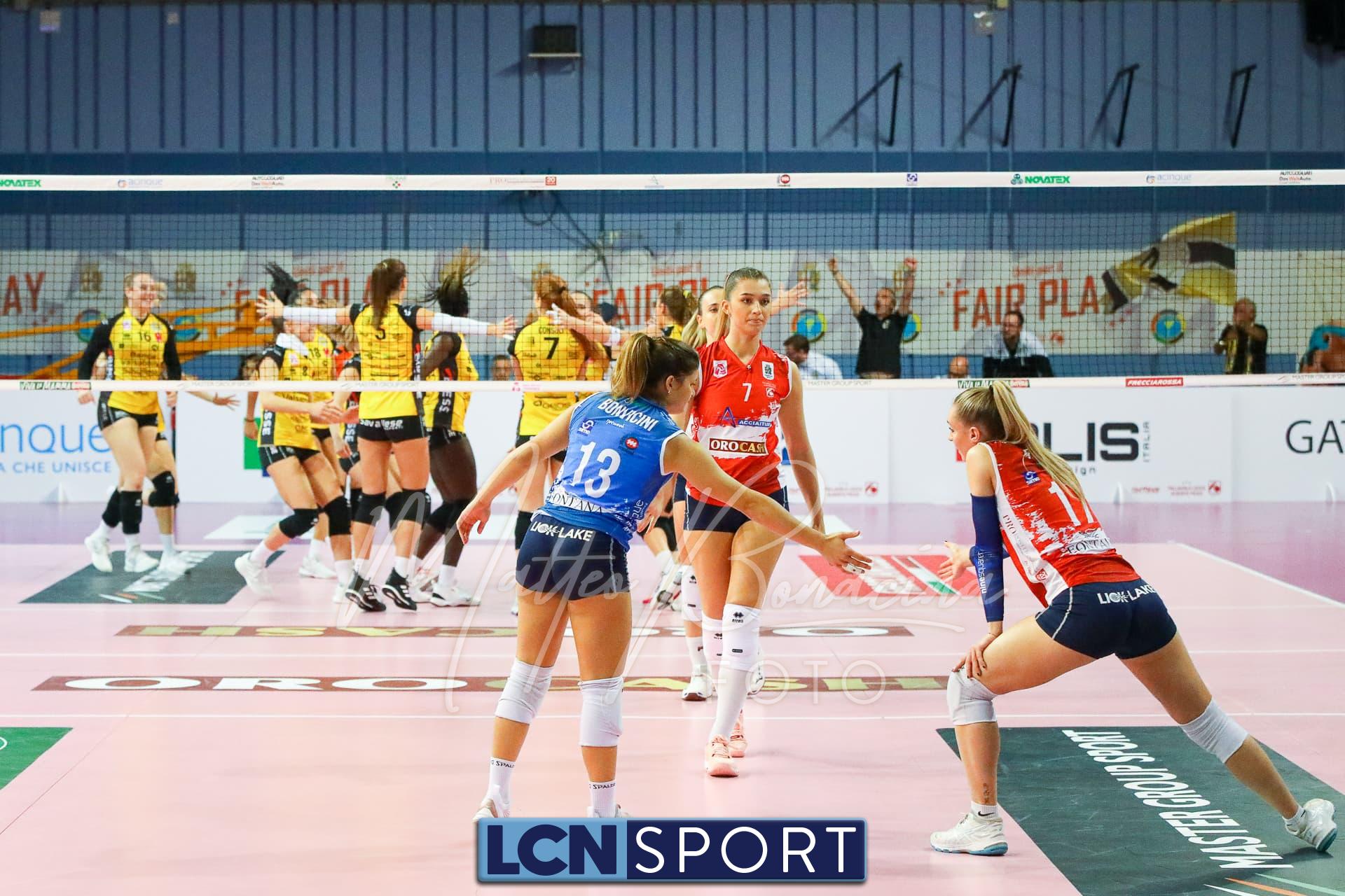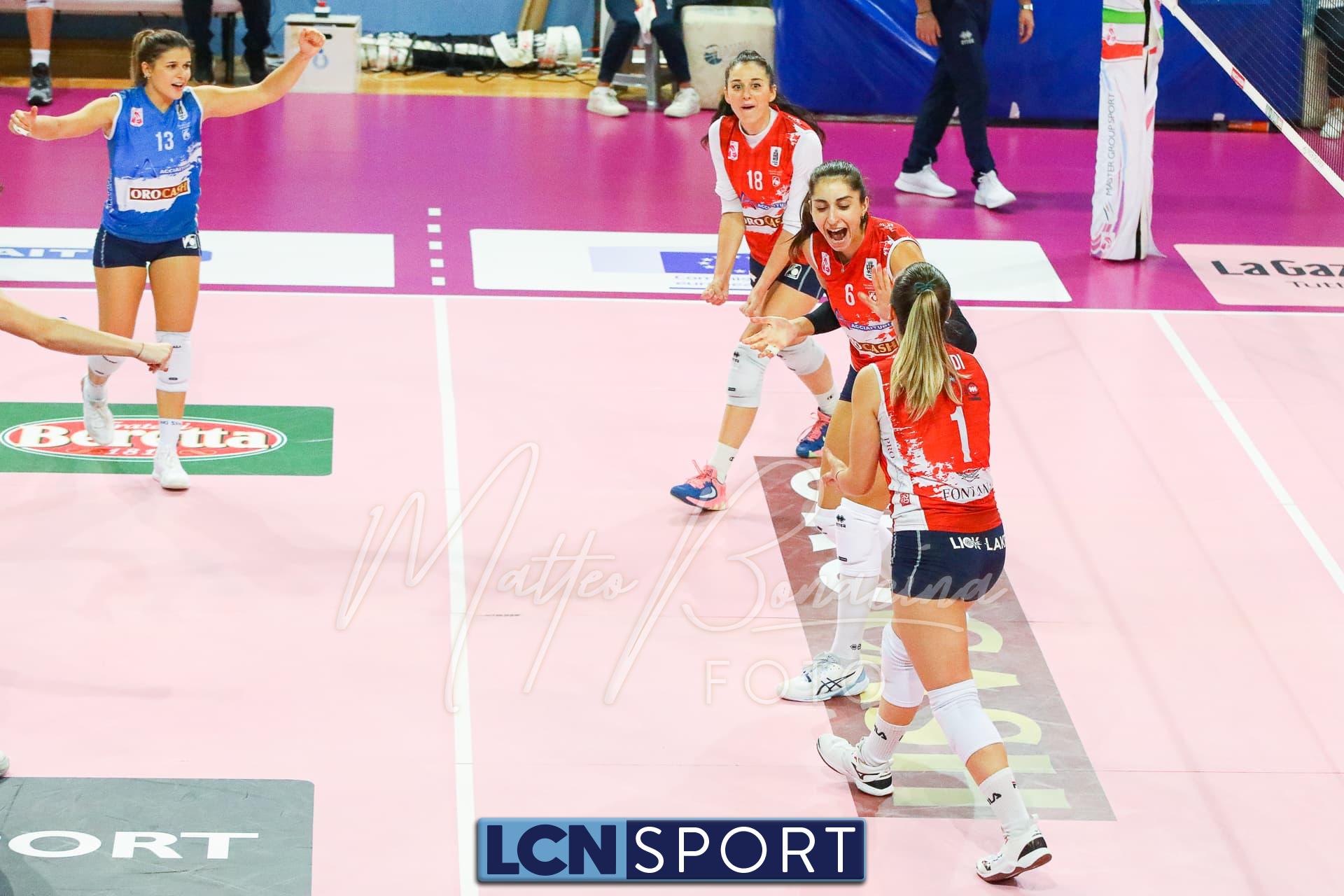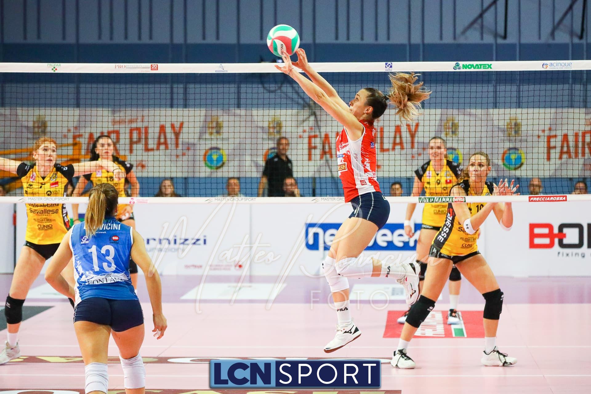 Terza sconfitta consecutiva per la Orocash Pallavolo Lecco Alberto Picco. Le biancorosse cedono (0-3) anche alla forte Valsabbina Millenium Brescia nella sempre bella cornice del “Bione”, incappando in un nuovo ko dopo quelli accusati con LPM Bam Mondovì e Club Italia. Match tosto quello andato in scena all’interno del palazzetto lecchese, come da pronostico, che le biancorosse hanno approcciato decisamente bene come nelle precedenti occasioni: la squadra di coach Gianfranco Milano si è messa a tirare sin dai primi scambi, arrivando a un passo dalla chiusura del parziale a proprio favore (24-22), non riuscendo però a chiudere almeno uno dei due set point a disposizione. Girata l’inerzia del match, le Leonesse cambiano marcia e chiudono (25-27), riuscendo ad allungare subito anche nel corso del secondo parziale (13-18) e amministrando fino alla seconda chiusura (19-25). Nel terzo set le biancorosse tengono botta negli scambi iniziali, ma alla lunga la maggior qualità di Brescia viene fuori sotto i colpi di una devastante Josephine Obossa, 24 punti messi a referto in tre set.