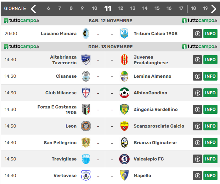 Nel girone B di Eccellenza lombarda militano due squadre del nostro territorio ovvero Brianza Olginatese e Manara che nel tredicesimo turno saranno di scena rispettivamente in trasferta con il San Pellegrino e in casa contro la capolista Tritium
