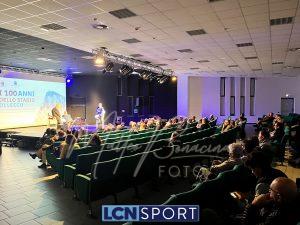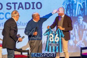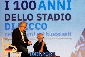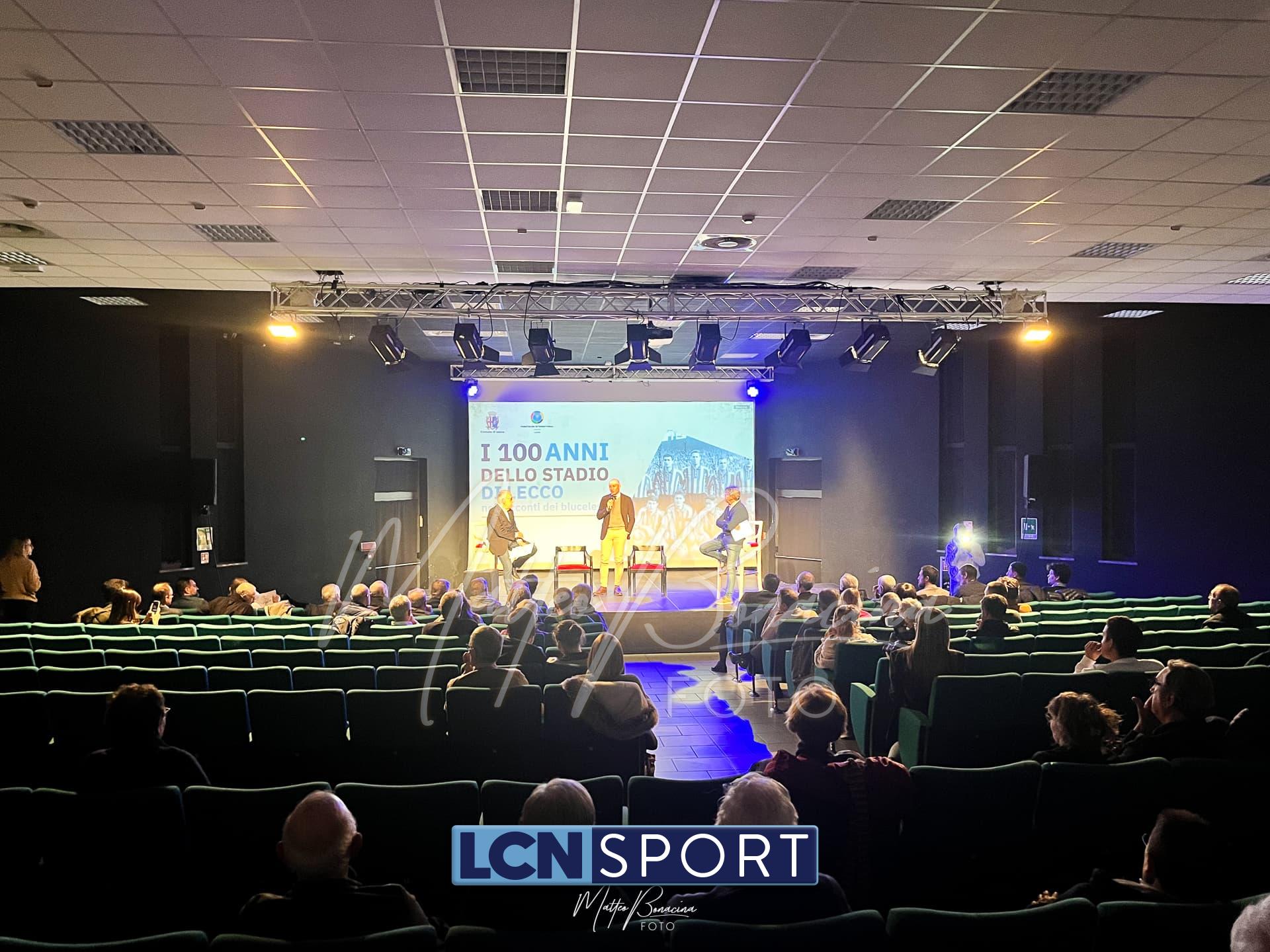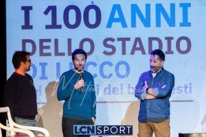 Tutti insieme per festeggiare nuovamente i 100 anni dello stadio “Rigamonti-Ceppi” di Lecco. Dopo l’apposizione della targa sul muro esterno dell’impianto, a Teatro Invito si è tenuta la serata amarcord, con i protagonisti blucelesti di oggi e degli anni passati a confronto sull’importanza del Tempio per il calcio nostrano, inaugurato il 15 ottobre 1922 e passato dalle molteplici modifiche che l’hanno portato alla forma attuale. Serata presentata da Marco Corti e Oscar Malugani, mentre in prima fila si è presentata la delegazione bluceleste composta da mister Luciano Foschi, Vedran Celjak, Matteo Battistini e Andrea Malgrati, oltreché dal responsabile della comunicazione Filippo Gianotti. Immancabile Gabriele “Lele” Ratti, con lo storico capitano e recordman di presenze Lorenzo Marconi e Mauro Borghetti al suo fianco.