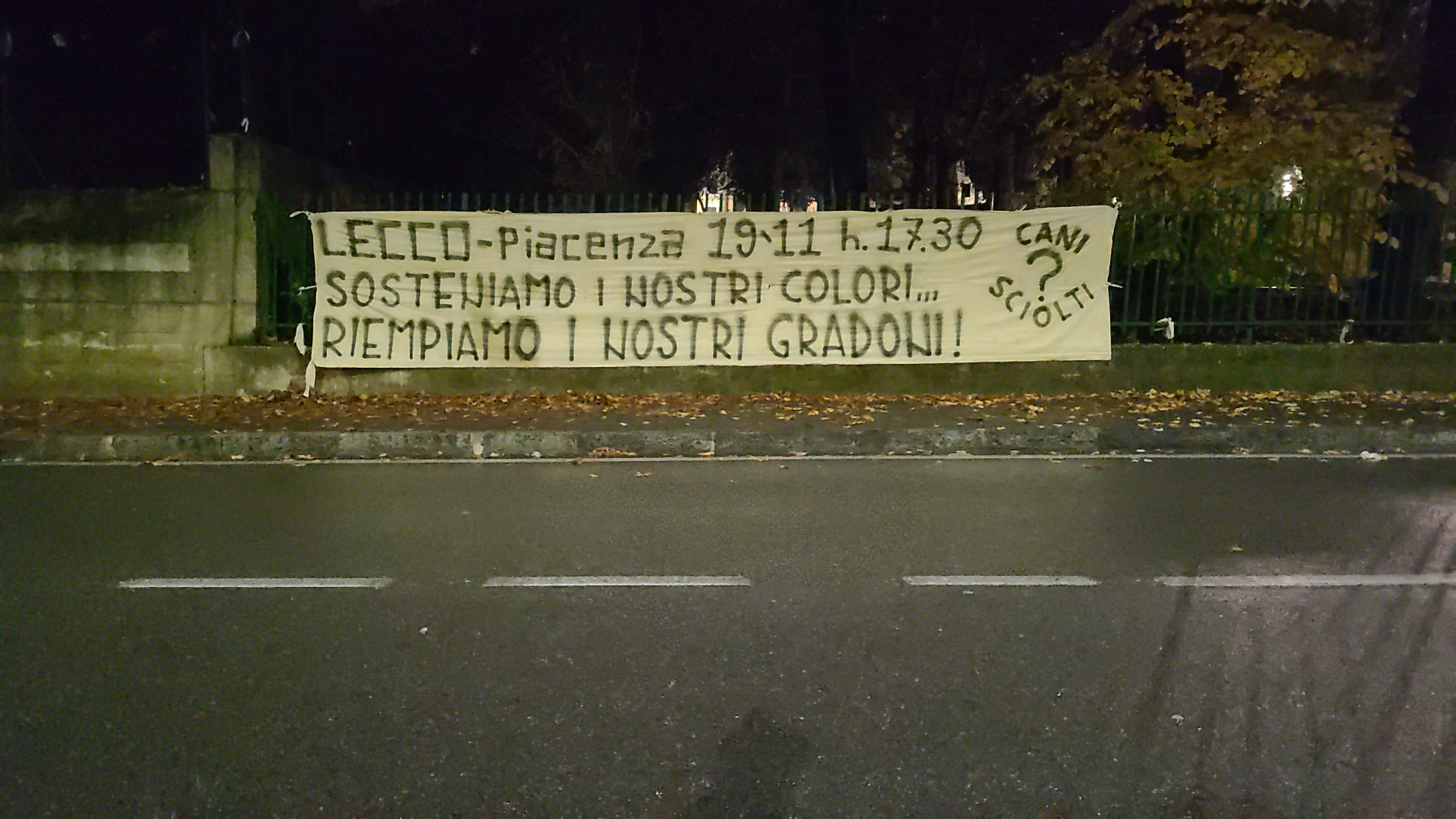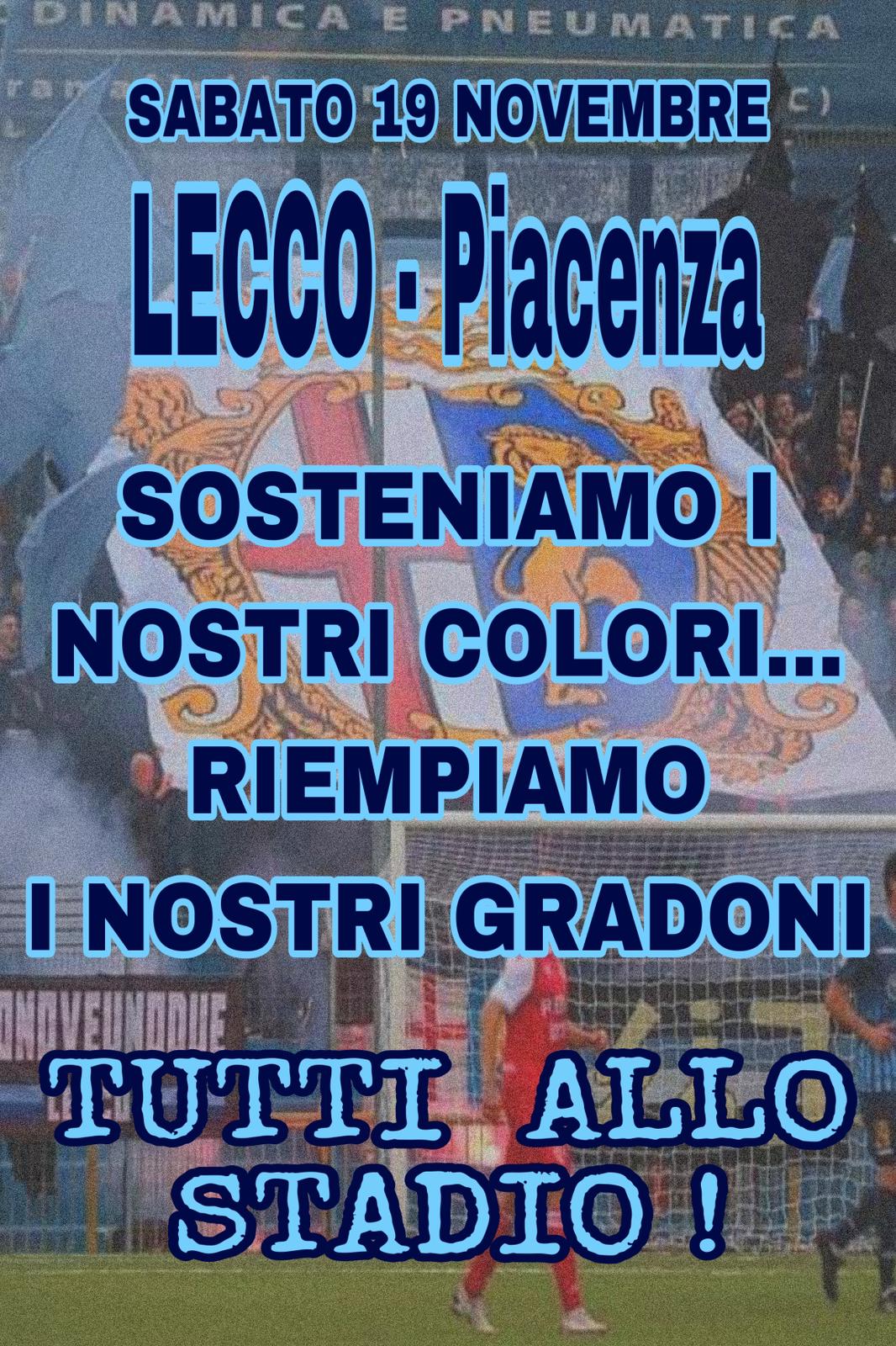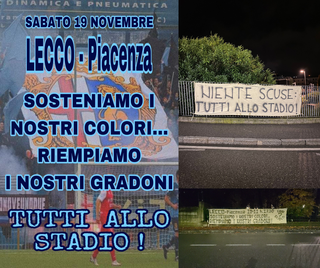 Lecco-Piacenza non è una partita come tante altre. Tutt’altro. Tra le rispettive tifoserie fazioni scorre una rivalità lunga da almeno una decade. Niente che lo scorso anno impedì ai tifosi blucelesti di rendere omaggio a Davide Reboli, monumento del tifo emiliano scomparso improvvisamente proprio pochi giorni dopo la trasferta del “Rigamonti-Ceppi”. Sabato 19 ottobre le due compagini torneranno in campo per affrontarsi e, chiaramente, sugli spalti dell’impianto di via dell’Eremo torneranno i supporter per sostenere i rispettivi colori. Per le vie della città capoluogo sono comparsi, nella notte tra giovedì e venerdì, vari striscioni che invitano a recarsi allo stadio per la gara, in programma alle 17.30 (prevendita), mentre sugli schermi ha iniziato a girare il volantino preparato per l’occasione che proponiamo in questa galleria fotografica. I tifosi ospiti arriveranno in città, invece, usando il treno.