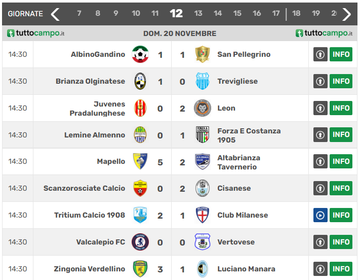 La classifica e le gare del quattordicesimo turno del girone B di Eccellenza lombarda