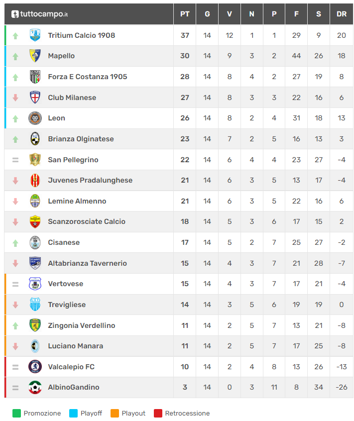 Di seguito vengono proposte la classifica e le sfide del quattordicesimo turno del girone B di Eccellenza lombarda: