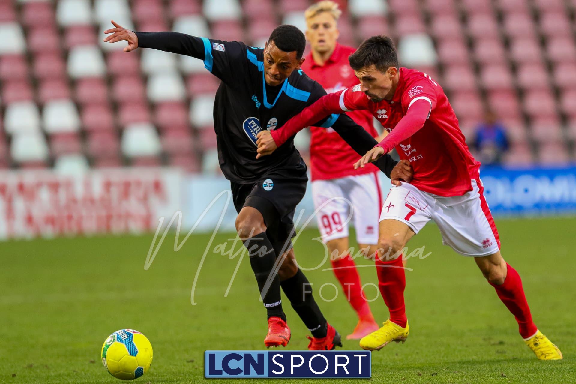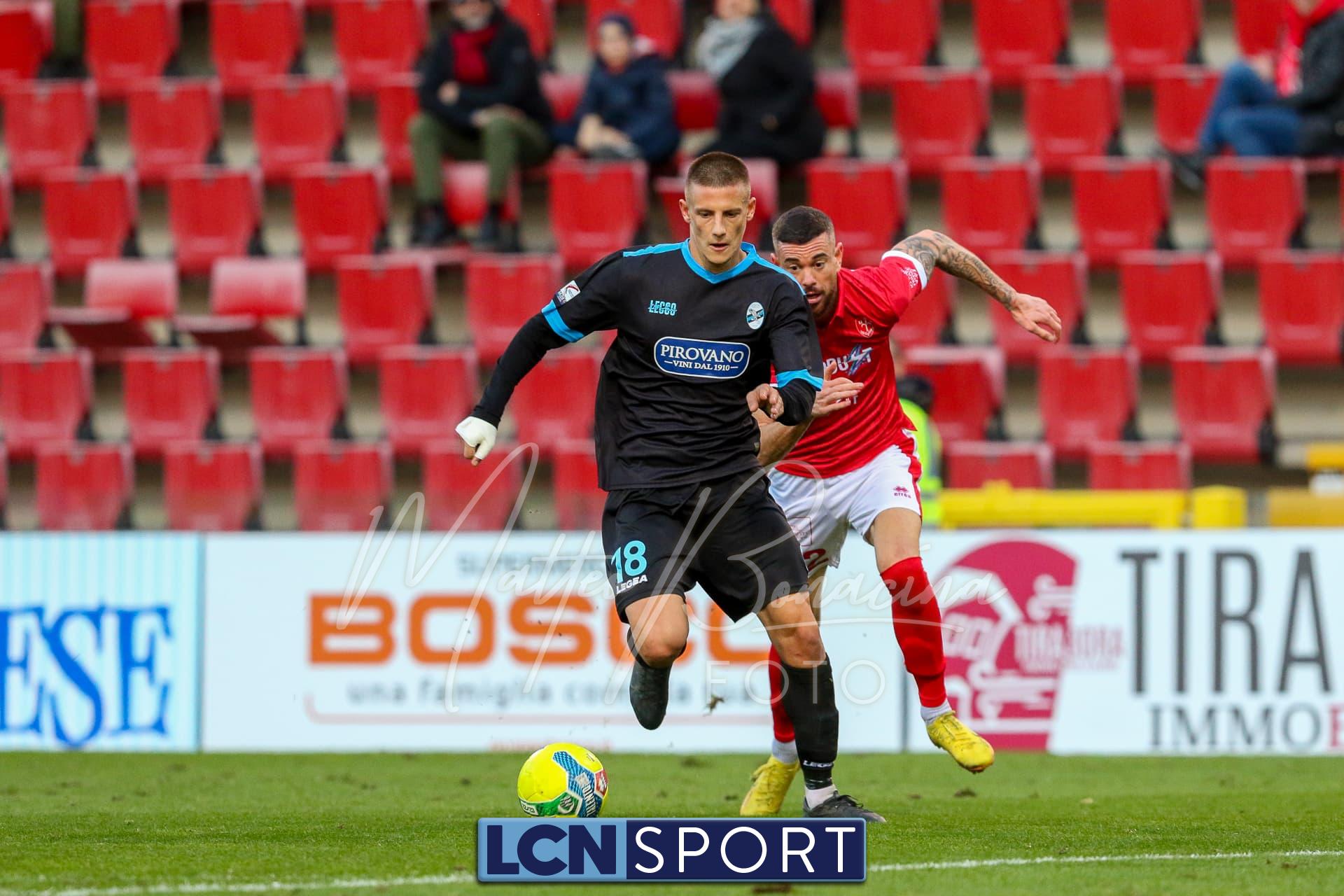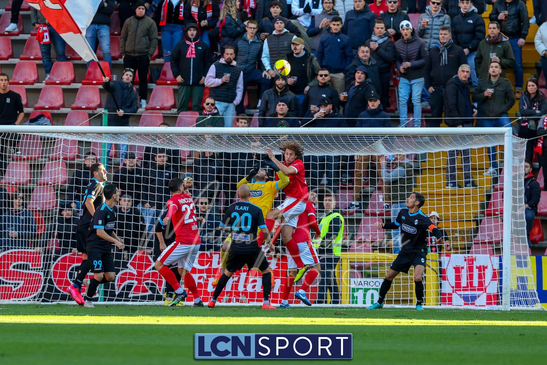 Minuto 17, grande occasione per il Lecco: dal corner di Maldonado Celjak la schiaccia di testa e colpisce un difensore dei padroni di casa sulla linea.