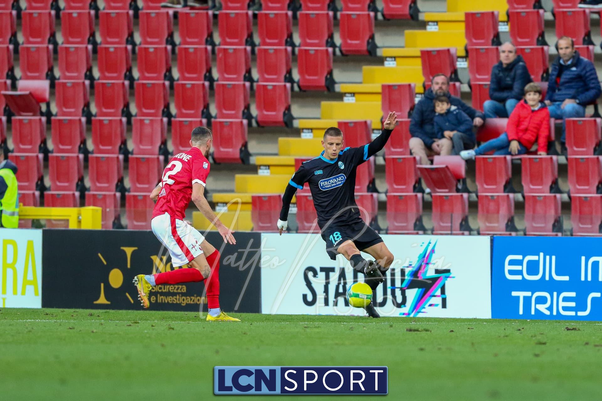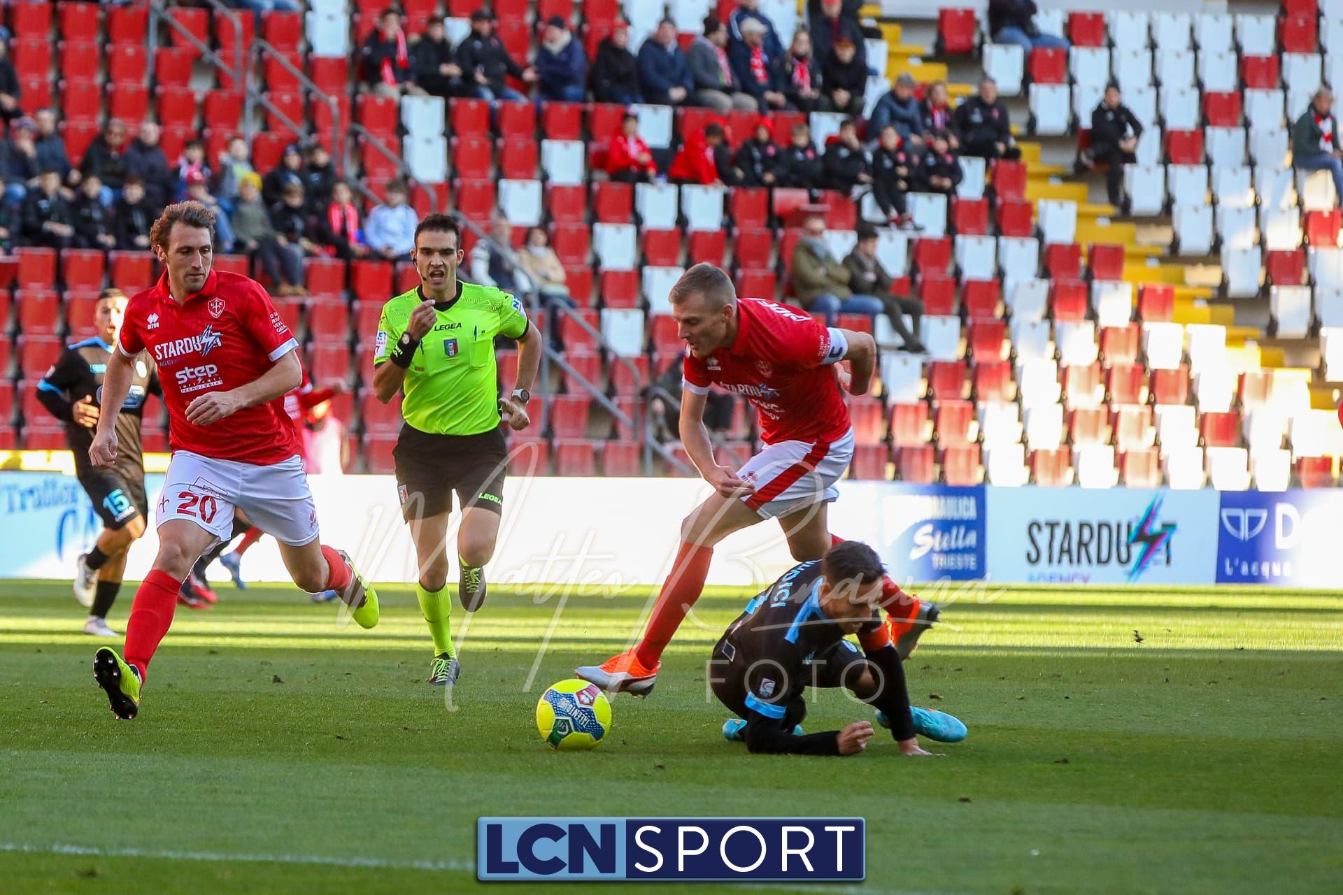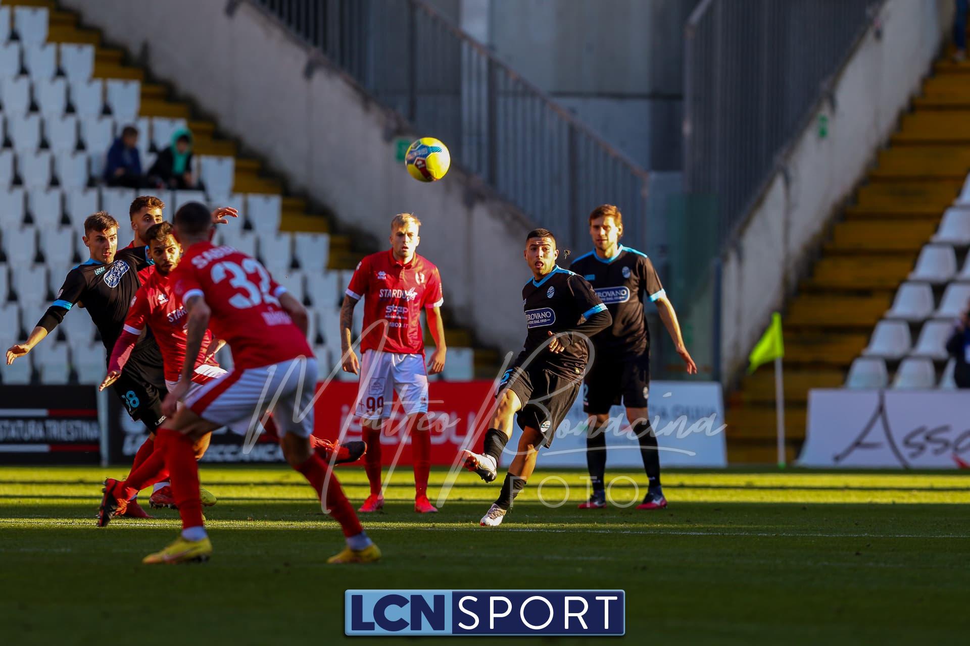 La reazione della Triestina al 19′: punizione di Pezzella in area, colpo di testa a servire Ganz, libero nell’area piccola; l’ex centravanti bluceleste fa passare la palla in mezzo a una selva di gambe e incrocia battendo Melgrati. Grande chance Lecco al 31′ con il tiro al volo di Lepore da destra che trova la deviazione di Ciofani e poi di Mastrantonio a salvare.