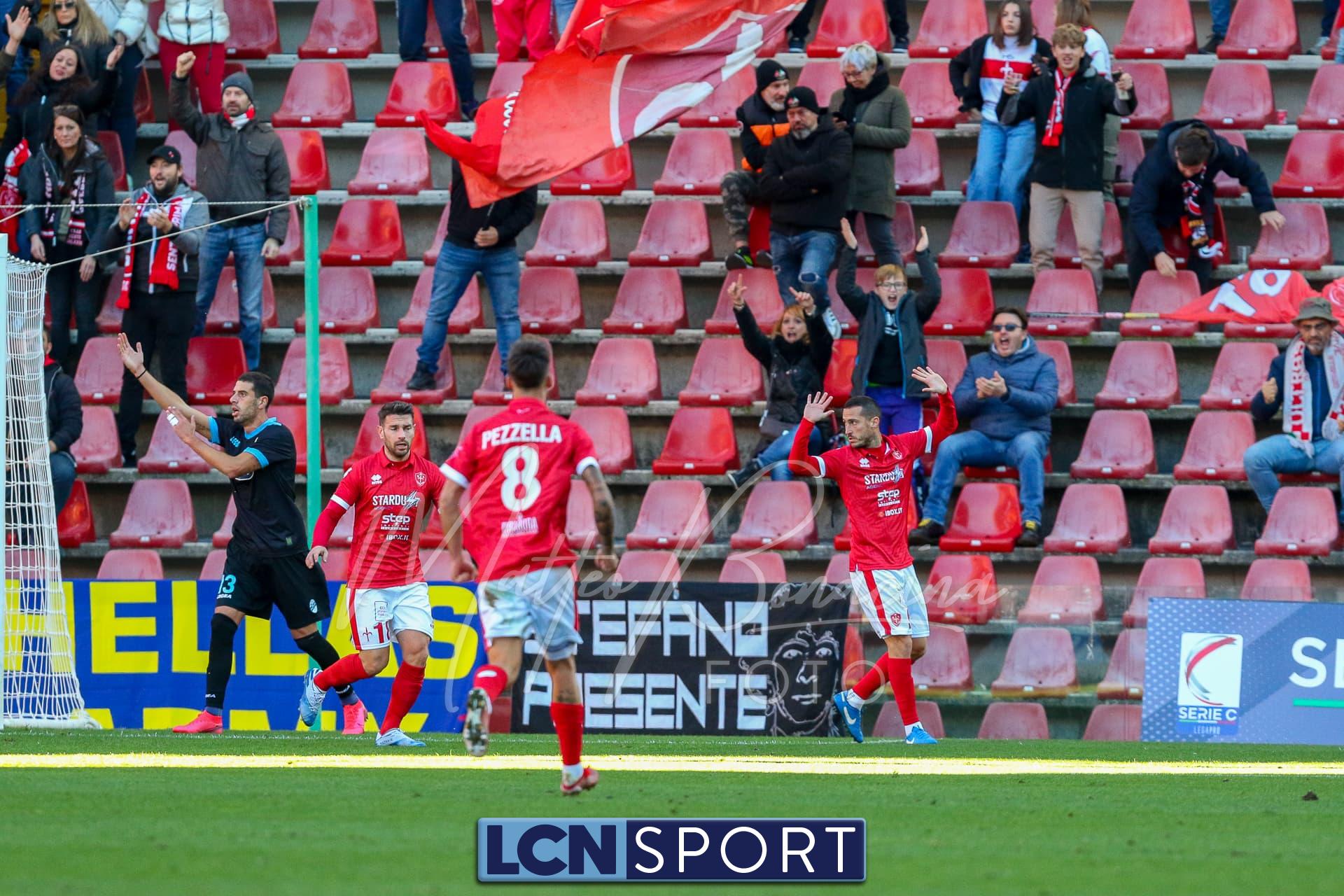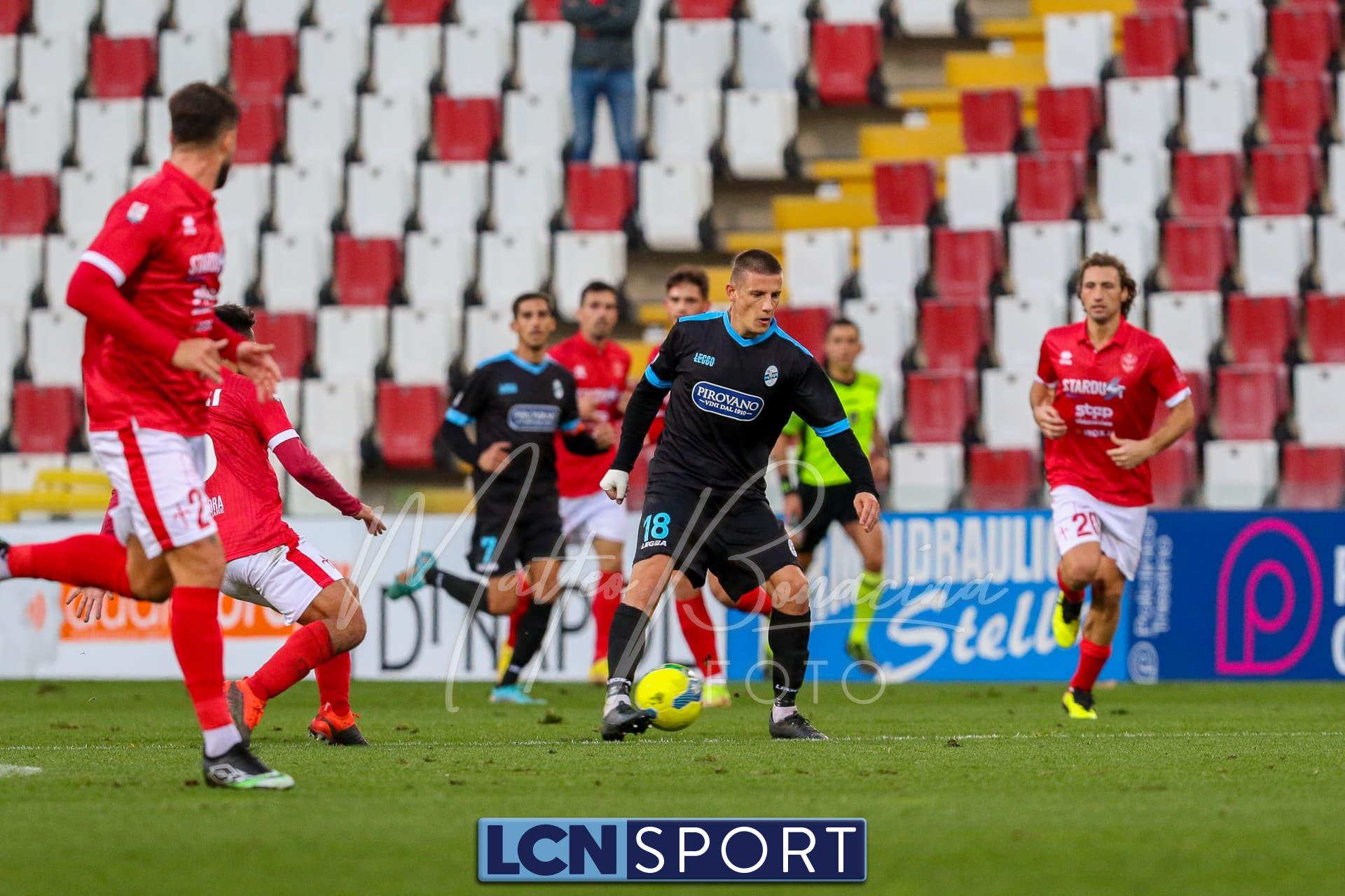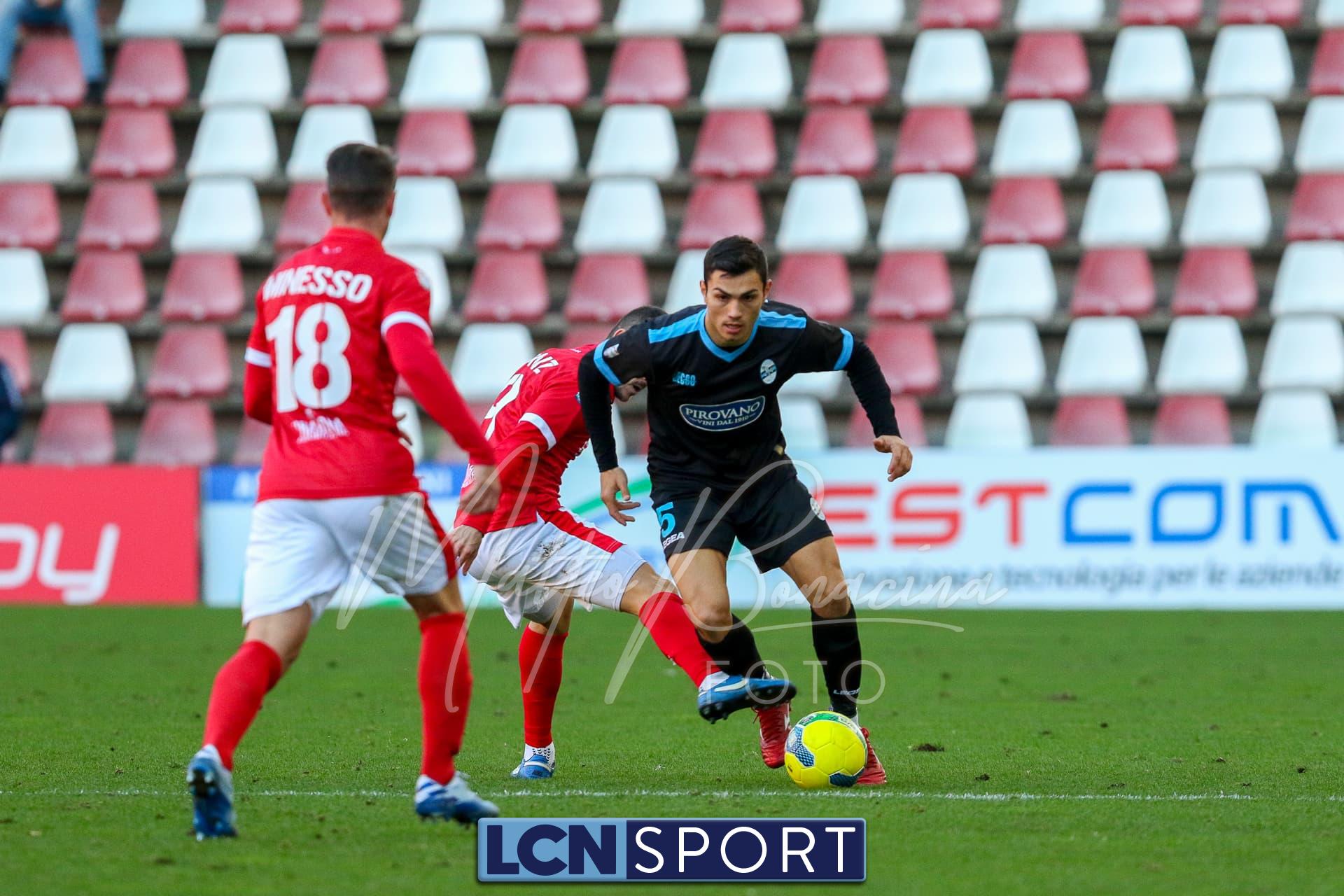 Inizia meglio il Lecco: al 47′ Pinzauti dal limite dell’area va al volo col destro su una palla che spiove dall’alto; a fil di palo. Al 52′ Felici entra in area da sinistra e si ritrova a tu per tu con Battistini, bravo a fare opposizione davanti a Melgrati.