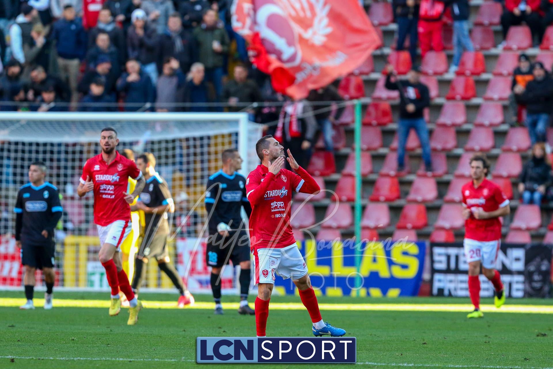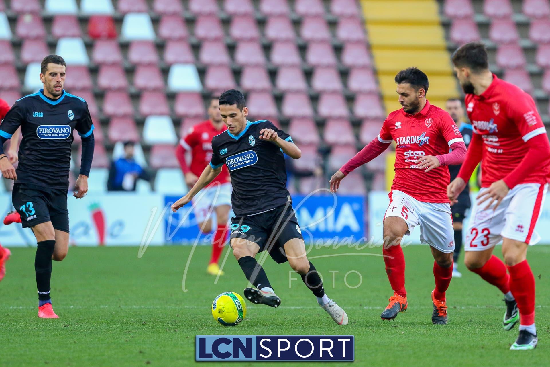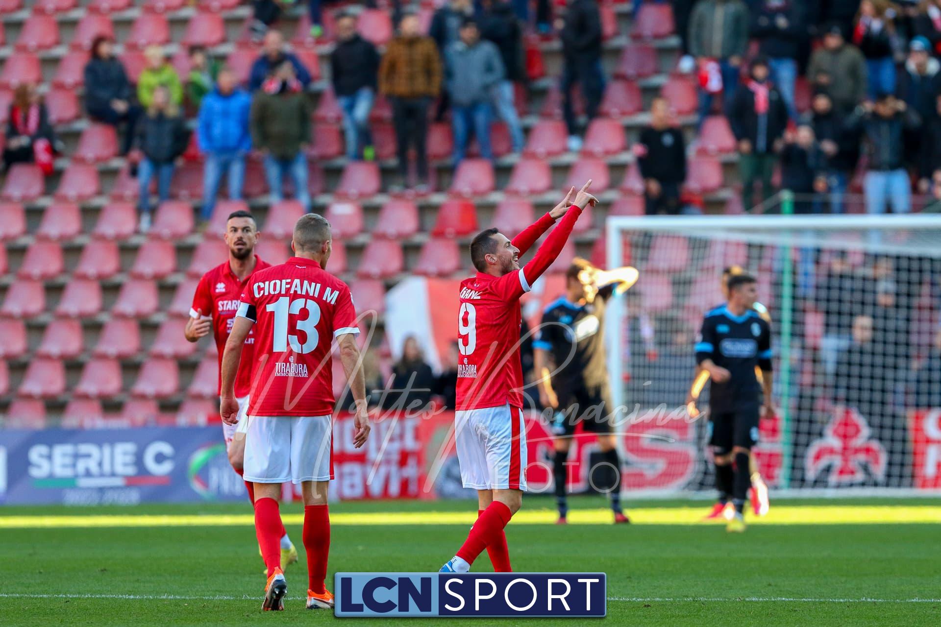 Inizia meglio il Lecco: al 47′ Pinzauti dal limite dell’area va al volo col destro su una palla che spiove dall’alto; a fil di palo. Al 52′ Felici entra in area da sinistra e si ritrova a tu per tu con Battistini, bravo a fare opposizione davanti a Melgrati.