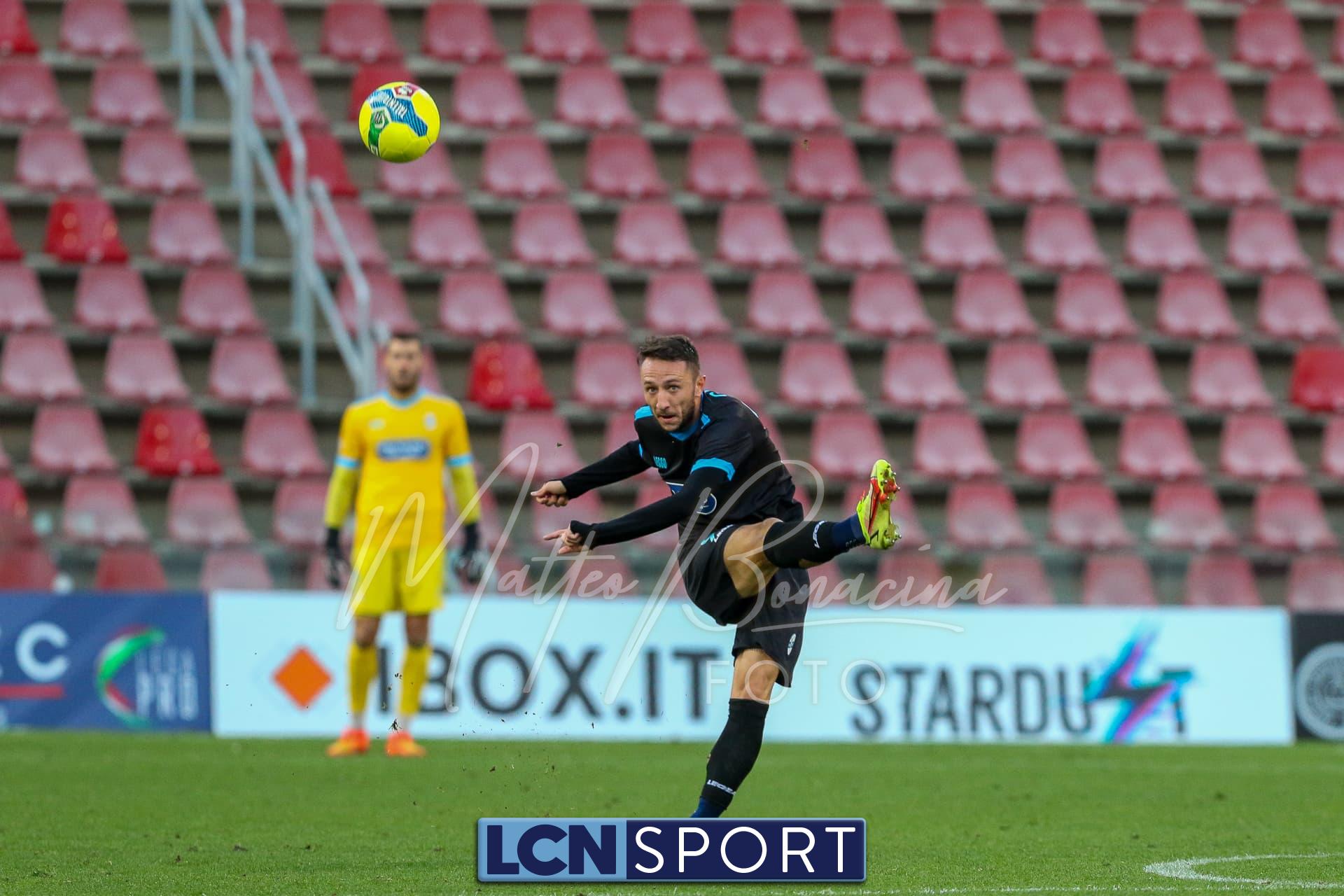 Un minuto e azione di Ilari da sinistra, cross immediato sul palo lungo e Zuccon arriva a colpire sulla linea di fondo da posizione quasi impossibile, impegnando Mastrantonio. È il prologo al vantaggio: palla vagante al limite dell’area, Pinzauti la stoppa bene e scaglia un destro devastante dai 20 metri, di puro istinto, con il portiere dei giuliani leggermente fuori dai pali. Super gol per l’1-0 ospite. Poco dopo cross da sinistra per il Lecco e nessuno interviene sul pallone che attraversa l’area.