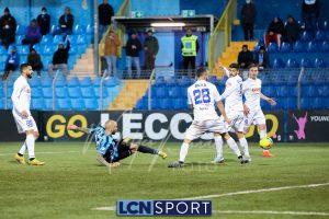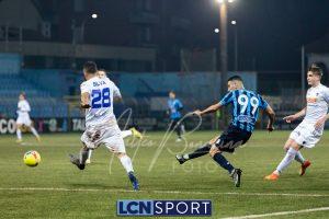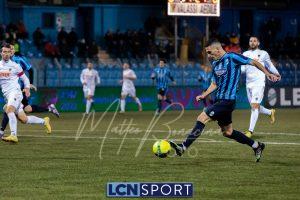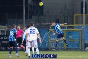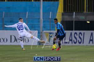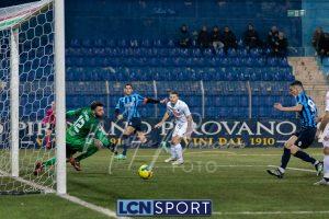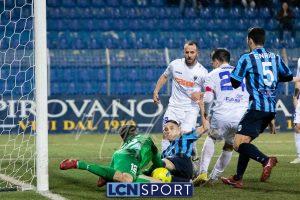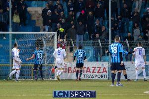 Il gol del Lecco al 35′: bella transizione di Buso che apre a destra su Giudici; il capitano sterza sul mancino, una finta e tiro violento su cui c’è la deviazione decisiva di Possenti che fa impennare il pallone sotto il sette. C’è subito la chance del raddoppio con l’accelerazione di Buso che apre su Pinzauti: sinistro potente da posizione defilata, Drago para ma subisce poi fallo.