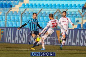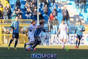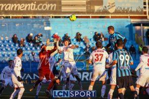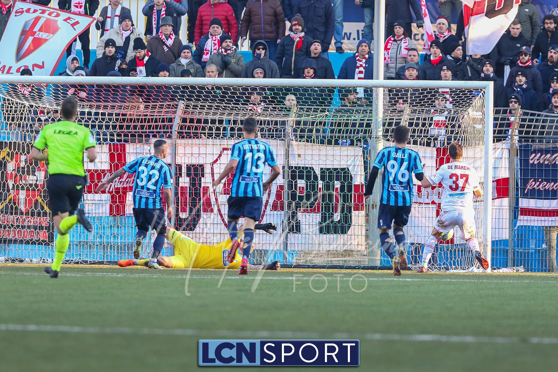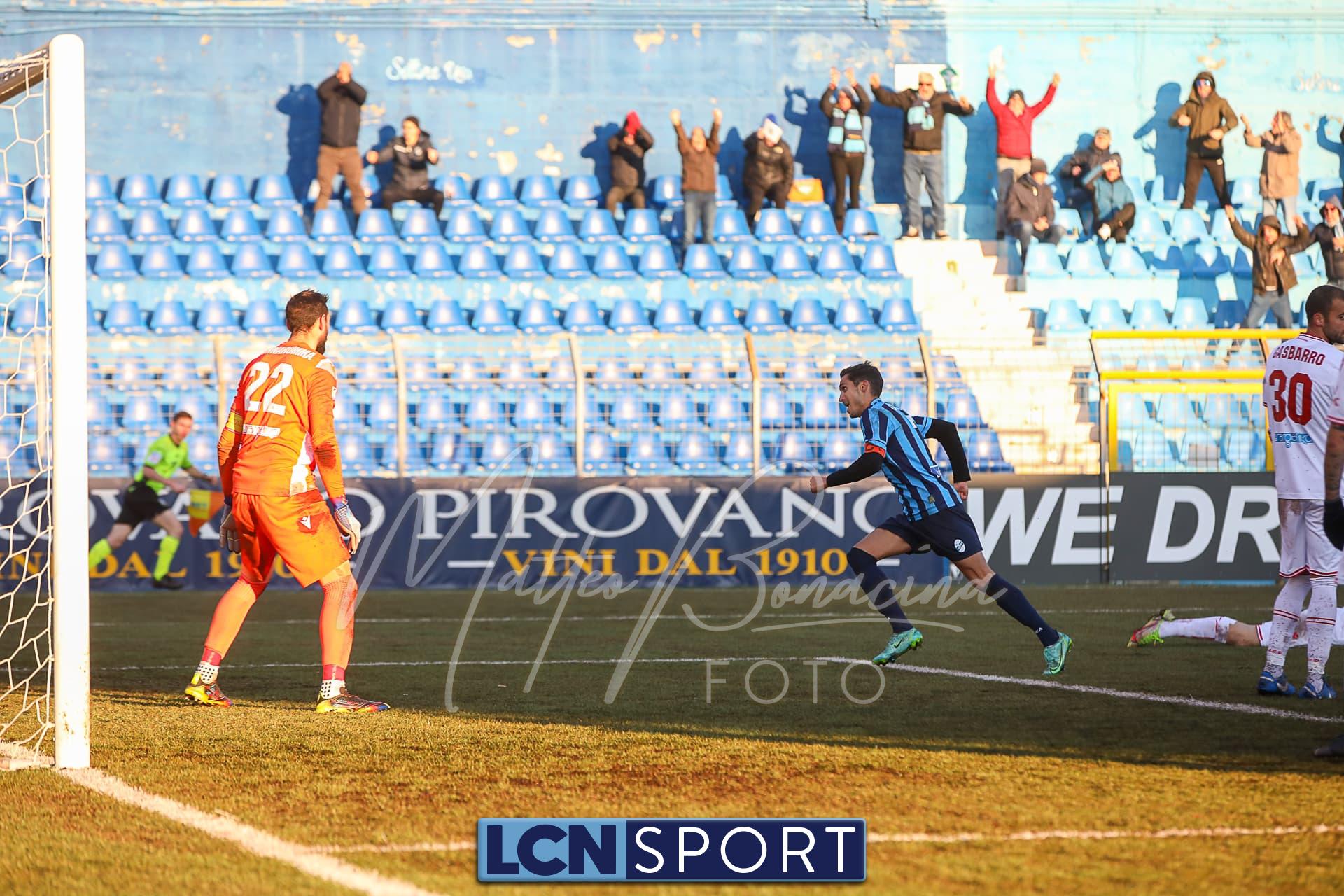 Melgrati costretto all’intervento importante al 25′ sul bel destro di Cretella: tuffo a sinistra per sventare la minaccia. La partita si riapre alla mezzora: cross a campanile di Cretella da sinistra, Liguori dalla linea di fondo la mette nell’area piccola di testa, l’accorrente Zambataro se la ritrova sulla coscia e insacca sfortunatamente alle spalle di Melgrati. Poco più tardi tentativo dell’ex Vasic in rovesciata, fuori di pochissimo. La reazione del Lecco nel tentativo di Girelli con il sinistro al 35′, troppo debole per impensierire Donnarumma.