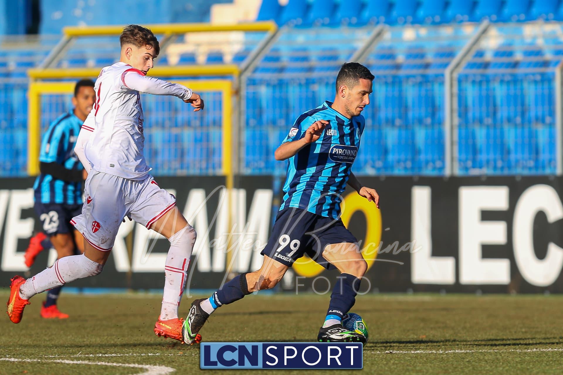 Il Lecco resta in avanti e fa la partita: tentativo di Pinzauti da sviluppi di punizione, conclusione deviata. Al 17′ Buso lanciato in verticale viene rimontato da Belli al momento del tiro. Clamorosa doppia chance un minuto più tardi nell’area del Padova, sul retropassaggio sbagliato al portiere: ci prova Buso, si salva la squadra veneta, sulla seconda palla piomba Pinzauti che calcia a botta sicura ma Germano respinge quasi sulla linea. Da punizione di Lepore salta Pinzauti, il colpo di testa non inquadra la porta di poco.