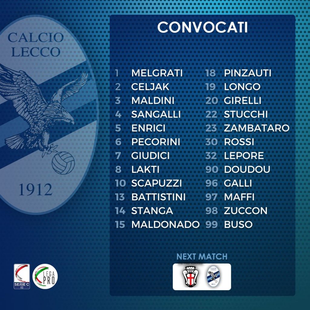 Verso Pro Vercelli-Lecco: i convocati di mister Luciano Foschi