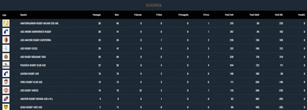 Altra vittoria con un punteggio molto alto, 43-6 (primo tempo 18-6), che vale il quarto posto in classifica a 9 punti di distanza dalla capolista Amatori&Union Milano e dal Monferrato (38), con Capoterra a 33.