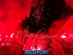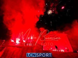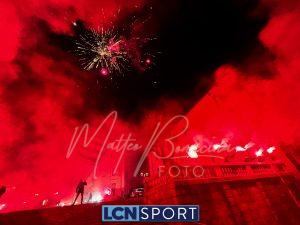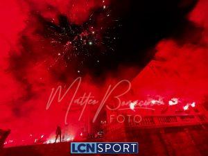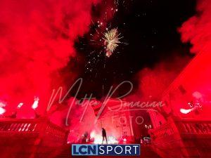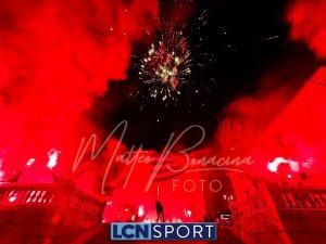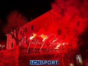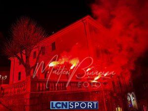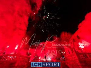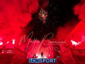 Giovedì 22 dicembre la Calcio Lecco 1912 ha compiuto gli anni. Ognuno vuole fare la propria parte in questo momento storico: lo sponsor tecnico con una maglia celebrativa a scopo benefico, la società anche colorando la Curva Sud, i tifosi con una torciata nel cuore della città. Durante la scorsa serata i gruppi organizzati della Curva Nord si sono ritrovati di fronte alla Basilica di San Nicolò e al Campanile, uno dei simboli più noti del capoluogo manzoniano, e hanno dato vita a un breve momento di festa: cori, canti, i colori tipici delle torce da stadio e anche i fuochi artificiali sparati nel cielo cittadino. In mezzo alle due ali è stato sventolato il grande bandierone a strisce orizzontali blucelesti che si vede sempre anche al “Rigamonti-Ceppi”. Qualche anno fa, come ricorderanno i più, gli ultras della Nord illuminarono il ponte Azzone Visconti, noto come ponte Vecchio, utilizzando i medesimi mezzi: uno spettacolo dal grande impatto scenico anche in quella occasione. Tanti auguri, Calcio Lecco!
