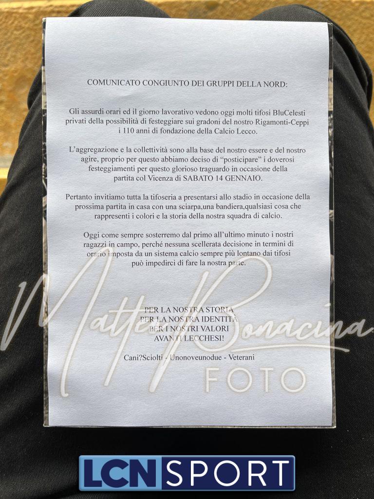 Venerdì 23 dicembre, ore 14.30, duemila persone sugli spalti del “Rigamonti-Ceppi” ci sono più di duemila persone per Lecco-Virtus Verona. 1338 spettatori e circa 700 bambini, atleti delle società cittadine invitati a riempire e colorare la Curva Sud, con tanto di grande striscione sopra le teste nella zona centrale e pannellini blucelesti esposti verso il campo. “Semi etici e morali” è lo slogan che ormai da un anno accompagna questo tipo di iniziative, replicate nel corso del tempo e a cadenze regolari per volontà di sponsor e società. In linea generale è da rimarcare la notevole partecipazione in quello che rimaneva un giorno feriale e lavorativo per tante persone, oltreché di corsa agli ultimi regali di Natale: peccato solo per aver visto slittare i festeggiamenti per il compleanno della società al 14 gennaio, giorno di un Lecco-Vicenza che potrebbe vedere un nuovo picco di presenze in via Don Pozzi anche grazie all’annunciata ampia partecipazione dei tifosi ospiti, che sono soliti muoversi in massa fuori dal Veneto. E c’è da credere che i tifosi blucelesti non saranno da meno.