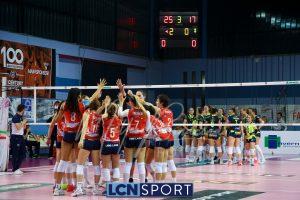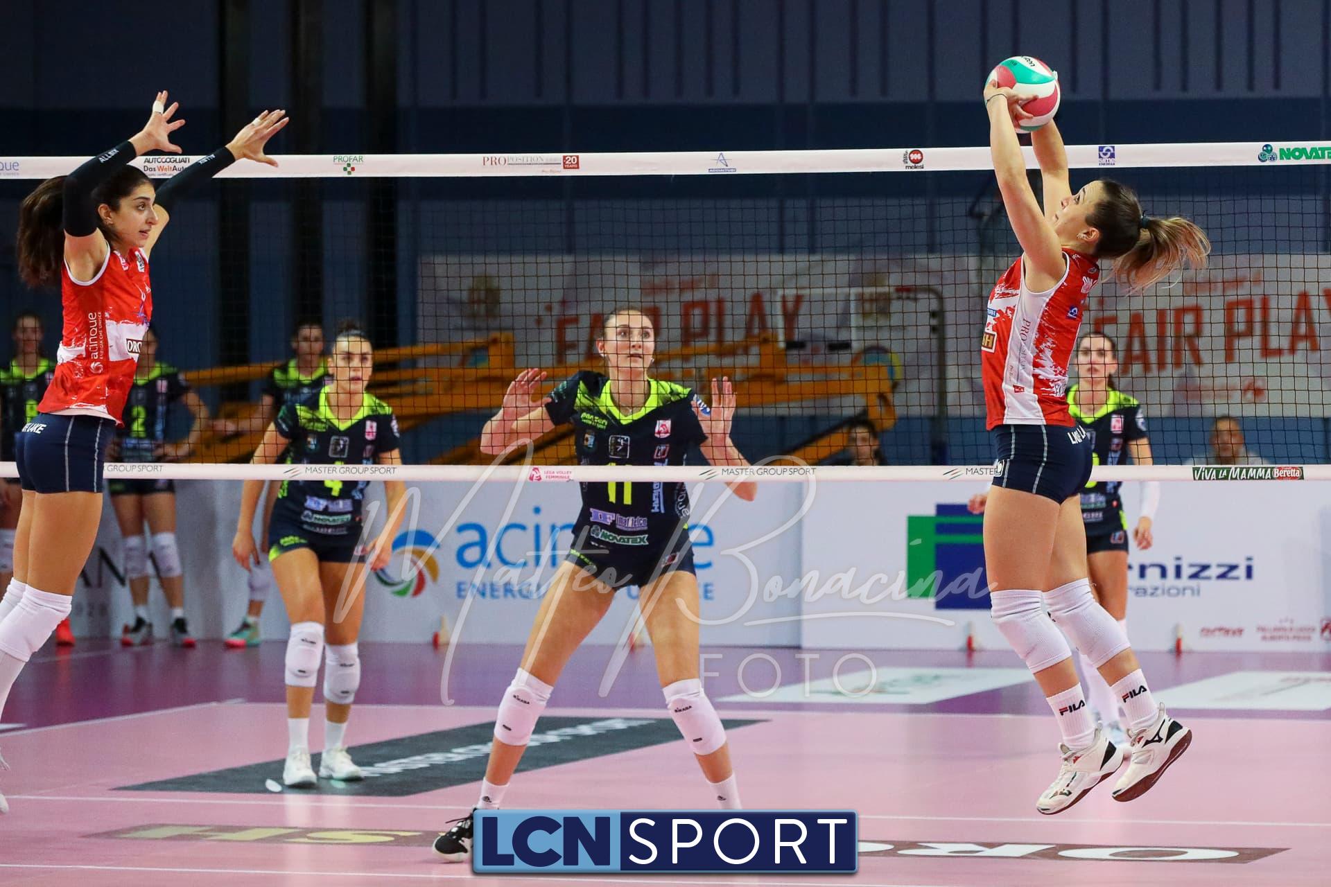 Non c’è mai partita. La Orocash Picco Lecco vince il secondo derby stagionale con la Tecnoteam Albese Volley e si rilancia in classifica, mettendosi dietro proprio le comasche già battute all’andata. Stravince, la compagine biancorossa, davanti a un “Bione” pieno in ordine di posto nel giorno di Santo Stefano, una delle tante novità portate dalla promozione in Serie A2. Alla compagine allenata da coach Gianfranco Milano serviva una vittoria piena e quella è arrivata, mai in bilico o messa in discussione: l’equilibrio c’è stato solamente nel secondo set, ma nel momento più caldo le lecchesi hanno mostrato di volersi portare a casa tutta la posta in palio, chiudendo nel miglior modo possibile il 2022. Così è stato: Picco Lecco superiore in tutti i fondamentali e nelle fasi di gioco, Albese che ha ampiamente dimostrato di non ancora trovato la chiave di volta di una stagione partita con bel altre aspettative. Ora breve pausa: la Orocash tornerà in campo l’8 gennaio sul campo della LPM BAM Mondovì, altra compagine che naviga sotto il livello delle proprie ambizioni dopo un girone d’andata alquanto deludente.