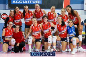 Lecco: Rimoldi 1, Bracchi 15, Lancini 9, Albano 10, Piacentini 8, Zingaro 14, Bonvicini (L), Bassi 1. Ne: Casari, Tresoldi, Citterio, Belloni. All. Milano.