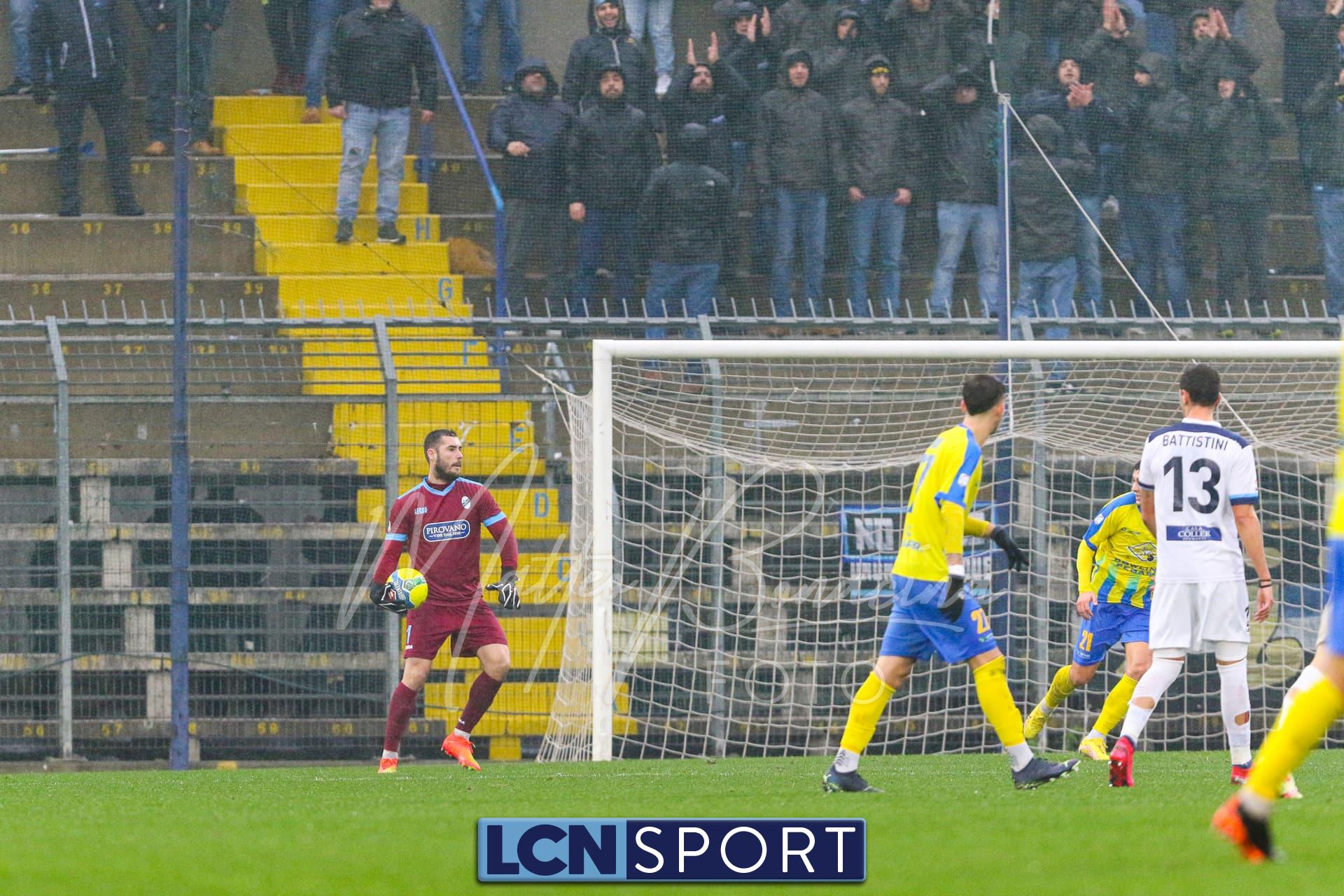 Il Lecco reagisce e al 17′ ha una bella occasione con Buso che, ritrovatosi nel cuore dell’area, cerca di piazzare l’interno destro sul secondo palo ma mette a lato. Iori calcia al 23′ a tu per tu con il portiere bluceleste, che para, ma è fuorigioco.