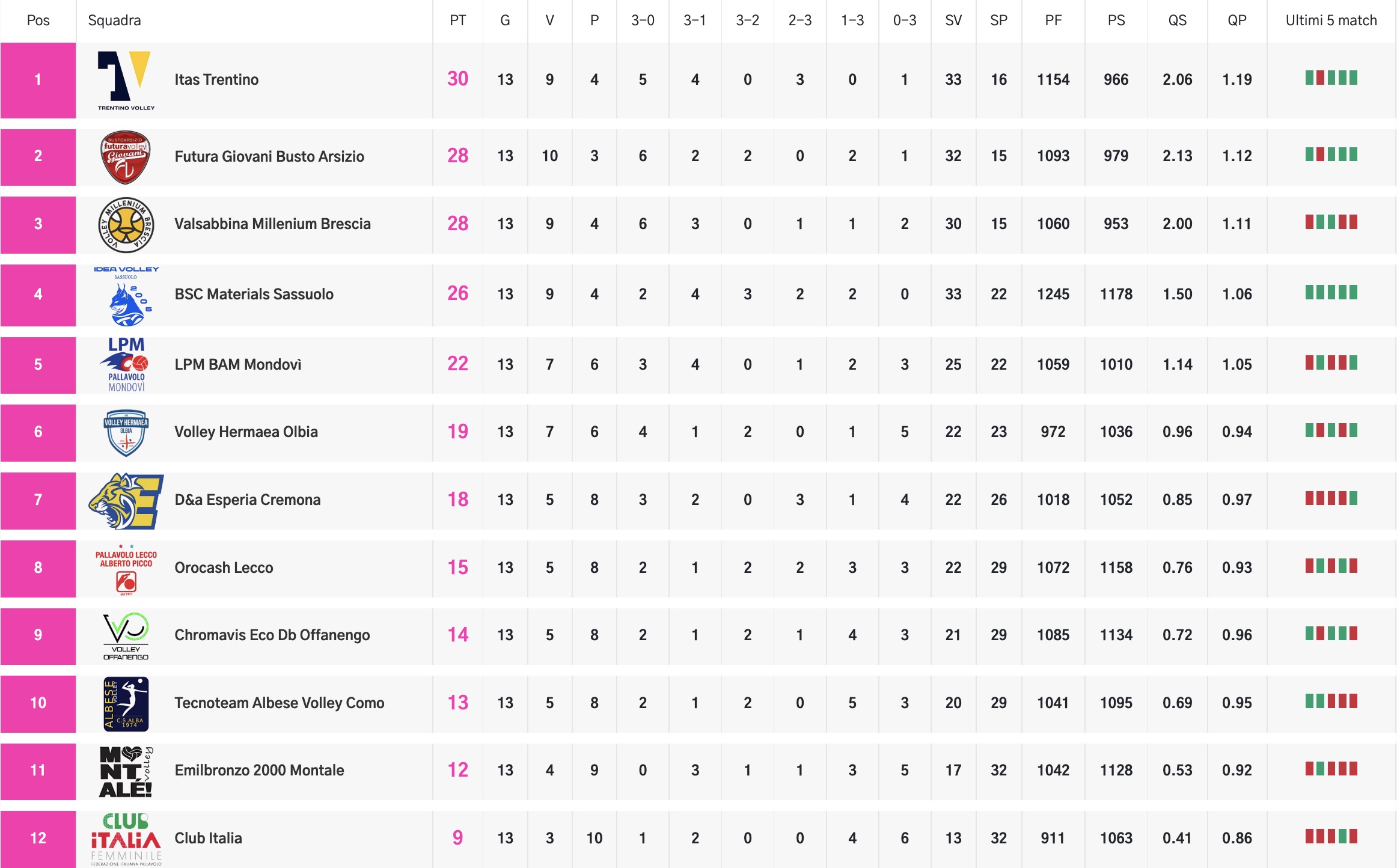 Non siamo ancora al momento del dunque, ma la doppietta che aspetta la Orocash Picco Lecco è di quelle da non sbagliare. Il Club Italia è la prima squadra che le biancorosse affronteranno in uno di quei momenti cardine all’interno di una stagione. Domenica sera alle ore 17 la squadra biancorossa sarà di scena al “Bione” dopo la netta sconfitta accusata con la Lpm Bam Mondovì all’alba del nuovo anno solare, mentre il il 22 sarà la volta di vedersela con l’Emilbronzo 2000 Montale; in mezzo, mercoledì 18 gennaio, era originariamente prevista la gara con la Valsabbina Millenium Brescia, che però è impegnata in Coppa Italia di Serie A2 e se la vedrà ai quarti proprio contro Mondovì: la squadra di coach Gianfranco Milano deve porsi l’obiettivo di fare filotto per dare un bello strappo in classifica e rimanere attaccata alla zona che vale l’accesso alla Pool Promozione e, come primo effetto, la salvezza diretta in cadetteria.