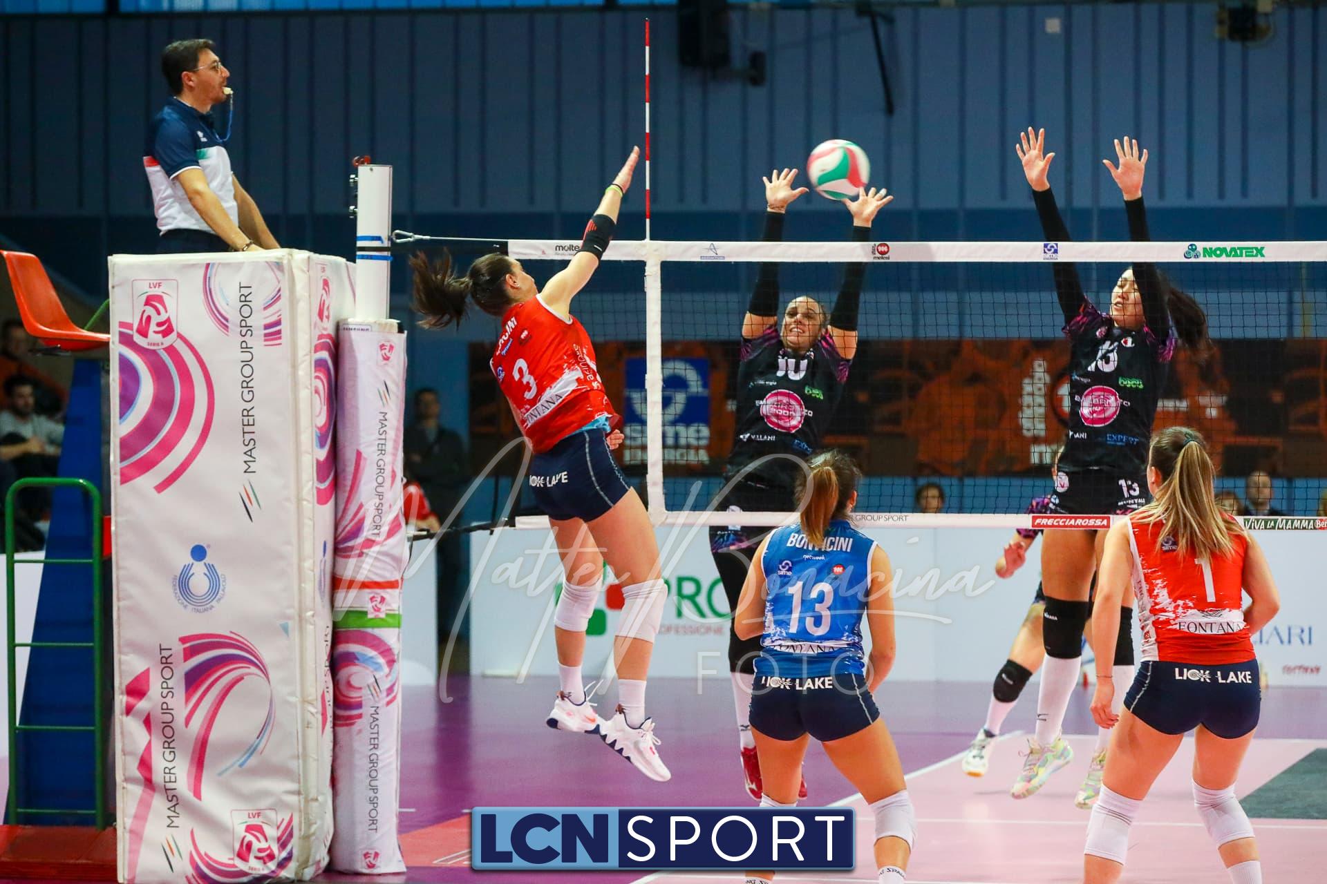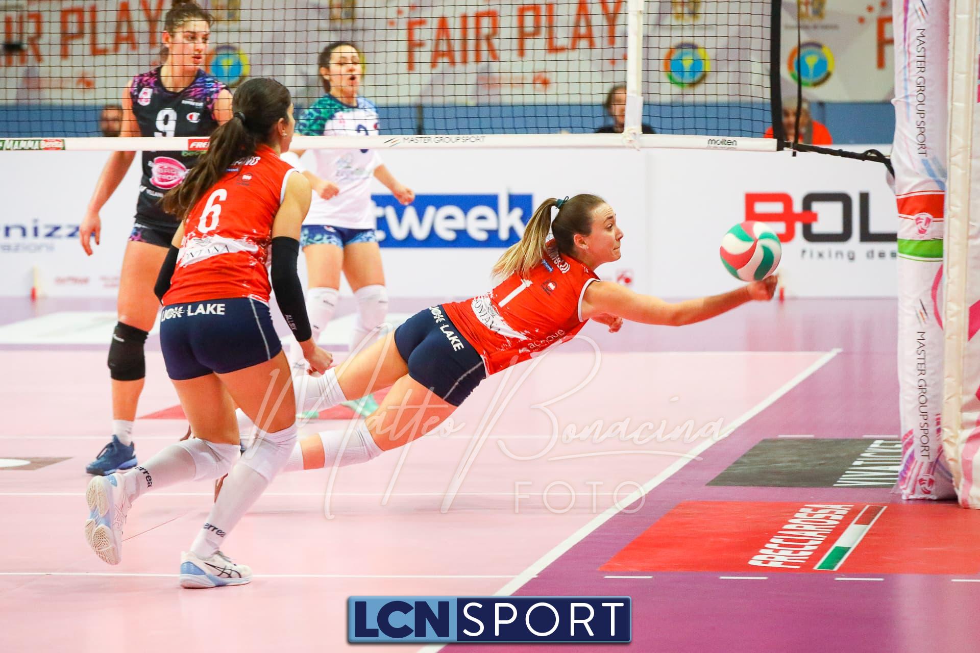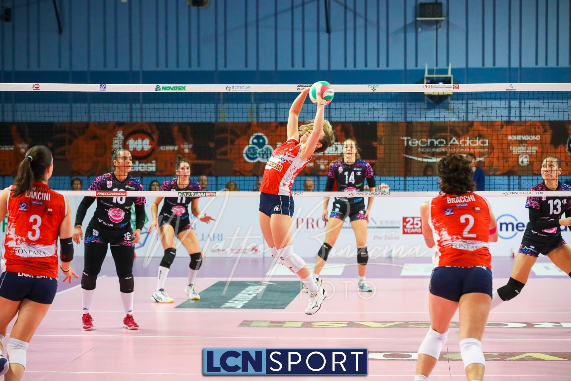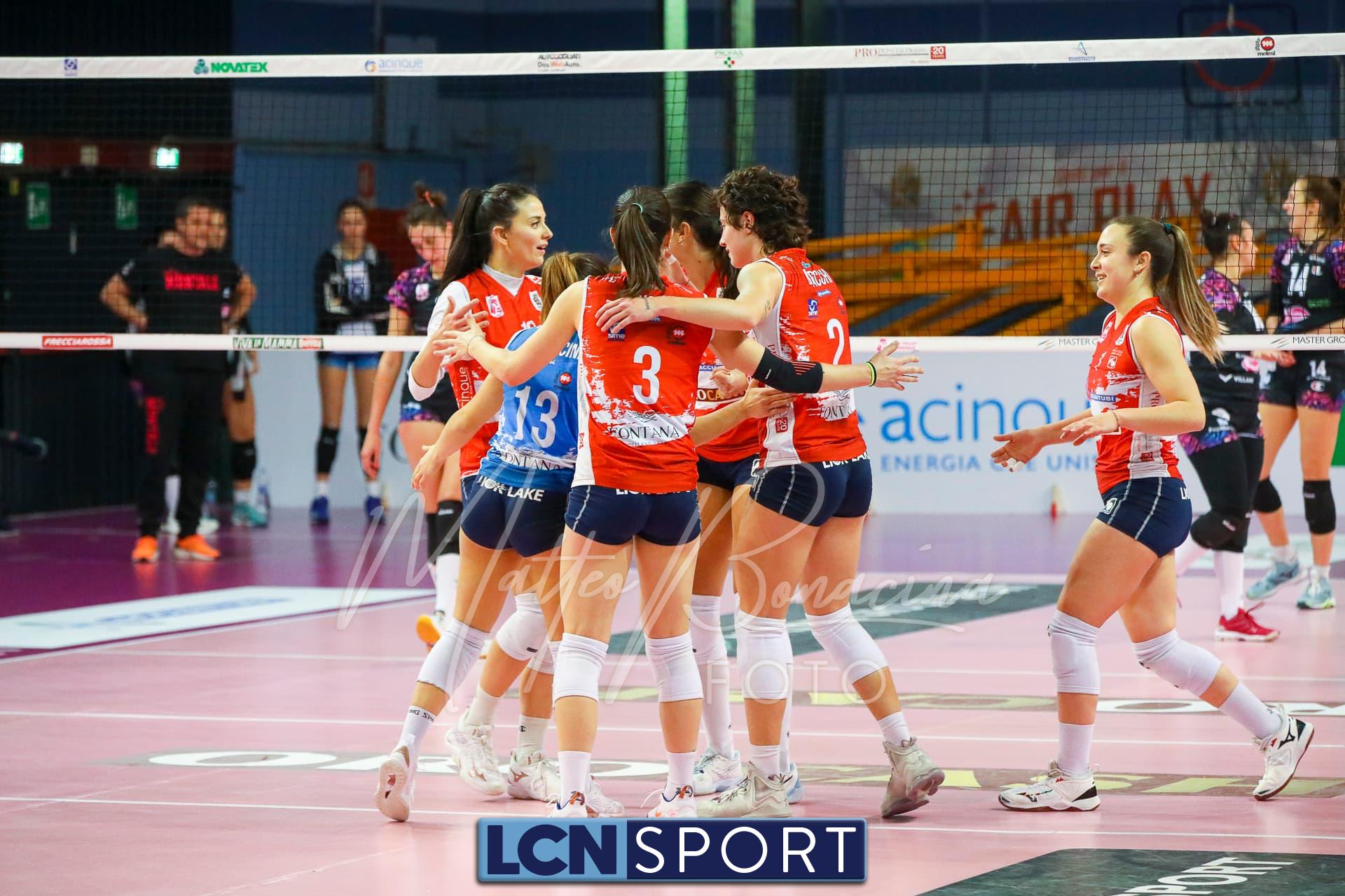 Il terzo parziale è per larga parte caratterizzato dall’autentico dominio biancorosso: si va fino al 19-9, Montale accorcia minimamente (20-13) grazie a tre aces consecutivi, poi la squadra ospite trova una rimonta pazzesca (21-21) e mette pure il naso davanti: si va ai vantaggi, la Picco si ritrova e vince (26-24). Il quarto parziale va avanti sul filo dell’equilibrio fino al clutch time, quando le emiliane non riescono a scappare nonostante il serio tentativo(18-20). La tensione si taglia con il coltello, le biancorosse non mollano l’osso nonostante i tanti set point da fronteggiare: Bonvicini e Rimoldi portano a compimento un paio di difese da vedere e rivedere, la palleggiatrice sceglie sempre Martina Bracchi che, in piena trance agonistica, mette a terra praticamente ogni pallone che le viene assegnato; l’opposto scarica fortissimo anche il primo match point e la Picco Lecco si mette in tasca altri tre punti.