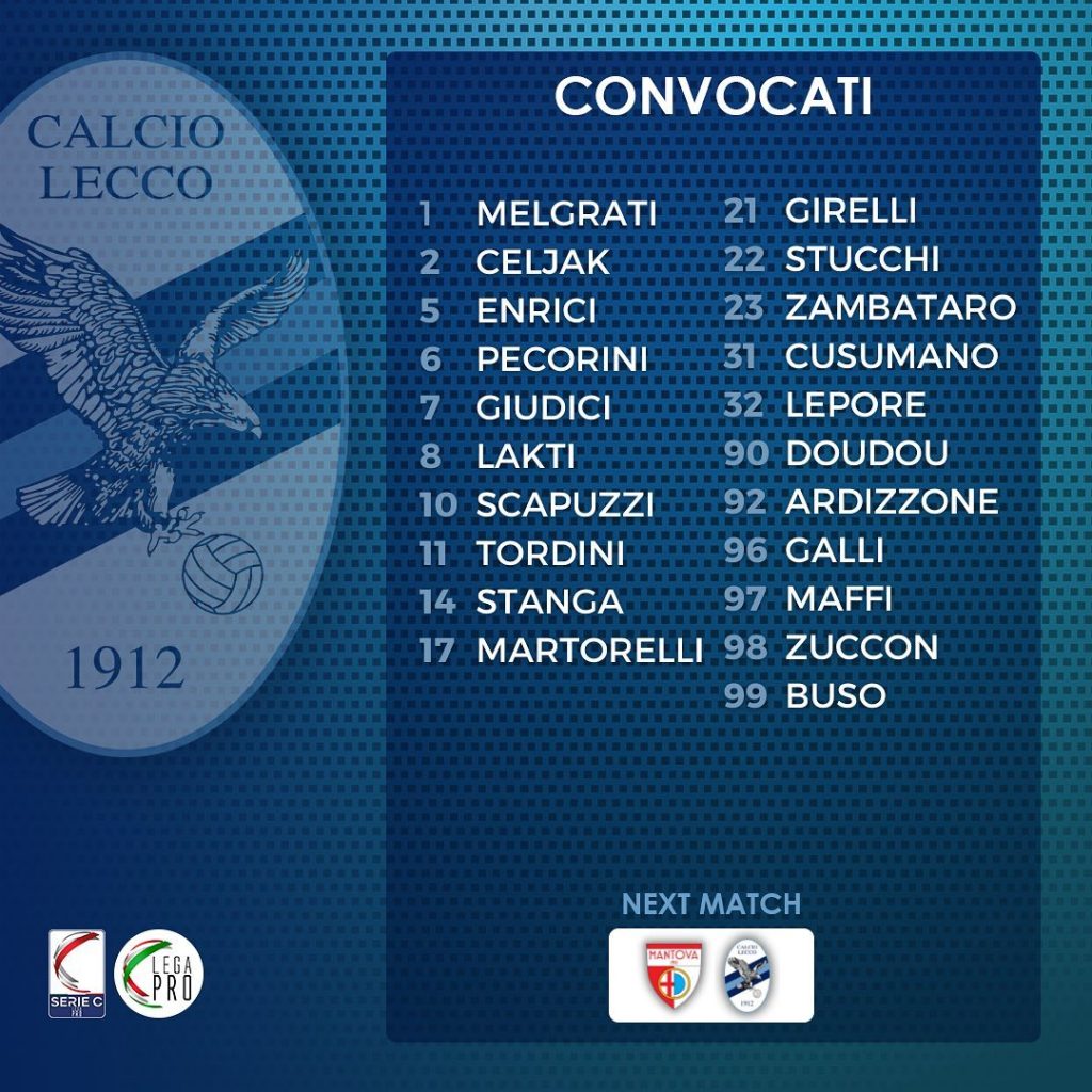 Verso Mantova-Lecco, i convocati di mister Luciano Foschi