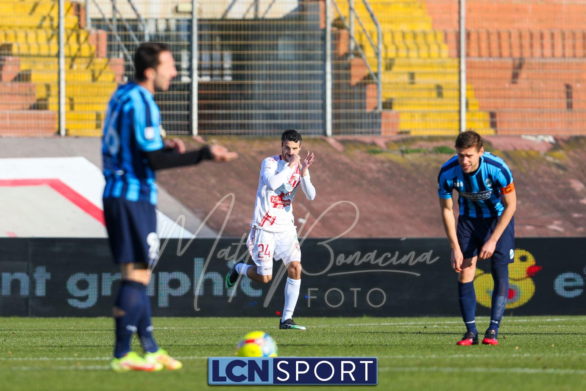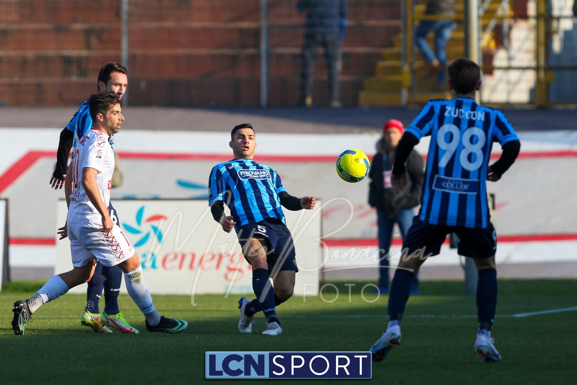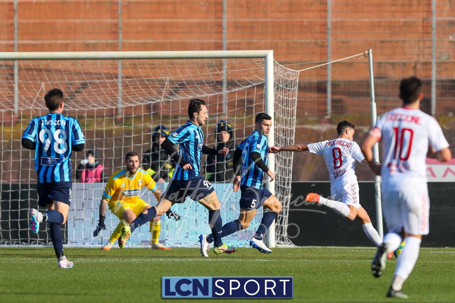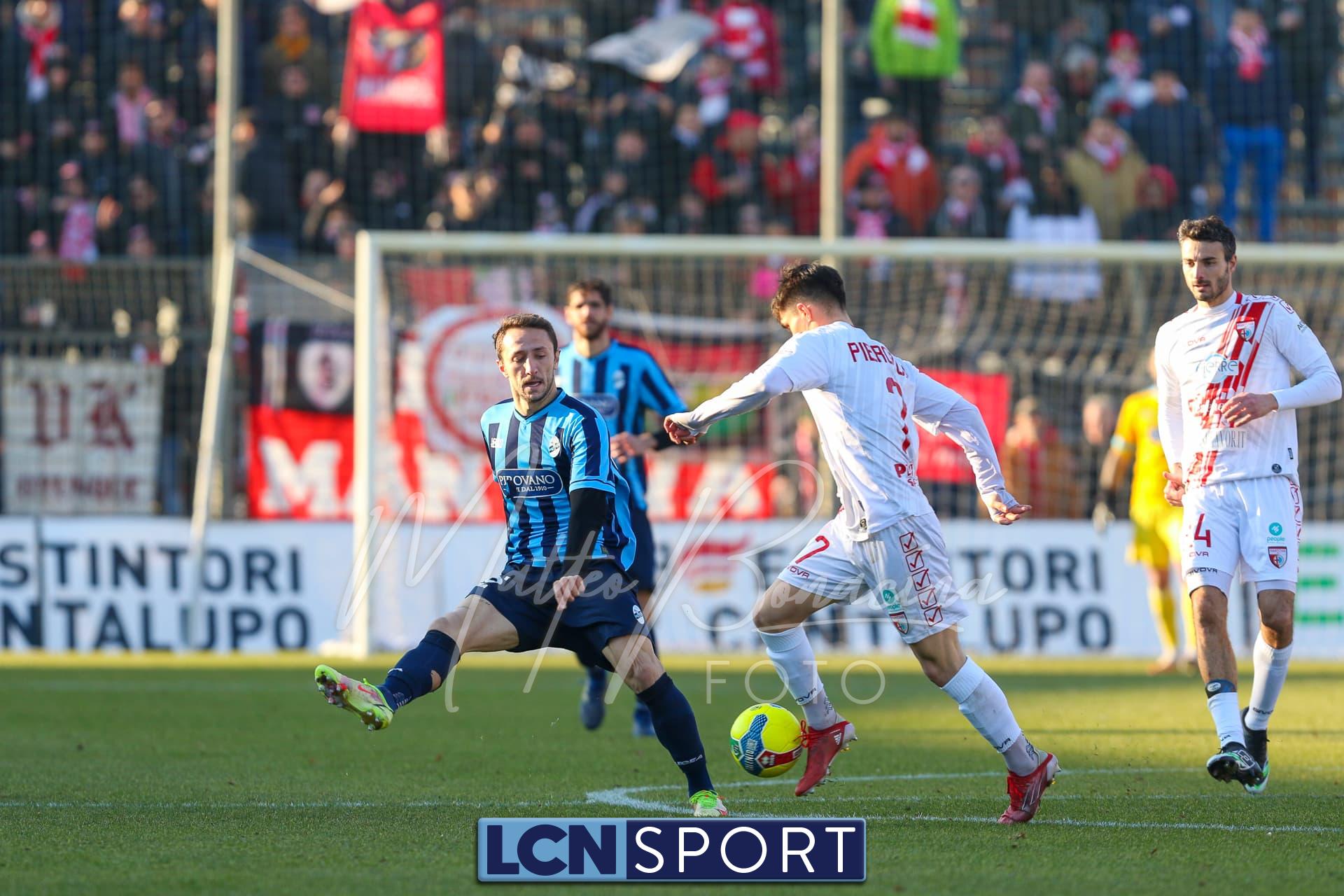Il Lecco fatica a uscire e commette molti errori: palla regalata a Procaccio che dal limite cerca il tiro a giro e non trova la porta. Girelli prova a scuotere i suoi, gran destro da una decina di metri di distanza da Chiorra, alto sopra la traversa.