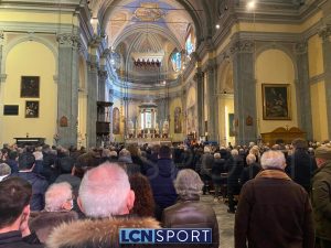 La chiesa parrocchiale di Ponte Lambro ha ospitato, nel pomeriggio di lunedì 30 gennaio, i funerali di Carlo Tavecchio. L’ex presidente della Federazione Italiana Giuoco Calcio – dal 2014 al 2017 – e attuale presidente del Comitato Regionale Lombardia è stato salutato da tutto il mondo del calcio: presenti tra gli altri Gabriele Gravina, presidente federale, Renzo Ulivieri, presidente dell’assoallenatori, Giancarlo Abete, presidente della Lega Nazionale Dilettanti, Giuseppe Marotta, amministratore delegato dell’Inter, Urbano Cairo, presidente del Torino, Adriano Galliani, amministratore delegato del Monza, Lele Orali, team manager della nazionale italiana, e Giovanni Carnevali, amministratore delegato e direttore generale del Sassuolo. Da Lecco sono arrivati l’olimpionico Antonio Rossi, assessore regionale ai grandi eventi sportivi, Antonio Rusconi, sindaco di Valmadrera e tra i fondatori della Polisportiva, Angelo Battazza, presidente onorario della Calcio Lecco 1912, e Roberto Nigriello, presidente del Consiglio comunale di Lecco ed ex assessore allo sport. Presenti anche Evaristo Beccalossi, ex presidente del Lecco, Daniele Bizzozero, ex patron bluceleste e amico di Tavecchio, e Giacomo Ricci, vice delegato della FIGC Brescia.