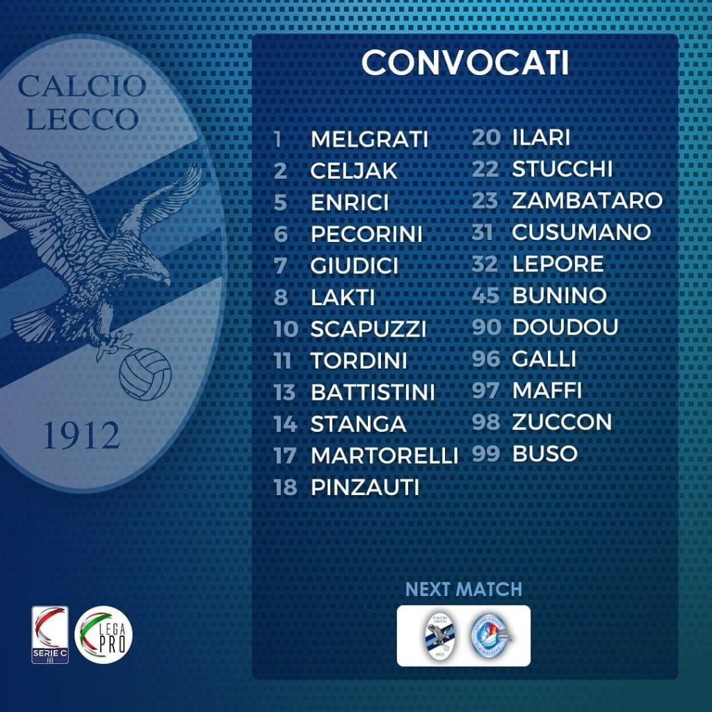 Verso Lecco-Albinoleffe, i convocati di mister Luciano Foschi