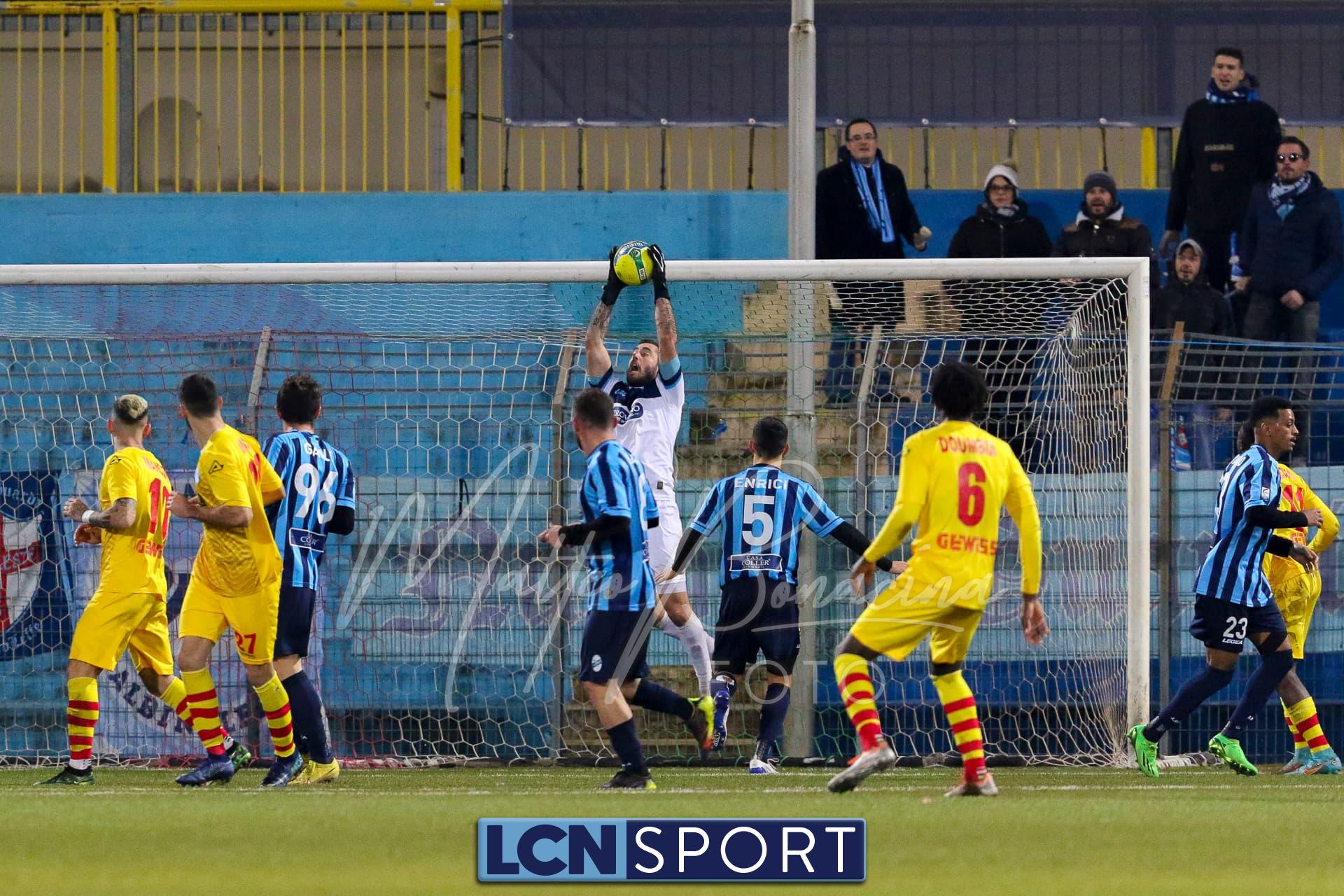 Giro palla del Lecco, cross di Giudici da destra e Pinzauti si avvita senza riuscire a dare direzione e forza. Il ritmo è buono, il Lecco fa la partita ma le occasioni latitano. Prima azione dell’Albinoleffe al 15′, Manconi calcia di potenza con l’esterno e non va lontano dall’incrocio dei pali.