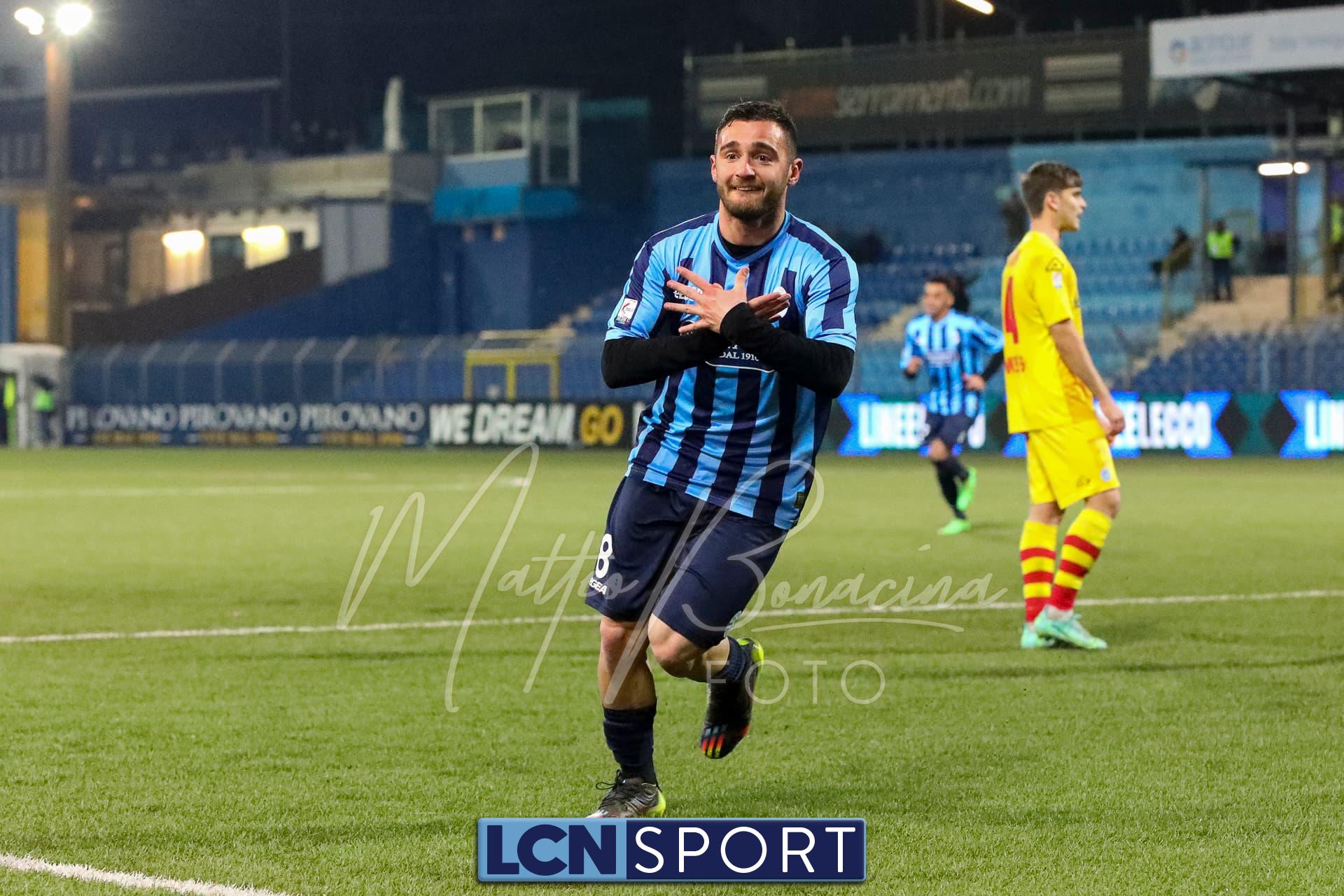 Ci prova Giudici da fuori al 57′ ma il suo tentativo con il mancino è strozzato. Il vantaggio del Lecco al 58′: punizione di Giudici da destra che si abbassa e Lakti, col destro al volo, indovina un pallonetto splendido e beffardo: 1-0.