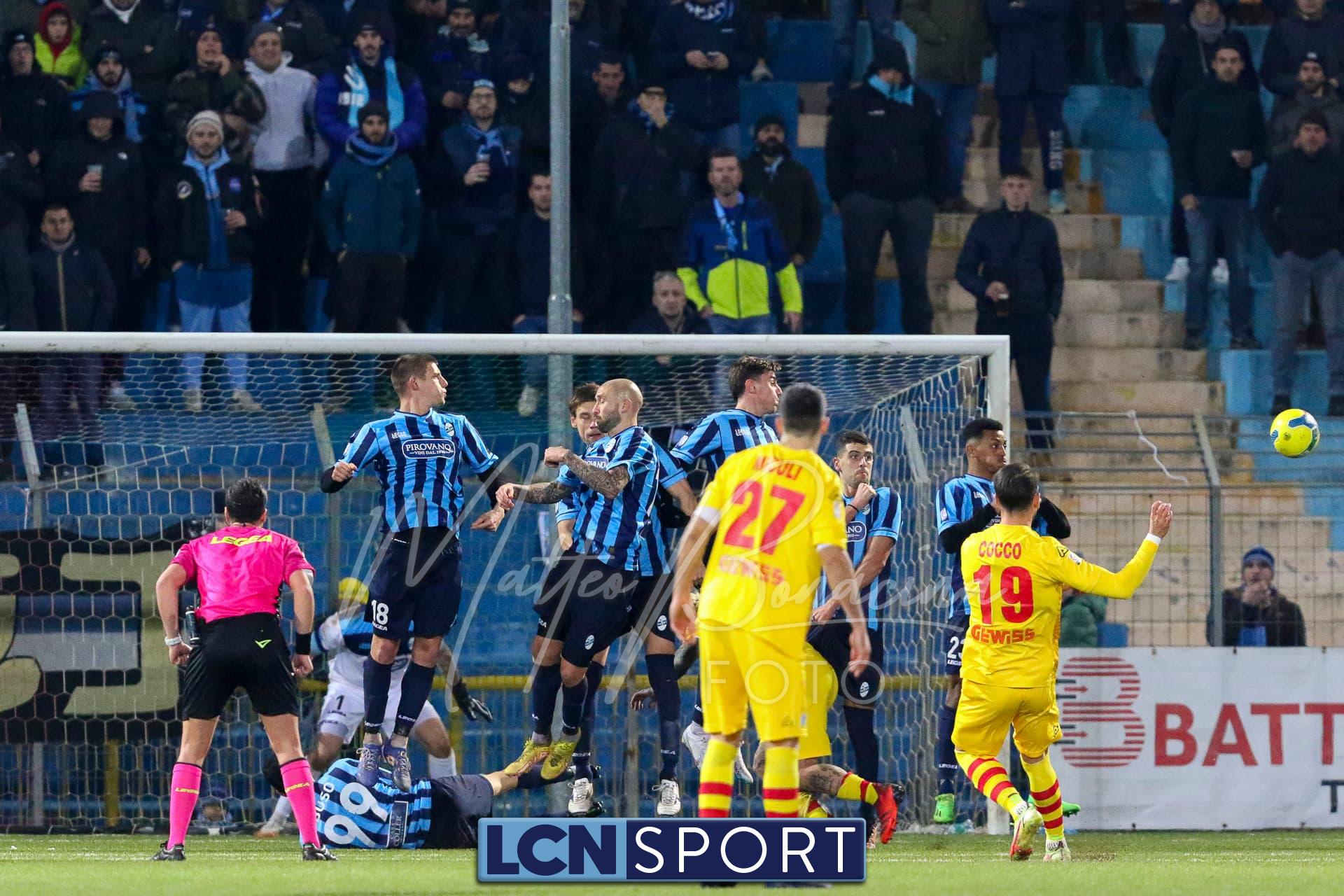 Al 65′ episodio decisivo: Manconi commette ripetutamente fallo ma ottiene punizione al limite dell’area; Cocco, entrato dalla panchina, realizza con un destro imparabile sotto l’incrocio. Al 71′ clamoroso coast to coast di Zuma, l’Albinoleffe va in gol ma per fortuna viene ravvisato il fallo di Cocco su Lakti. Dentro anche Bunino (buon esordio) e Tordini, Foschi le prova tutte. All’85’ Giudici ruba il tempo a Zoma e si prende un rigore di grande intelligenza. Dal dischetto va Ilari che riporta i suoi in vantaggio.