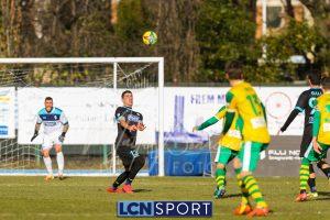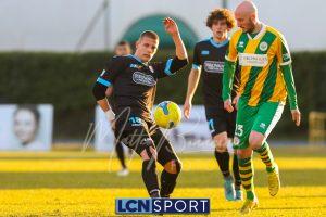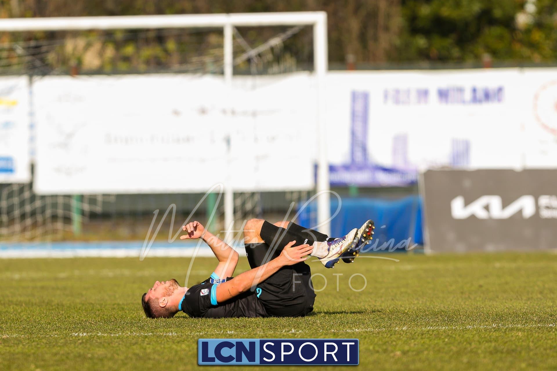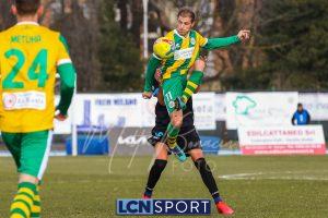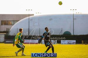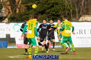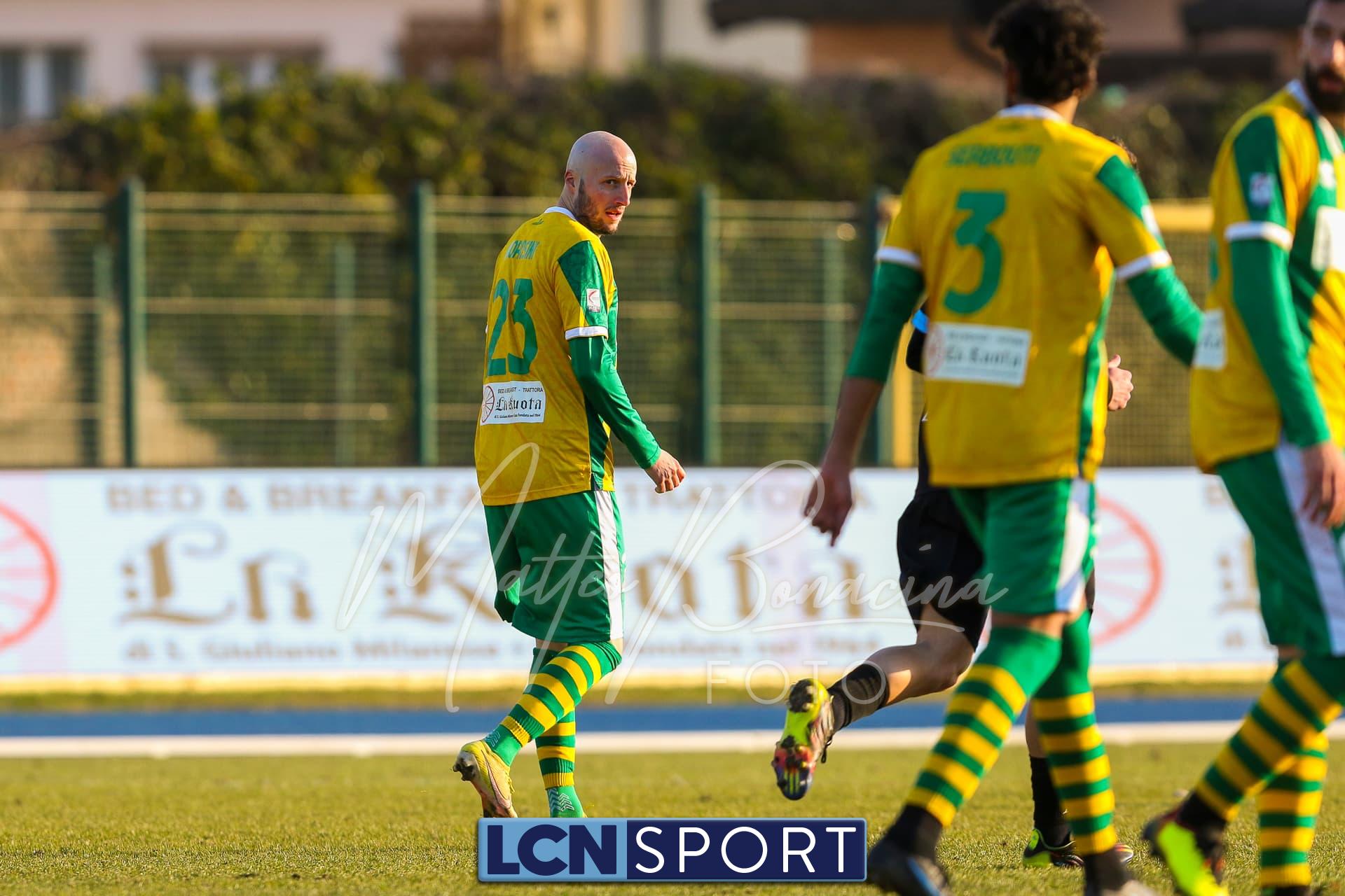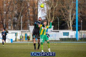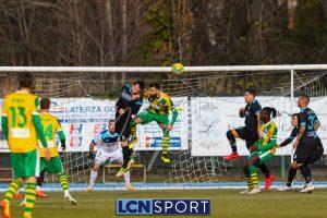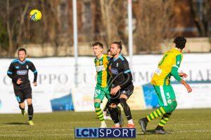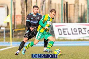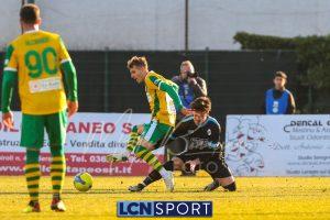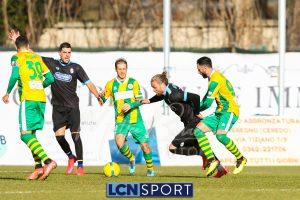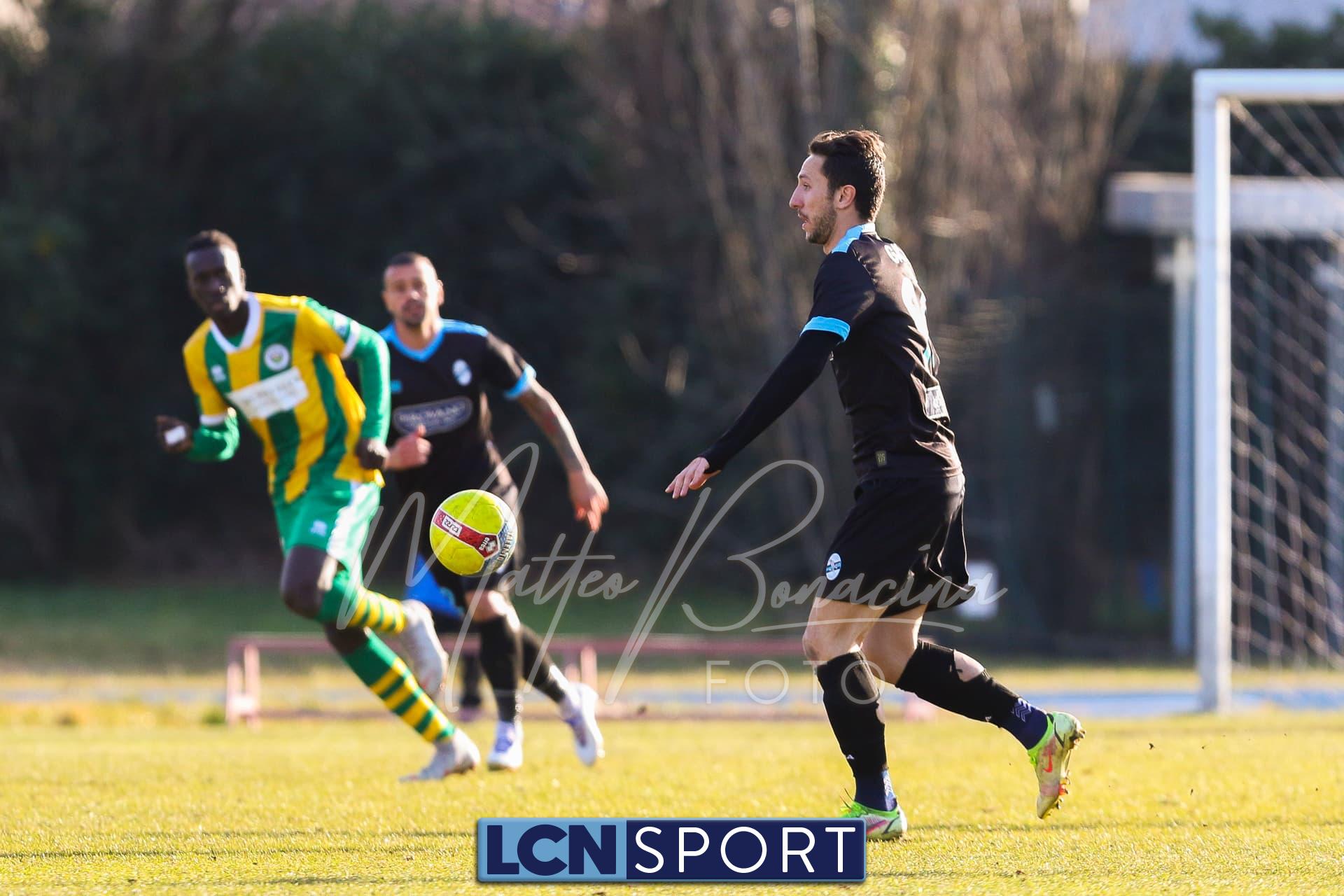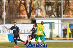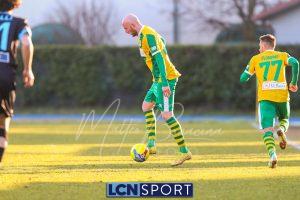 Al 25′ punizione di Volpicelli su cui Melgrati è bravissimo a volare alla sua sinistra a deviare in angolo con l’aiuto del palo. Decisamente meglio il Sangiuliano, che sfrutta l’uno contro uno sistematico tra il velocissimo Fall e Bianconi, troppo lento nel confronto diretto e costretto a prendersi l’ammonizione.