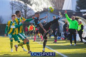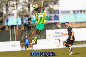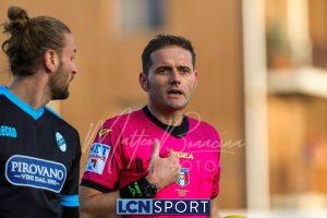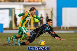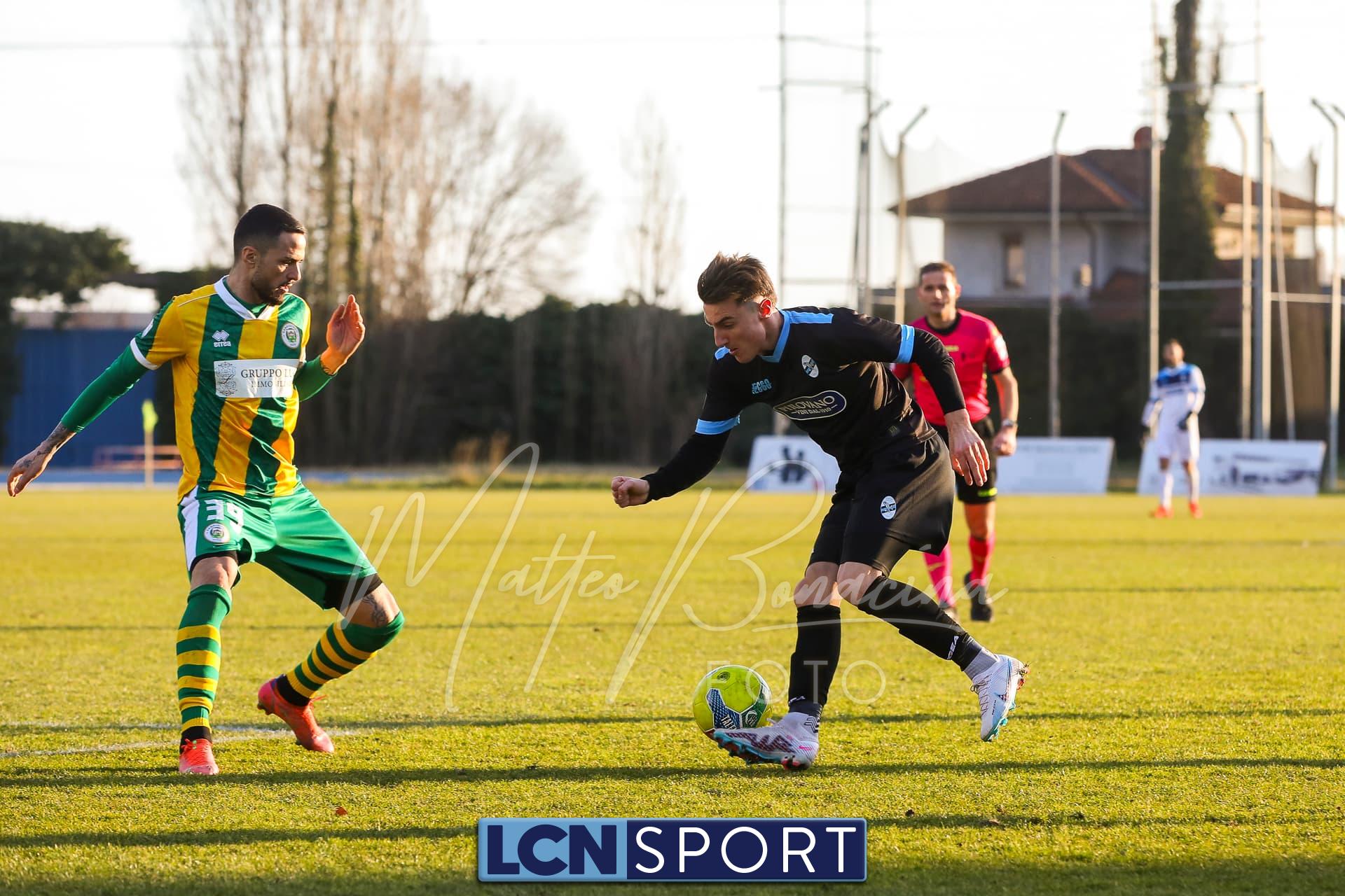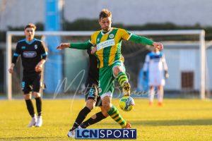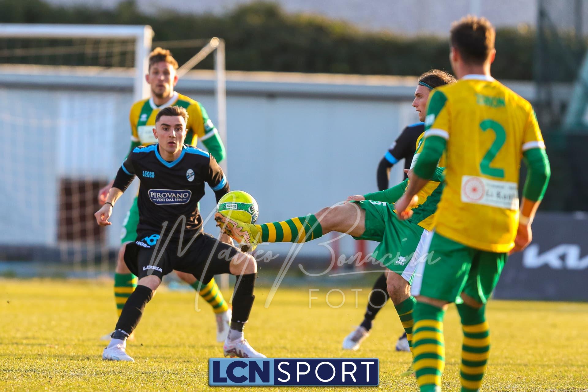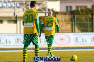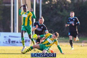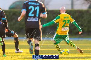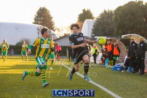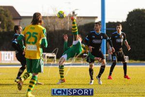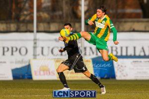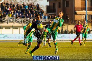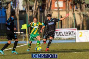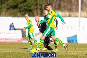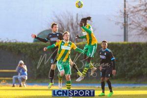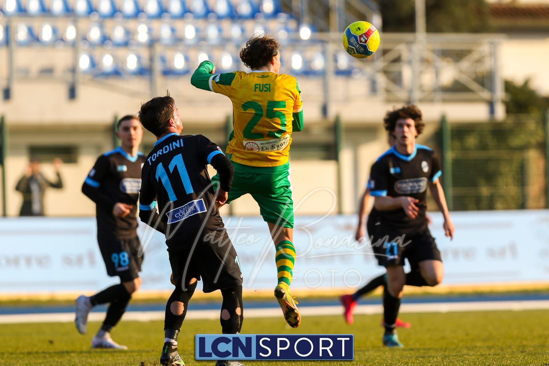 Al 25′ punizione di Volpicelli su cui Melgrati è bravissimo a volare alla sua sinistra a deviare in angolo con l’aiuto del palo. Decisamente meglio il Sangiuliano, che sfrutta l’uno contro uno sistematico tra il velocissimo Fall e Bianconi, troppo lento nel confronto diretto e costretto a prendersi l’ammonizione.