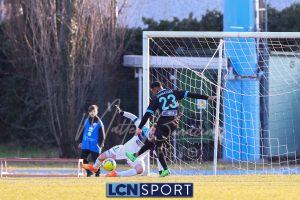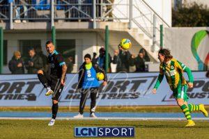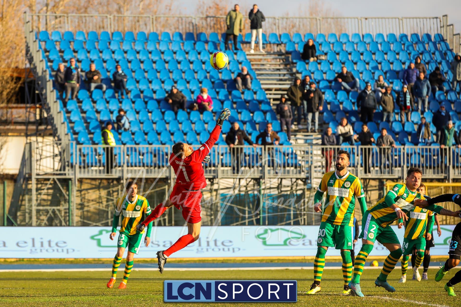 Bella occasione del Lecco (l’unica) al 48′: da punizione di Lepore e rimpallo difensivo arriva un bel sinistro di Giudici su cui la deviazione di un difensore è decisiva per alzare il pallone.