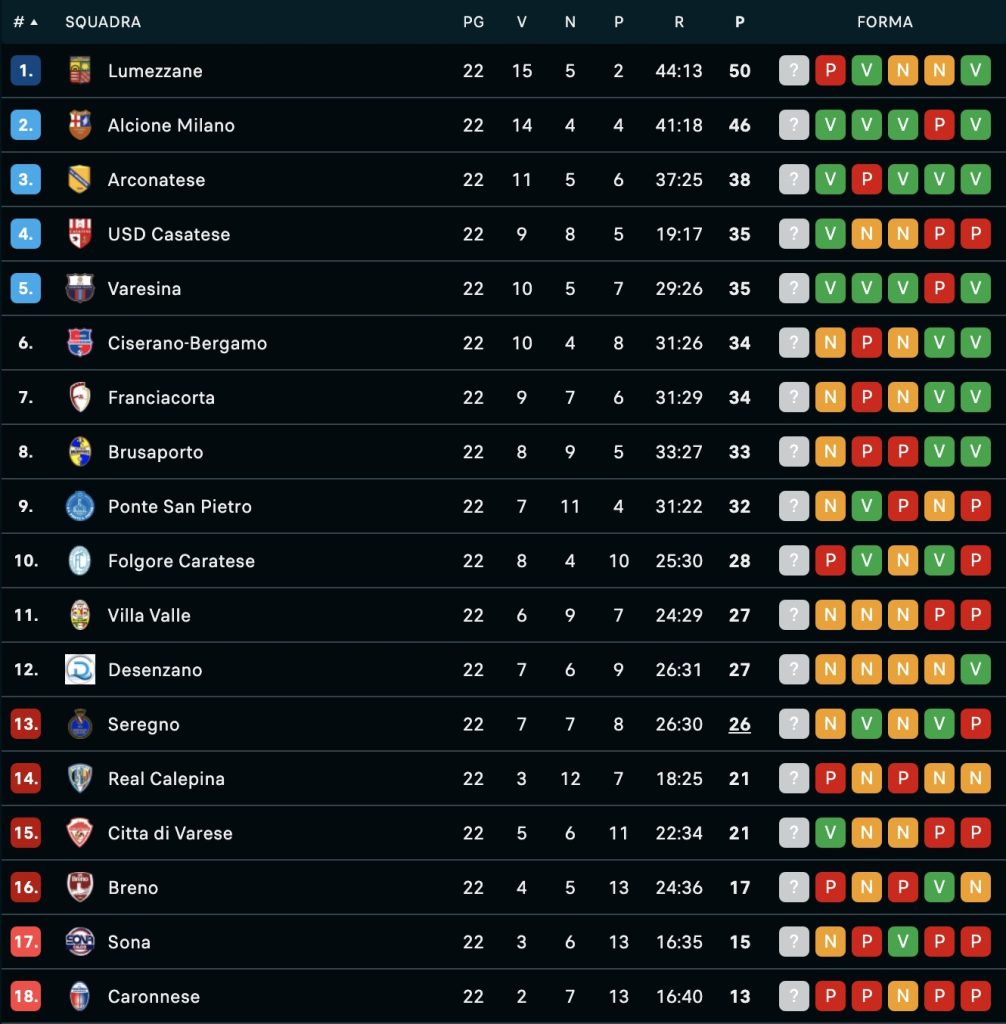 Casatese: Merelli; Scipione, Comberiati (48’ st Ballabio), Romano, Pirola, Videkon, Sassella (44’ st Saracino), Pontiggia (34’ st Costanzo), Personè (14’ st Quaggio), Isella, Stefanoni. A disp.: Picarelli, Biscotti, De Meo, Parravicini, Serra. All. Giuseppe Commisso.