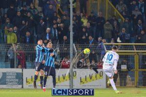 Il Lecco continua a creare occasioni: da punizione di Giudici spizzata di Ilari e palla che fa la barba al palo. Al 19′ Buso va via in velocità, entra in area, dribbla tutti ma sceglie un tocco in più e quando calcia con il destro trova il recupero miracoloso di Bonaccorsi.