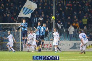 Prima occasione del Novara al 21′ con una palla dentro per Galuppini che di testa non crea grandi pericoli, Melgrati di pugno allontana. Conclusione di Vuthaj con il mancino alla mezzora, molto lontana dal palo. Al 32′ Zuccon dal limite dell’area, tutto solo, scarica un destro violento ma altissimo.