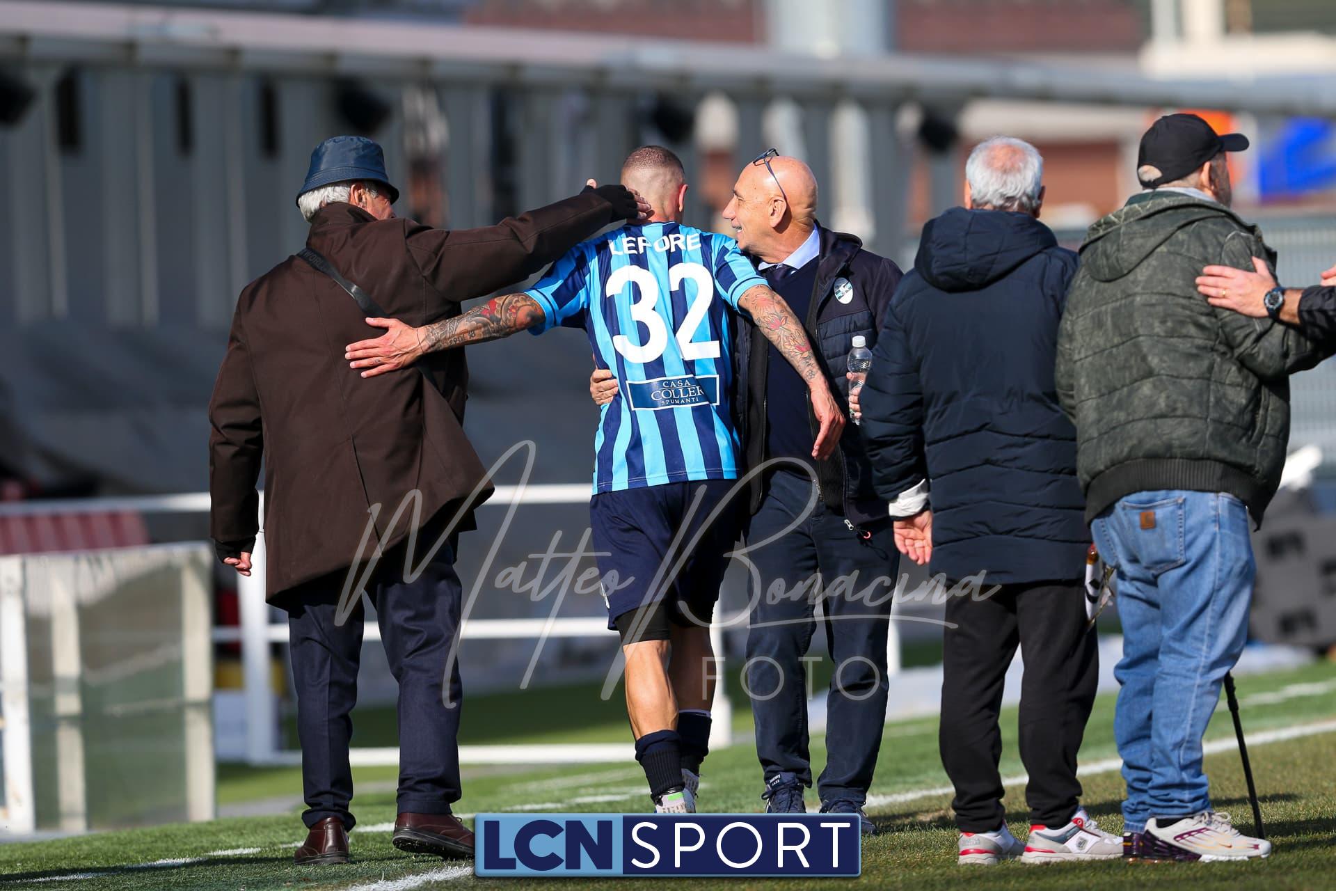 Sussulto Lecco al 39′ con un tentativo di Pinzauti che dal limite calcia una palla un po’ sporca che chiede grande attenzione a Raina. Il vantaggio del Lecco al 43′: grande cambio di gioco di Zuccon da destra a sinistra per Lepore, servito nel cuore dell’area; terrificante botta di sinistro su cui Pinzauti trova una deviazione di… gluteo che batte Raina. Si va in spogliatoio sull’1-0 Lecco.