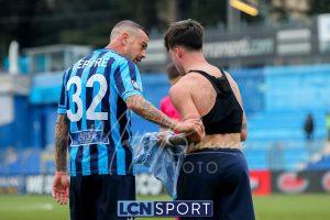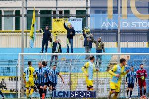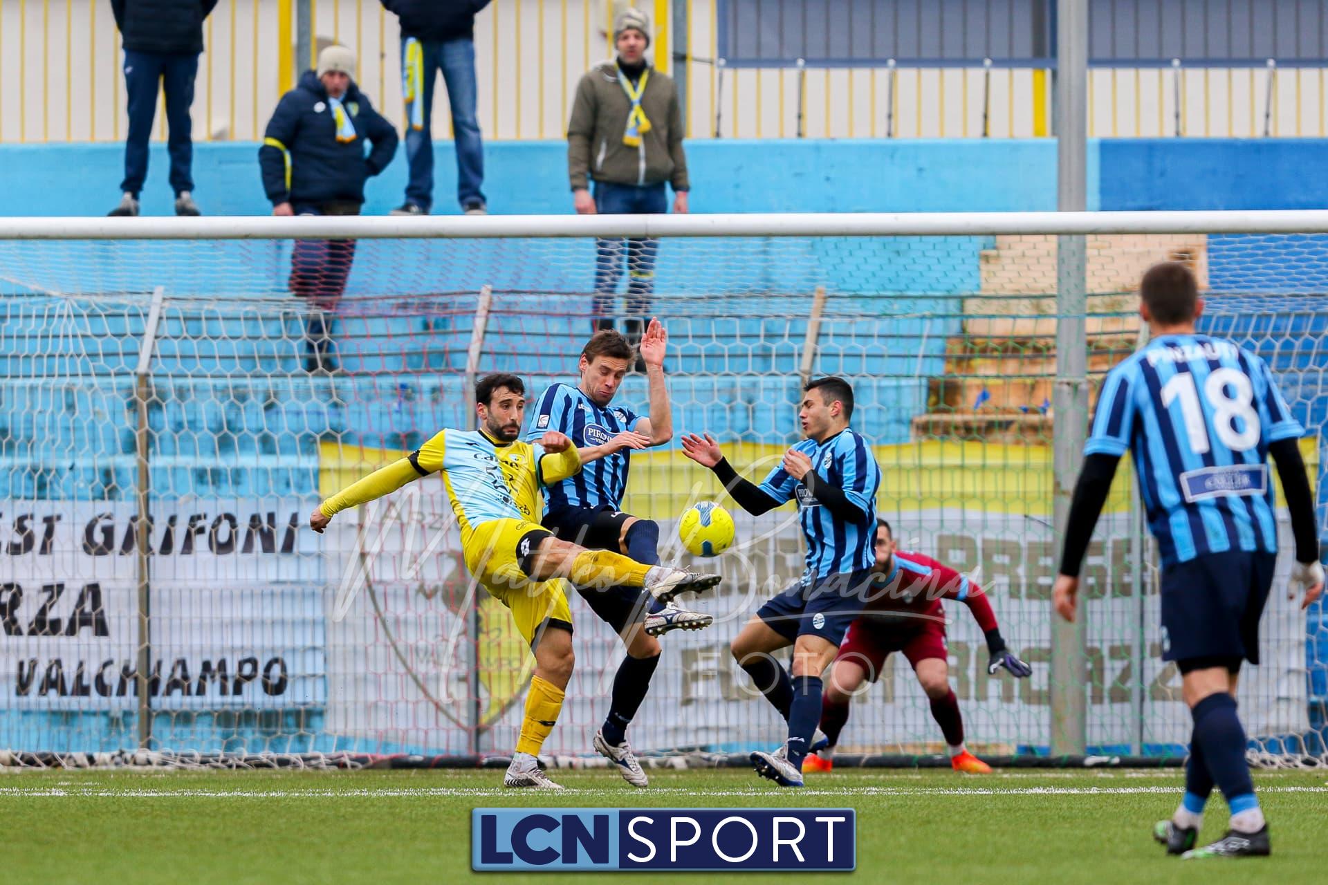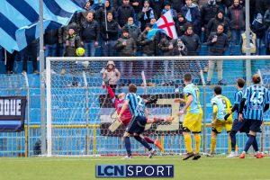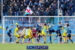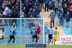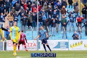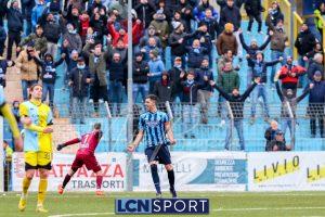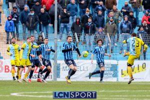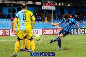 Il vantaggio del Lecco al 27′: grande azione tambureggiante, Bunino porta a spasso la difesa e riapre sulla destra, cross lungo e Zambataro va a calciare con forza beffando Saio complice anche una deviazione. Alla mezz’ora il pareggio quasi immediato: la difesa bluceleste non libera bene, forse c’è un fallo non segnalato, Bordo la ributta dentro, Casini corregge di testa e Cester libera un gran destro di collo che si infila all’angolino. Il Lecco rischia subito, Enrici non copre bene il fondo, Parigi la rimette dentro e e Grandolfo sta per segnare: Melgrati si butta a terra e copre lo specchio della porta.