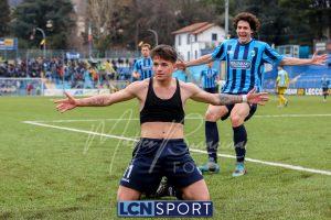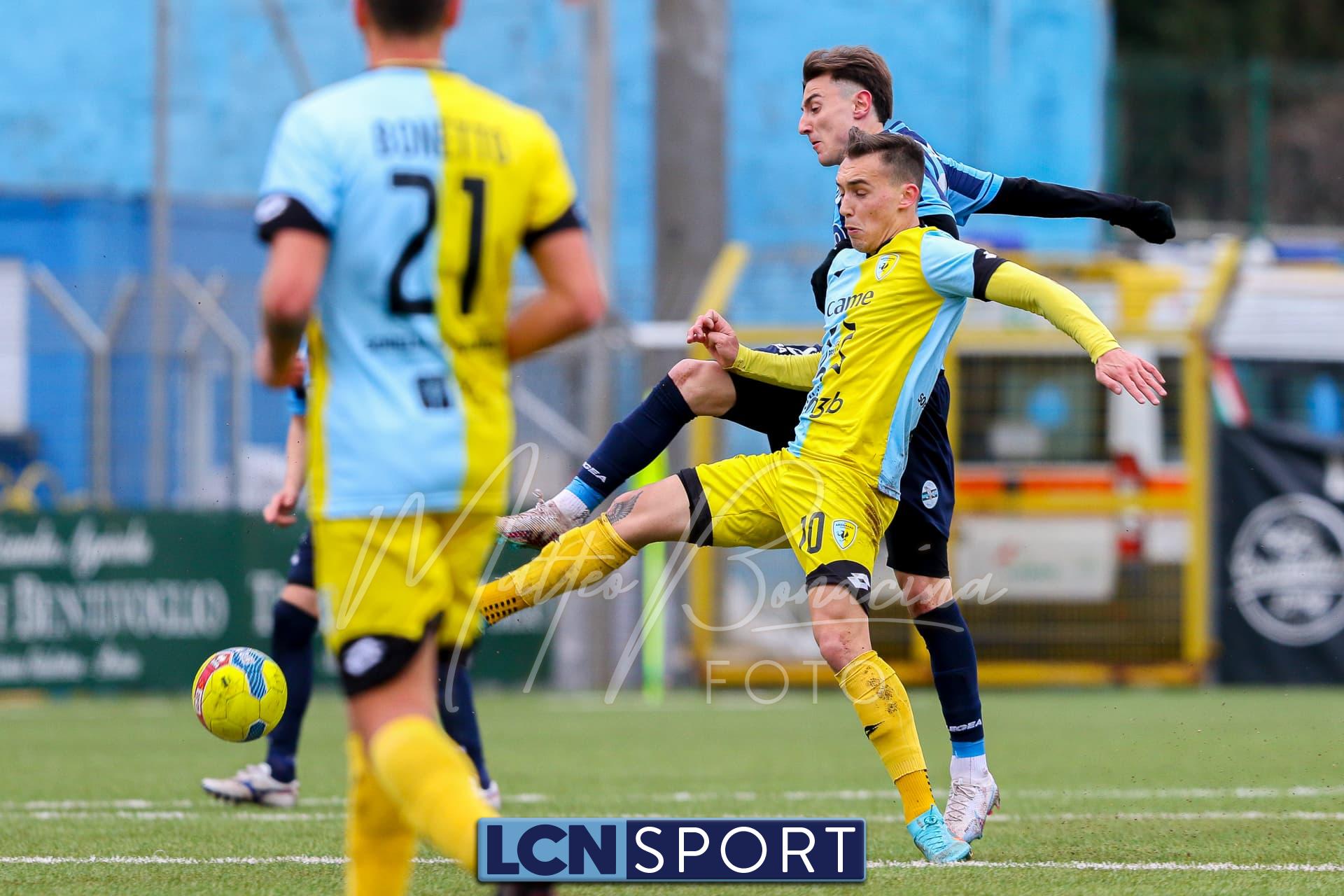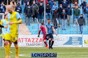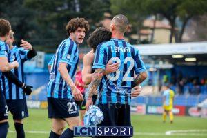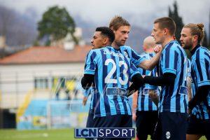 Al 65′ bella azione di Zambataro a sinistra, palla per Zuccon che scende sul fondo e mette un cioccolatino per Tordini: il folletto bluceleste fa una finta e calcia a botta sicura, Saio può solo tentare si deviare col piede ma non evita il gol.