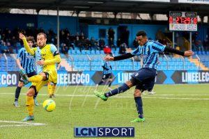 Pronti, via: conclusione centrale di Lepore centrale e intervento semplice per Saio. Al 46′ entrata scellerata di Ilari che va a gamba alta ad altezza collo di Casini e lo colpisce: rosso diretto. Il Lecco regge l’urto e gioca meglio che undici contro undici, dentro Tordini per Pinzauti. Evidente la volontà di non mollare niente e non lasciare nulla di intentato per conquistare il bottino pieno. Al 62′ gran botta di Barba da fuori, deviazione e palo sfiorato.