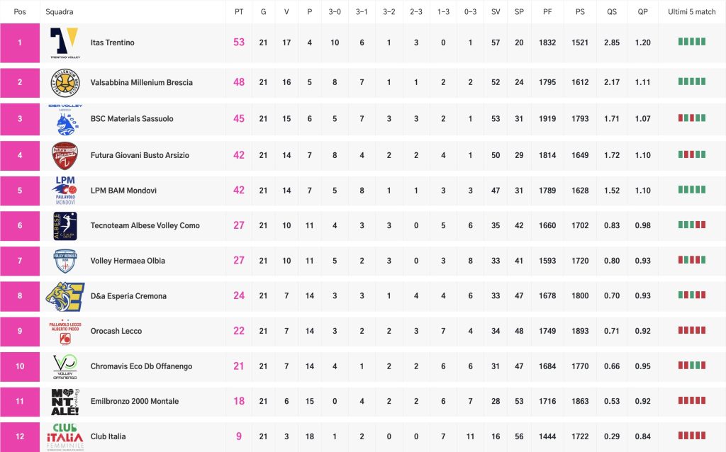 «Ultima giornata di questa prima fase del campionato contro la formazione di Olbia, dopo un periodo caratterizzato da molte partite e pochi punti. Siamo consapevoli di poter dare ancora tanto e abbiamo una grande voglia di riscatto, come si è visto nell’ultima partita contro Trento portando a casa un punto importante – analizza la palleggiatrice Rebecca Rimoldi -. Per quanto riguarda la partita di domenica, è sicuramente una squadra impegnativa e ben attrezzata che lotterà come noi per fare bottino pieno e proseguire al meglio nella seconda parte del campionato. Ci aspetterà una partita impegnativa sia a livello fisico che mentale e sarà importante approcciarla con il giusto spirito, la giusta attenzione e la voglia di far bene, sfruttando il vantaggio del fattore campo grazie al supporto di tutti i tifosi, amici e parenti che saranno presenti al Bione. Sono molto contenta della reazione che stiamo avendo e di tutta la volontà che ci stiamo mettendo giorno dopo giorno».