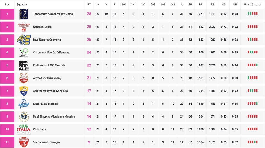 Era fondamentale partire bene, partire così. La Orocash Picco Lecco stende la Desi Shipping Akademia Messina al Bione e si porta a +4 sulla sesta posizione occupata da Anthea Vicenza Volley, prossima avversaria delle lecchesi battuta nettamente (3-0) e a sorpresa dal Club Italia. Successo meritato quelle biancorosse, che giocano soprattutto al centro – Tresoldi e Piacentini chiudono con 12 punti a testa -, approcciano con gran forza e sfruttano praticamente ogni errore delle siciliane nel primo set, facendo capire che tira un’aria diversa rispetto all’ultimo e difficile mese legato alla stagione regolare (25-14). Messina riparte con un piglio diverso e se la gioca punto a punto, la Picco Lecco firma l’allungo a metà parziale (16-12) e apparecchia la tavola per una chiusura scontata del secondo set (21-15); segue un discreto black out che porta il secondo set addirittura ai vantaggi (26-24). Tutt’altra storia nel terzo set: le siciliane vanno (13-16) e rimangono in fuga a lungo (15-21), ma quando è il bello e il buono si spengono di botto, permettendo il rientro della Orocash grazie a un parziale shock: 10-0 per il 25-21 e la vittoria finale.