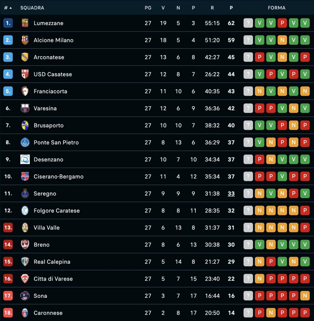 Casatese: Merelli; Scipione, Comberiati, Romano, Pirola, Videkon, Sassella, Pontiggia, Quaggio, Isella, Stefanoni. A disposizione: Picarelli, Perego, Gulinelli, Polinghi, Ballabio, Costanzo, Serra, Saracino, Personè. All. Commisso.