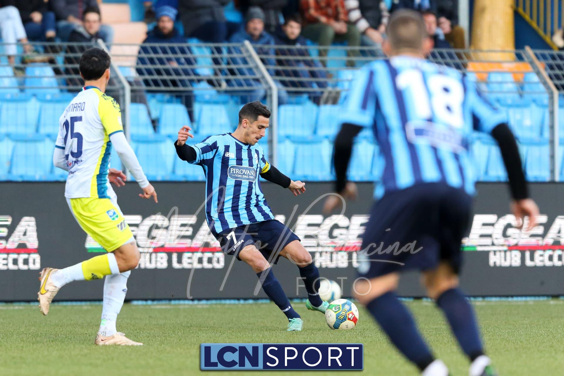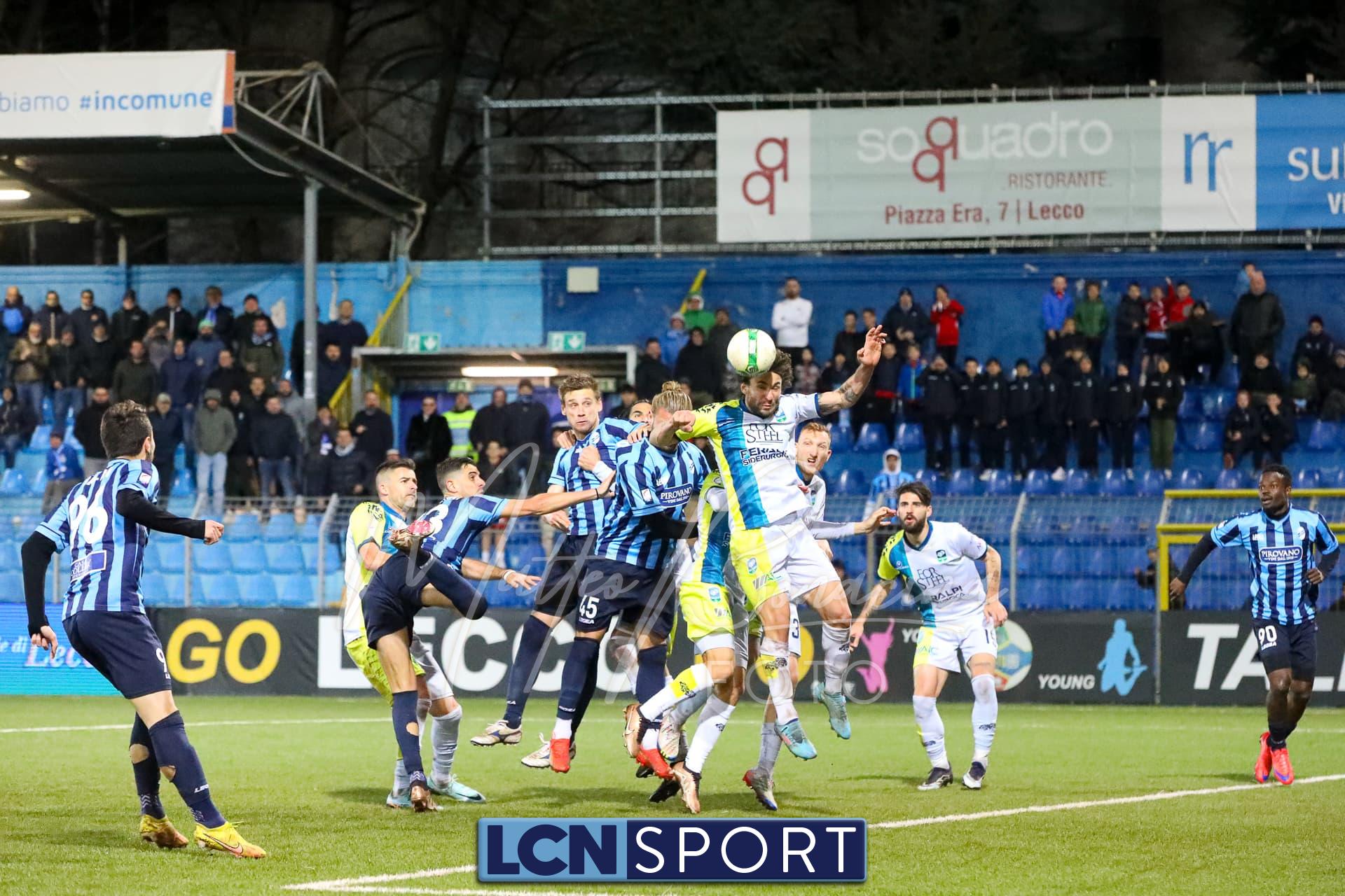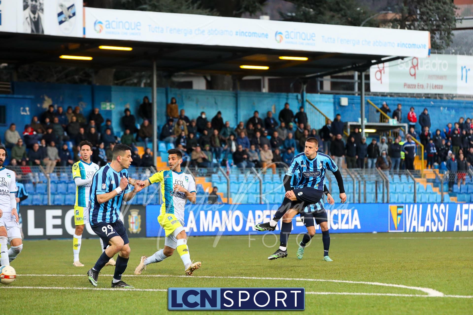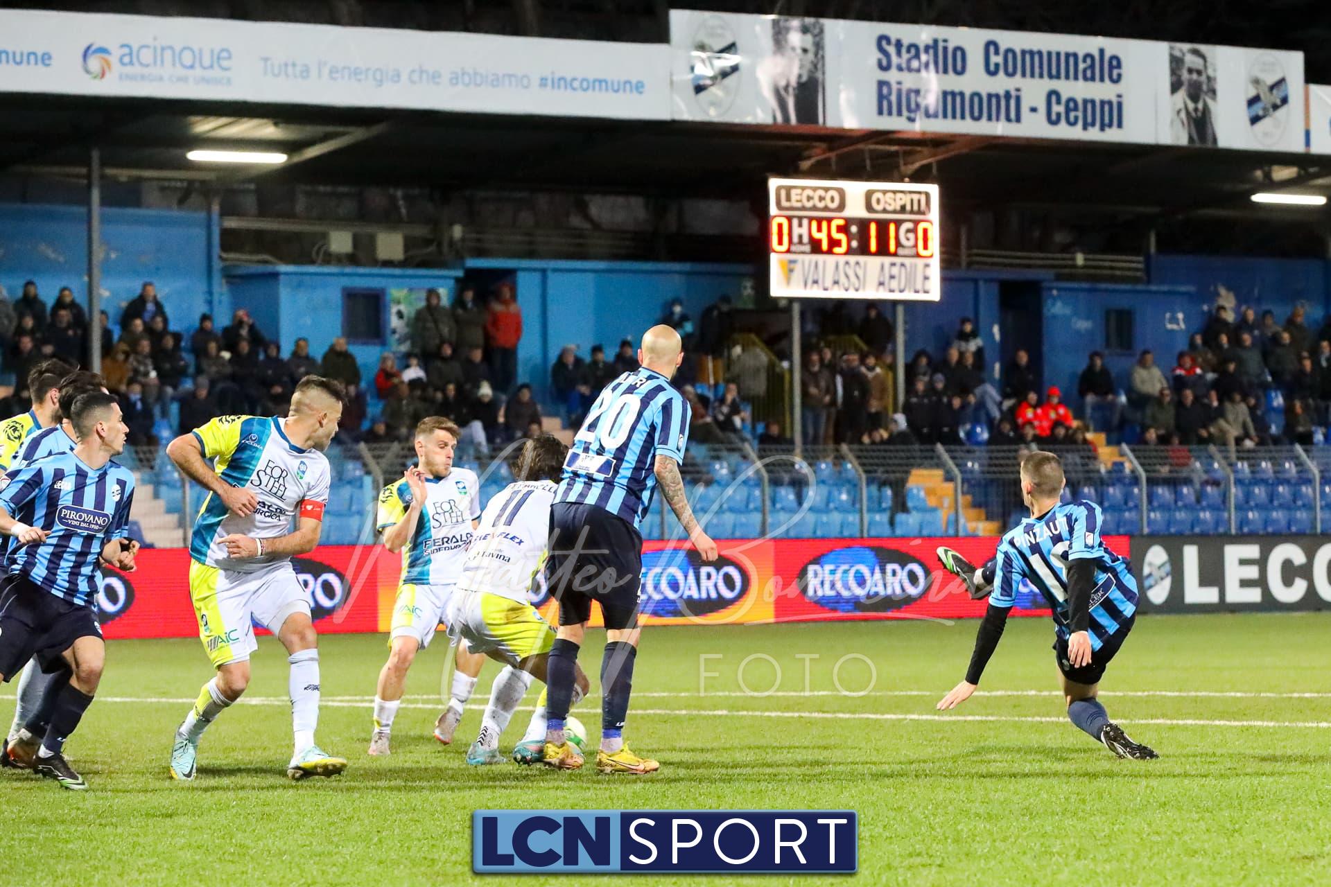 Lecco subito pericoloso al 4′ con una grande chance: bravissimo Celjak a sovrapporsi su Giudici, palla dentro per Ilari che arriva da dietro e calcia a botta sicura, alto di pochissimo. Al 7′ altra clamorosa opportunità: cambio gioco di Giudici su Ilari che a tu per tu col portiere cicca clamorosamente il pallone, favorendo l’intervento di Legati che appoggia a Pizzignacco. La reazione degli ospiti è un minuto più tardi nel tiro altissimo di Panico da sviluppi di corner.
